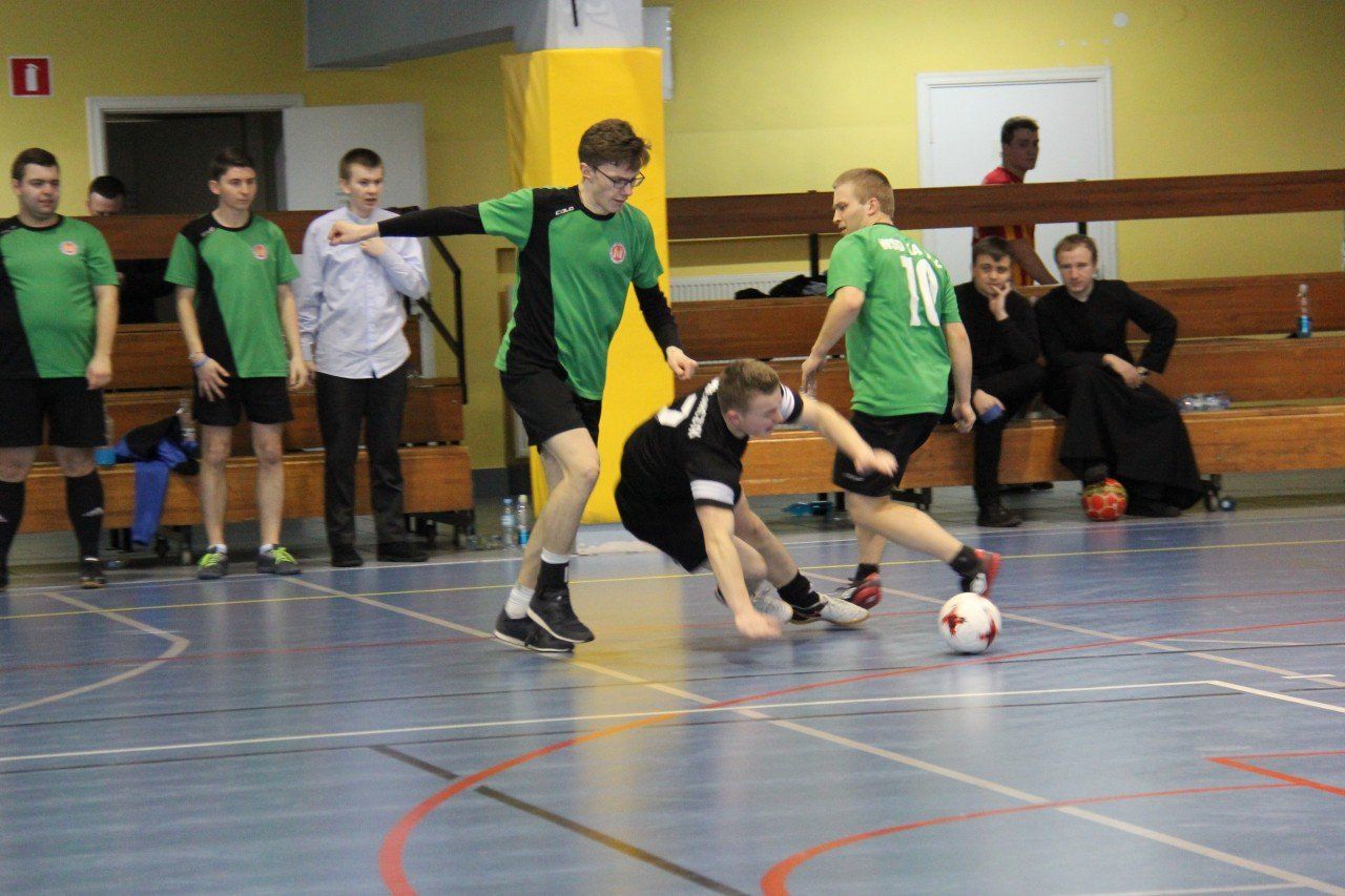 Rozgrywki piłkarskie odbywały się przez całą sobotę. W fazie grupowej na początku nasze seminarium stoczyło pojedynek z reprezentacją Siedlec, który zakończył się remisem 0:0. Następnie naszymi rywalami byli przedstawiciele z seminarium Redemptoris Mater, którzy zostali przez nas pokonani 3:0. Kolejne mecze okazały się również zwycięskie dla naszej drużyny, która zmierzyła się z seminariami z Pelplina (2:0) i z Olsztyna (3:2). Po zakończeniu rozgrywek grupowych okazało się, że wraz z seminarium z Siedlec osiągnęliśmy ten sam stosunek punktowy i bramkowy. O awansie zadecydował konkurs rzutów karnych, w którym zwyciężyliśmy 3:2. W ćwierćfinale nasza drużyna zagrała z klerykami z Poznania, których pokonała 2:1 a tym samym awansowała do półfinału. W walce o pierwsze miejsce nasi klerycy przegrali 5:1 z seminarium z Kielc. Pozostało nam zawalczyć o III miejsce, rozgrywając ostatni mecz w tym turnieju z klerykami z Zamościa. W czasie tego meczu kontuzji uległ nasz bramkarz, który jak się później okazało, skręcił kostkę. Mimo tego, nasza drużyna spisała się na medal i zwyciężyła w tym spotkaniu uzyskując wynik 2:1.