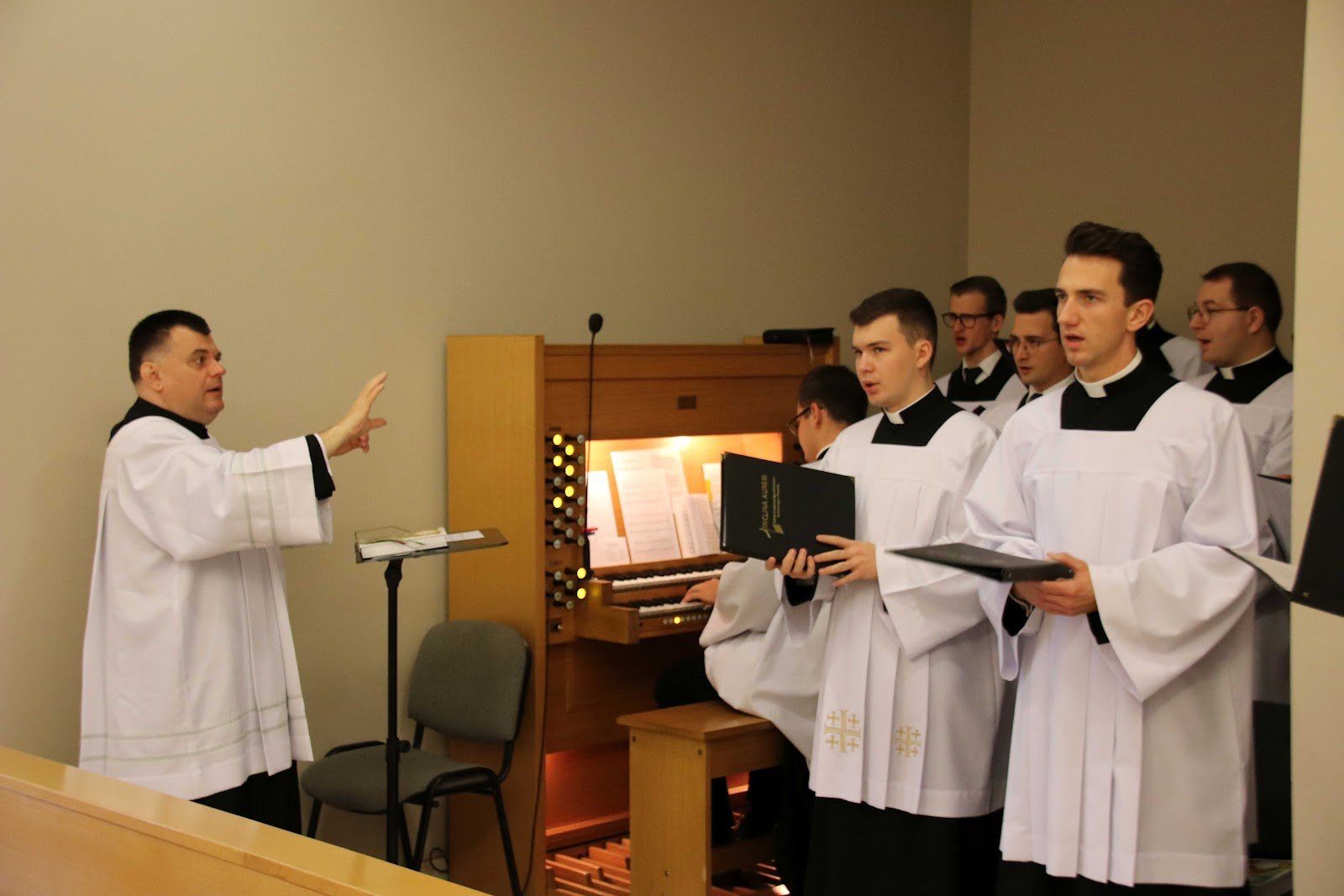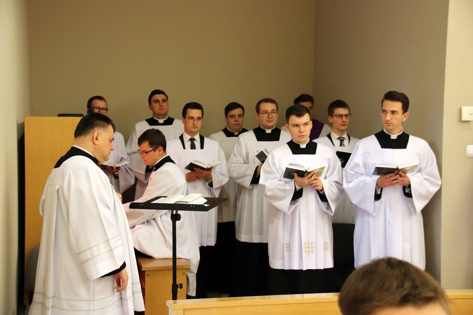 Na porannej jutrzni, której przewodniczył ks. Waldemar Graczyk, modliliśmy się za naszych braci z roku V. Podczas liturgii w krótkim słowie ksiądz wicerektor mówił podkreślał jak ważne jest, aby kandydaci stawali się znakiem Chrystusa w niełatwych czasach.