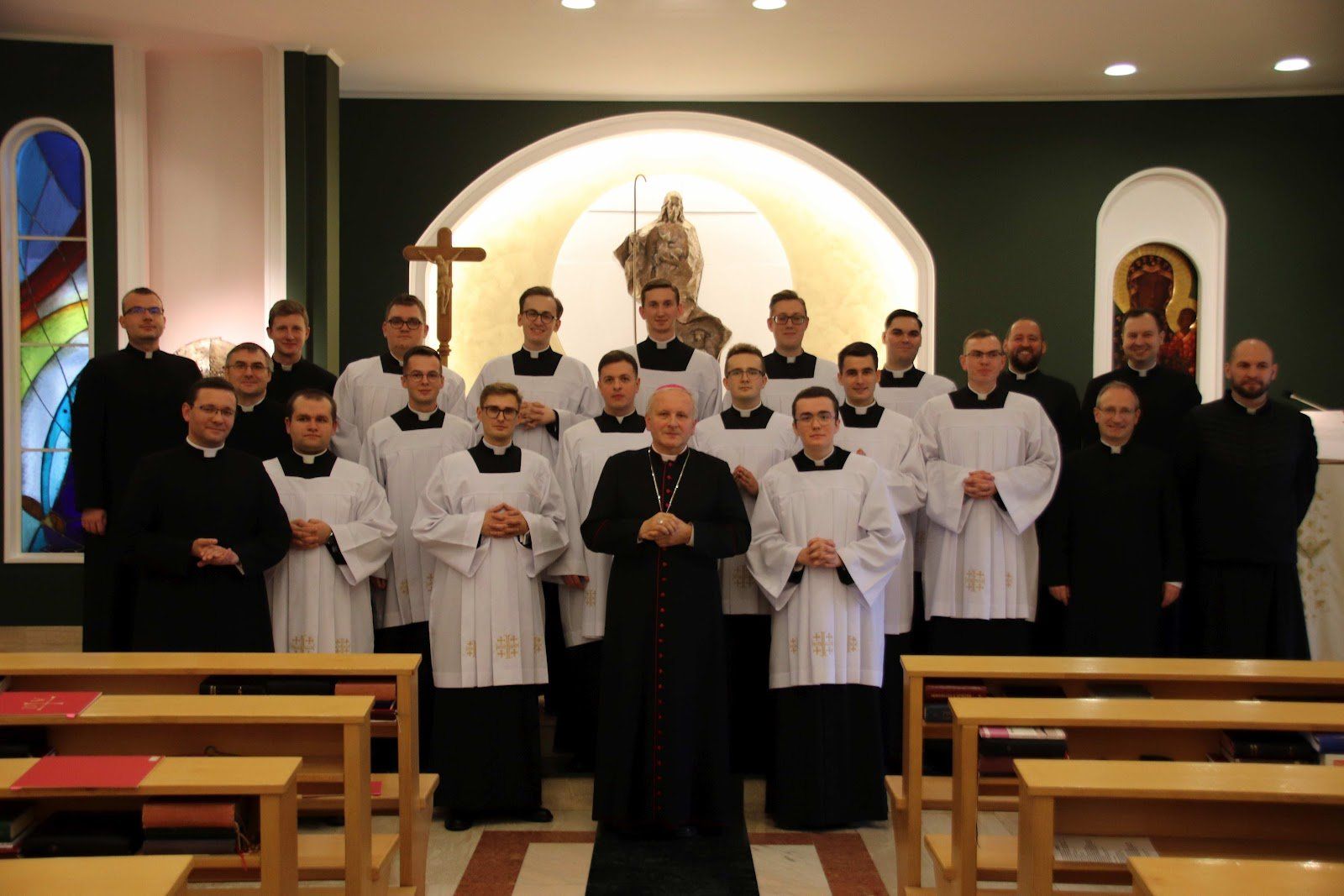 Po czasie rekolekcji w naszej wspólnocie miała miejsce Eucharystia z obrzędem kandydatury. Trzynastu braci za kursu piątego (11 z diecezji kaliskiej, 1 z archidiecezji poznańskiej oraz 1 z diecezji bydgoskiej) wobec biskupa Łukasza Buzuna - biskupa pomocniczego naszej diecezji i pozostałej wspólnoty Kościoła obecnej w naszej seminaryjnej kaplicy złożyli deklarację pragnienia przyjęcia święceń w określonym czasie.