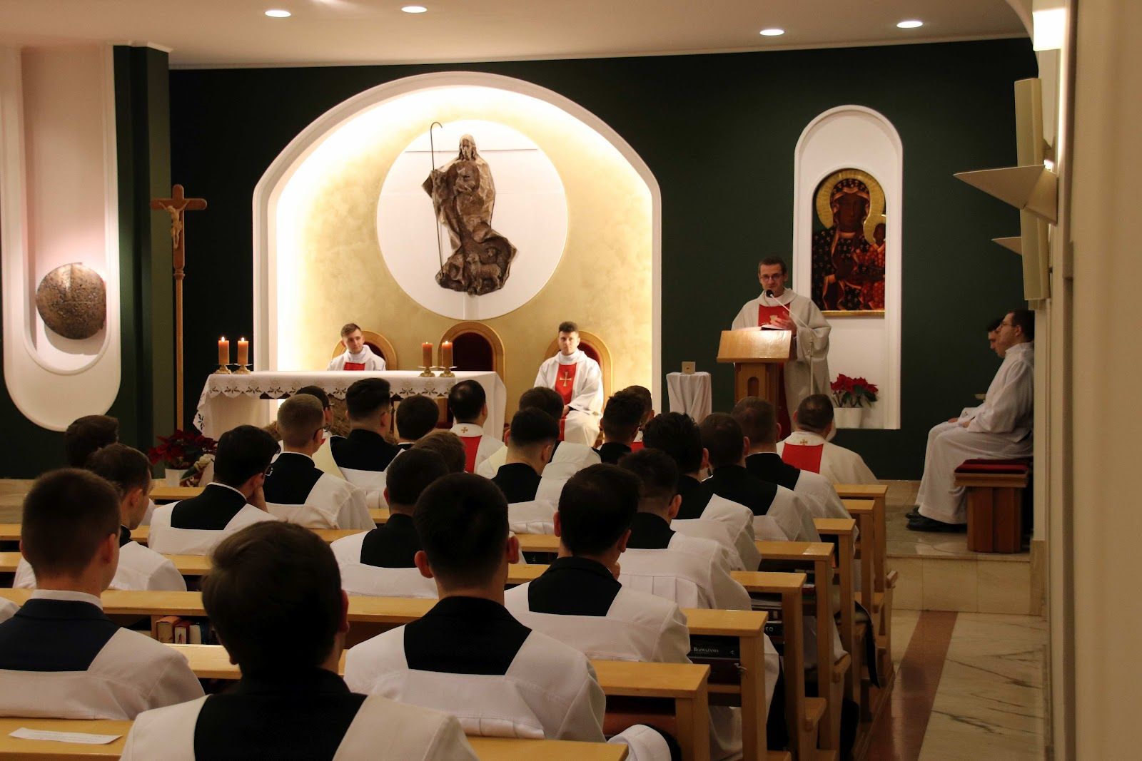 Podczas uroczystej Eucharystii odprawianej z formularza o św. Józefie Sebastianie Pelczarze, ks. wikariusz mówił o wadze doświadczenia spotkania się z wiernymi w trakcie wizyt duszpasterskich. Dzieląc się doświadczeniem zauważył fakt, że spotkania z wiernymi ubogacają także serce kapłana. W trakcie Mszy Świętej obecni byli także koncelebrujący przełożeni seminaryjni.