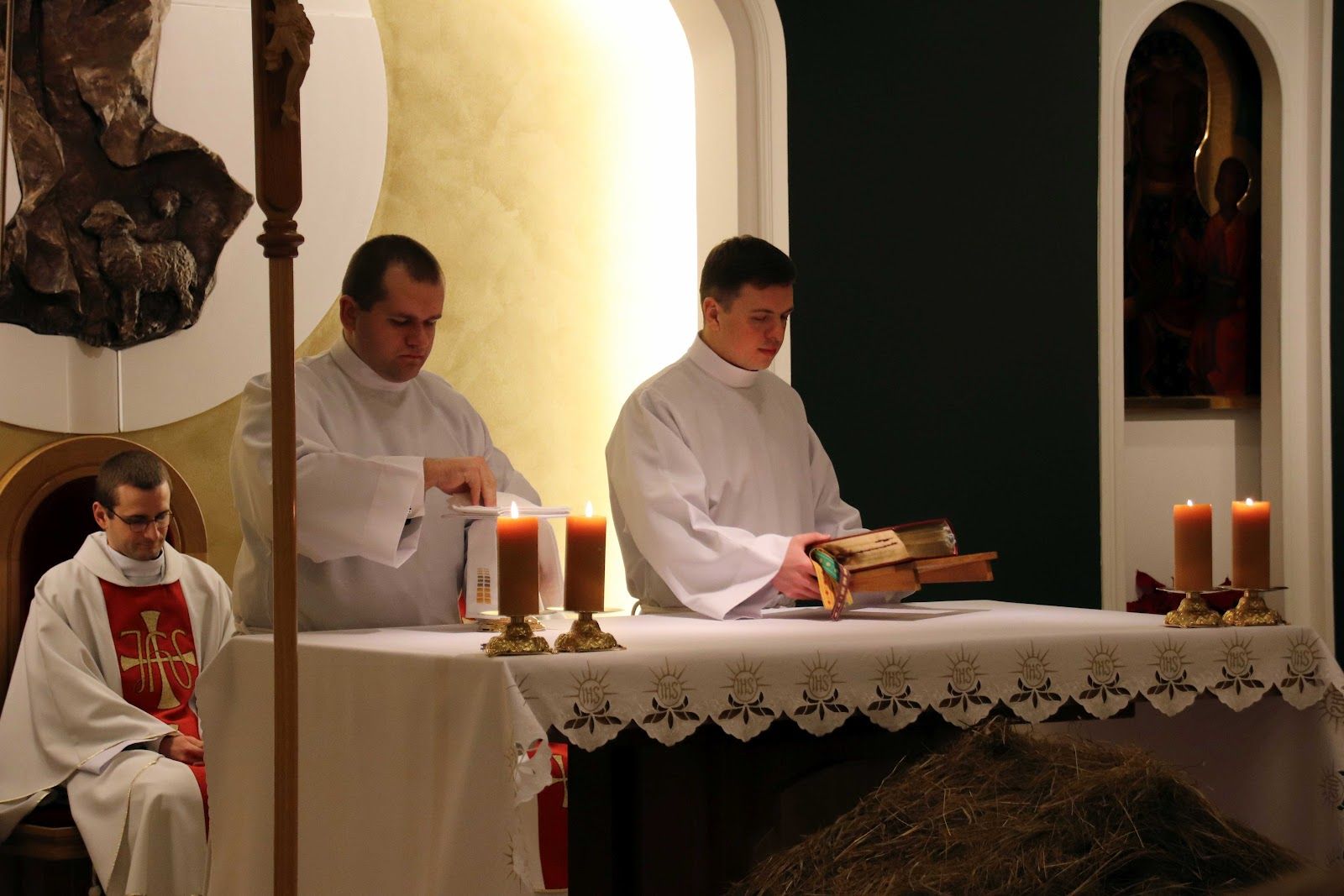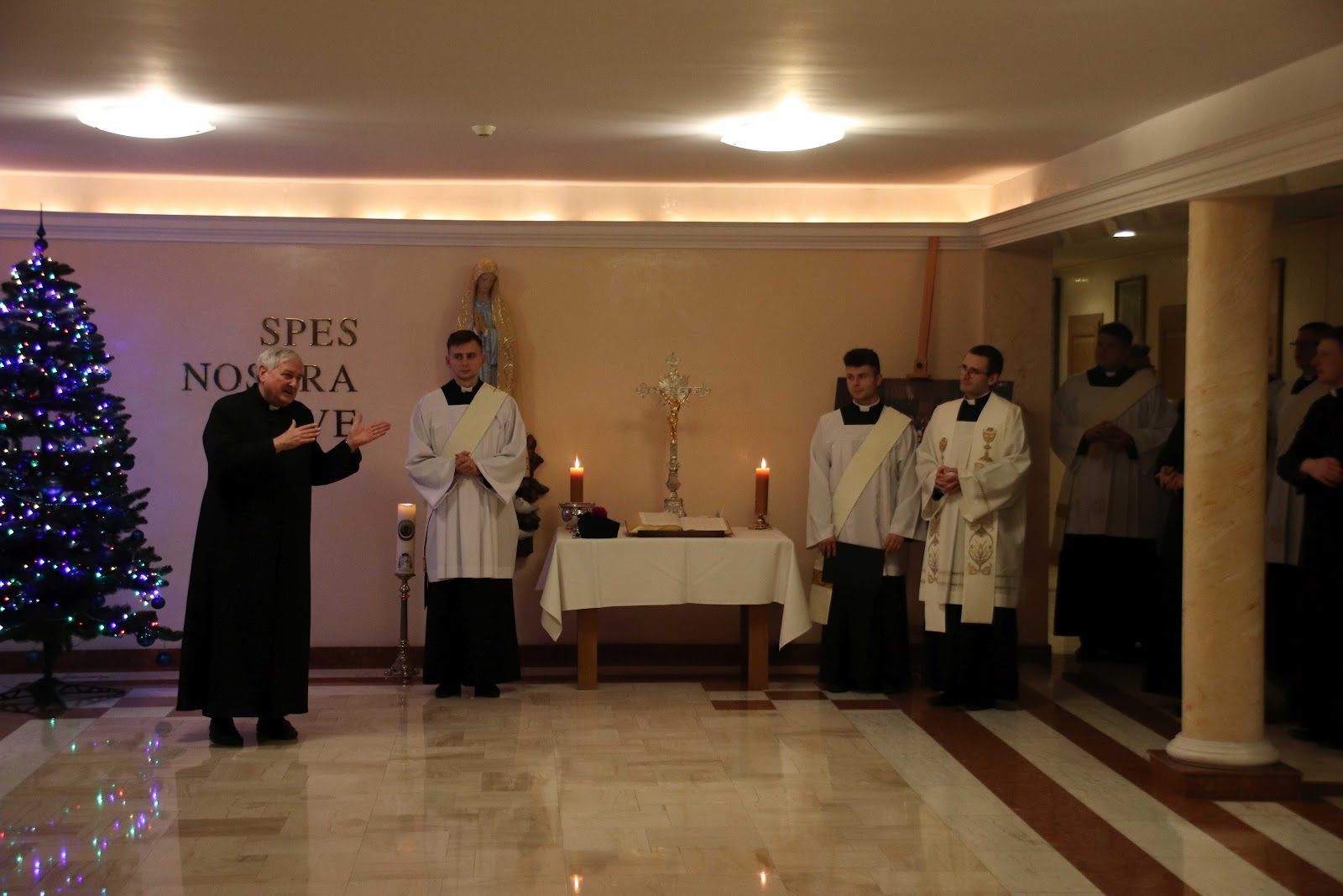 Po spotkaniu na modlitwie przeszliśmy na wspólną kolacje, po której przybył do nas ks. Ireneusz Szwarc - proboszcz parafii archikatedralnej, który podzielił się z nami krótkim słowem. Następnie ksiądz Łukasz pokropił nasz dom wodą święconą, po czym miał miejsce indywidualne kolędy w pokojach naszych alumnów z diakonami.