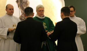Kolędę rozpoczęliśmy od uroczystej Eucharystii, której przewodniczył wcześniej wspomniany ks. kan. Roman Dworacki. Podczas homilii podzielił się on z nami swoimi przemyśleniami. Zaznaczył on, że dążąc do sakramentu kapłaństwa mamy w seminarium kalibrować swojego Bożego GPS-a oraz, że jako kapłani mamy być tkaczami wspólnoty.