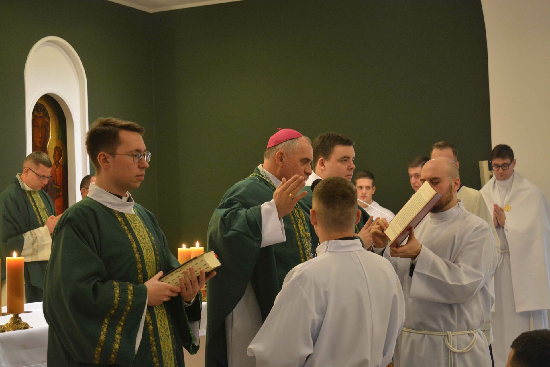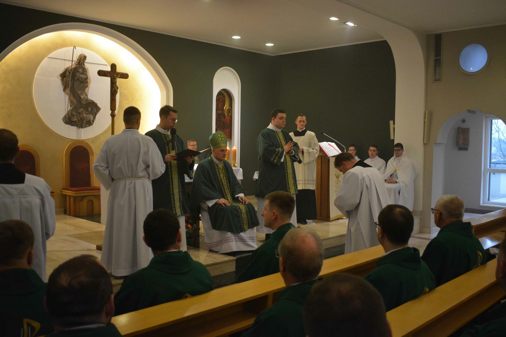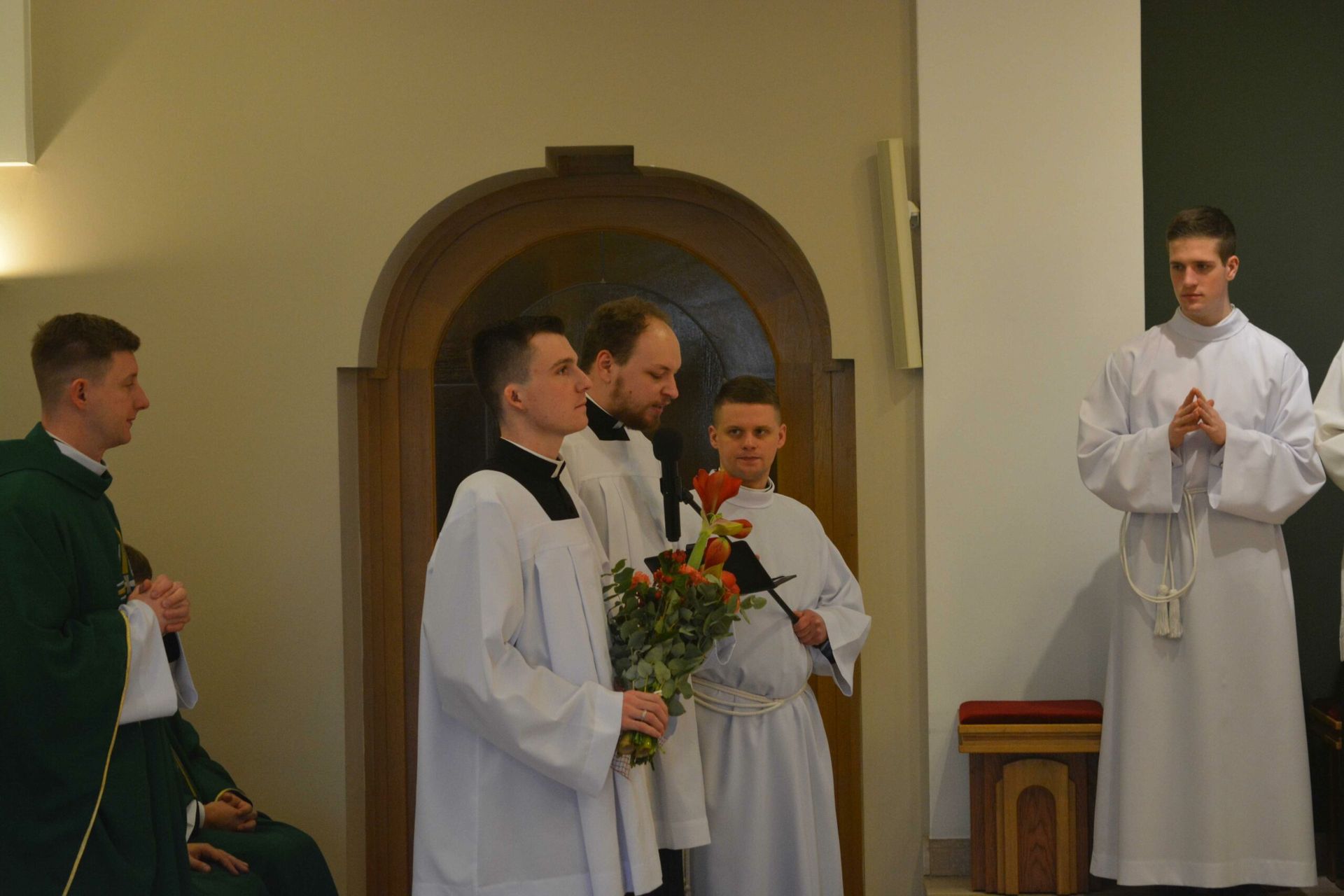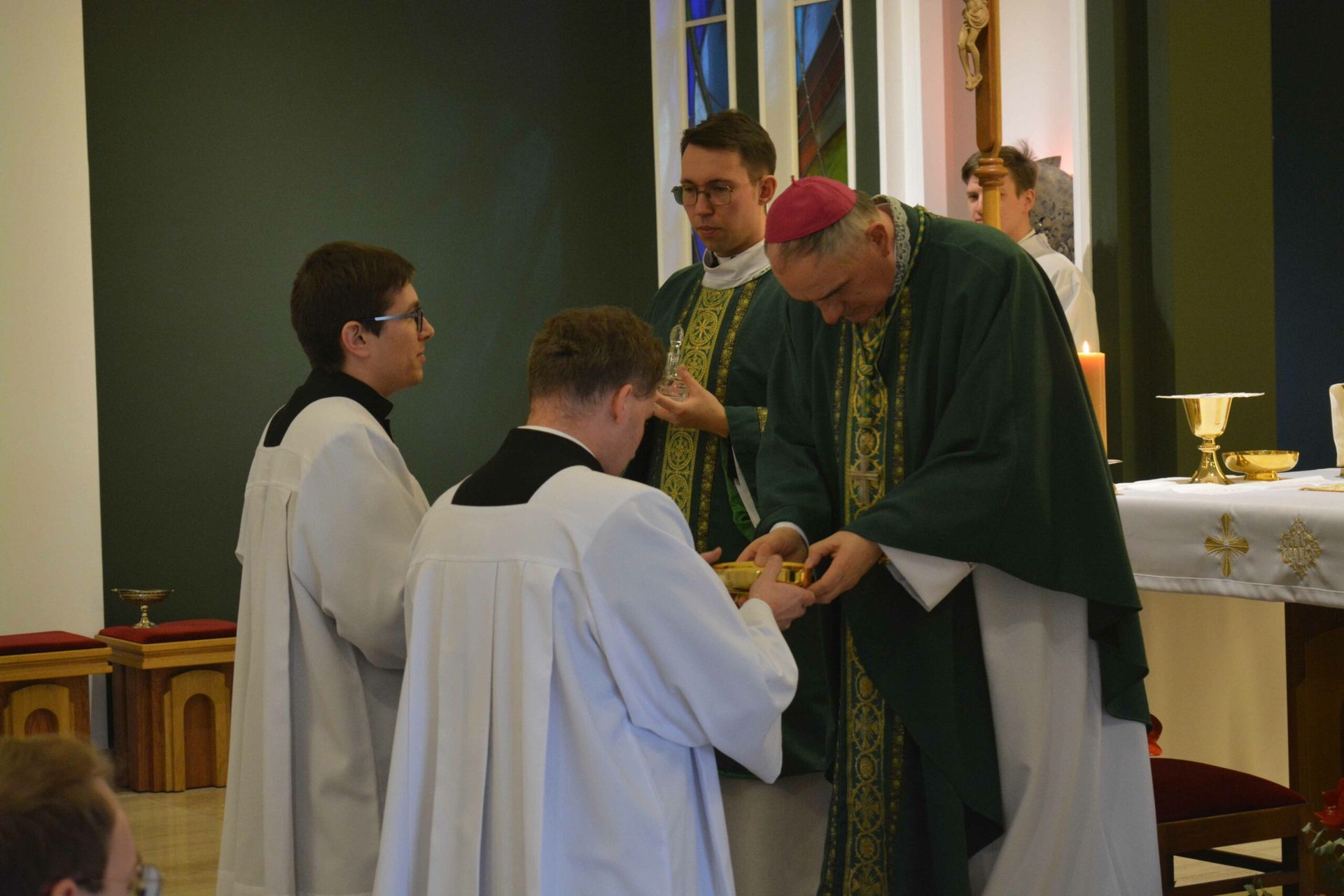 Eucharystię z udzieleniem posługi lektoratu celebrował w naszej kaplicy JE bp Krzysztof Włodarczyk - ordynariusz diecezji bydgoskiej wraz z przełożonymi seminaryjnymi i zaproszony księżmi. Na modlitwie obecni byli także zaproszeni goście, a więc przede wszystkim rodziny naszych braci oraz cała wspólnota seminaryjna. W trakcie homilii zwrócił się do braci przyjmujących posługę lektoratu, mówiąc, żeby umiłowali w swoim życiu Słowo Boże, a także, by ta posługa, którą przyjęli umacniała ich w dawaniu świadectwa oraz na drodze ku kapłaństwu. Na koniec przedstawiciel braci, którzy przyjęli posługę lektoratu wygłosił podziękowania.