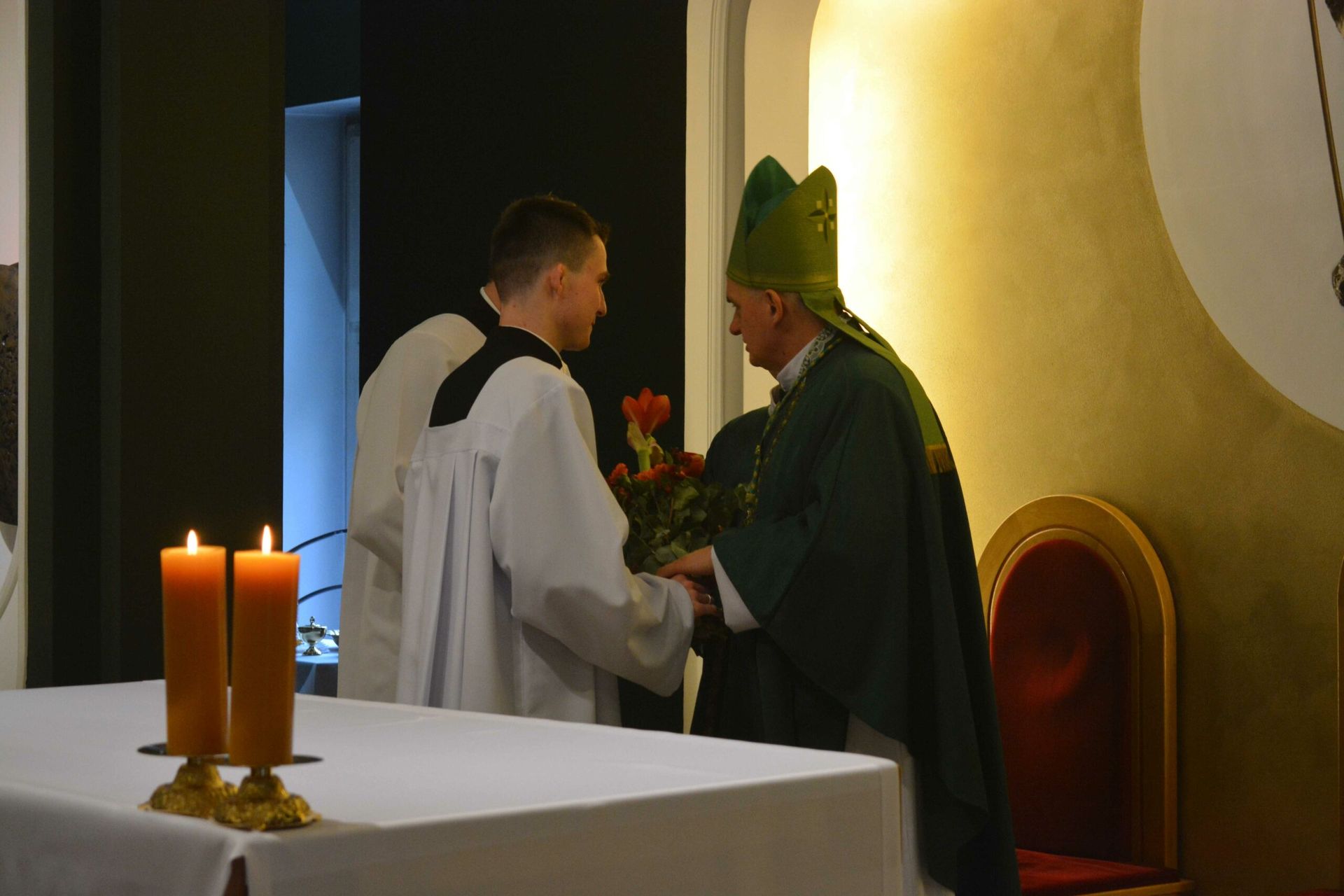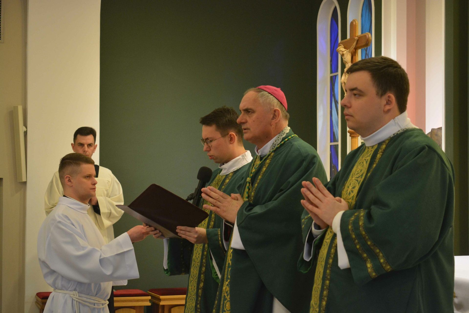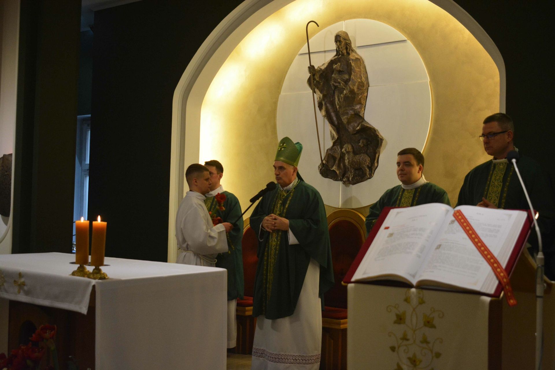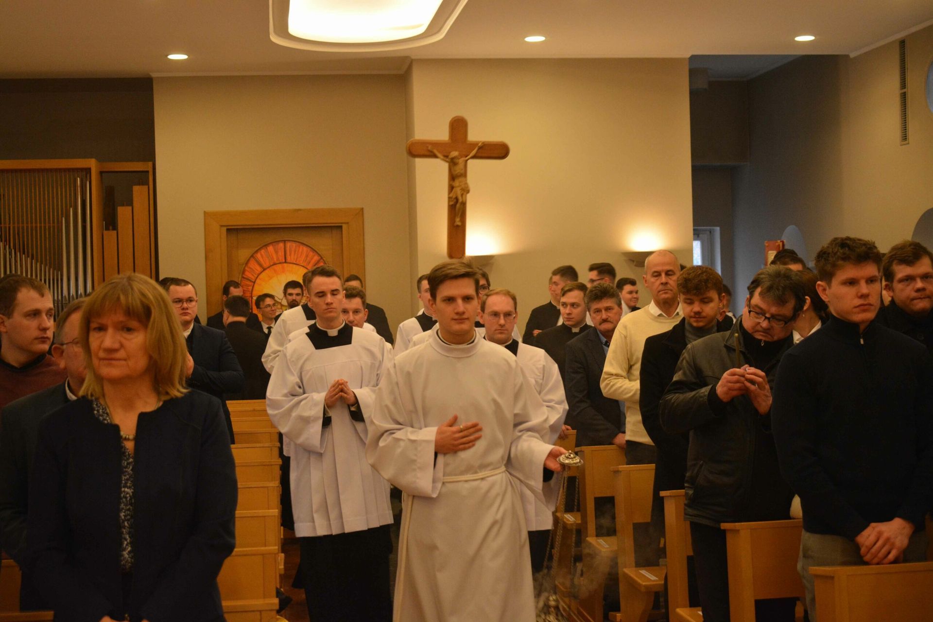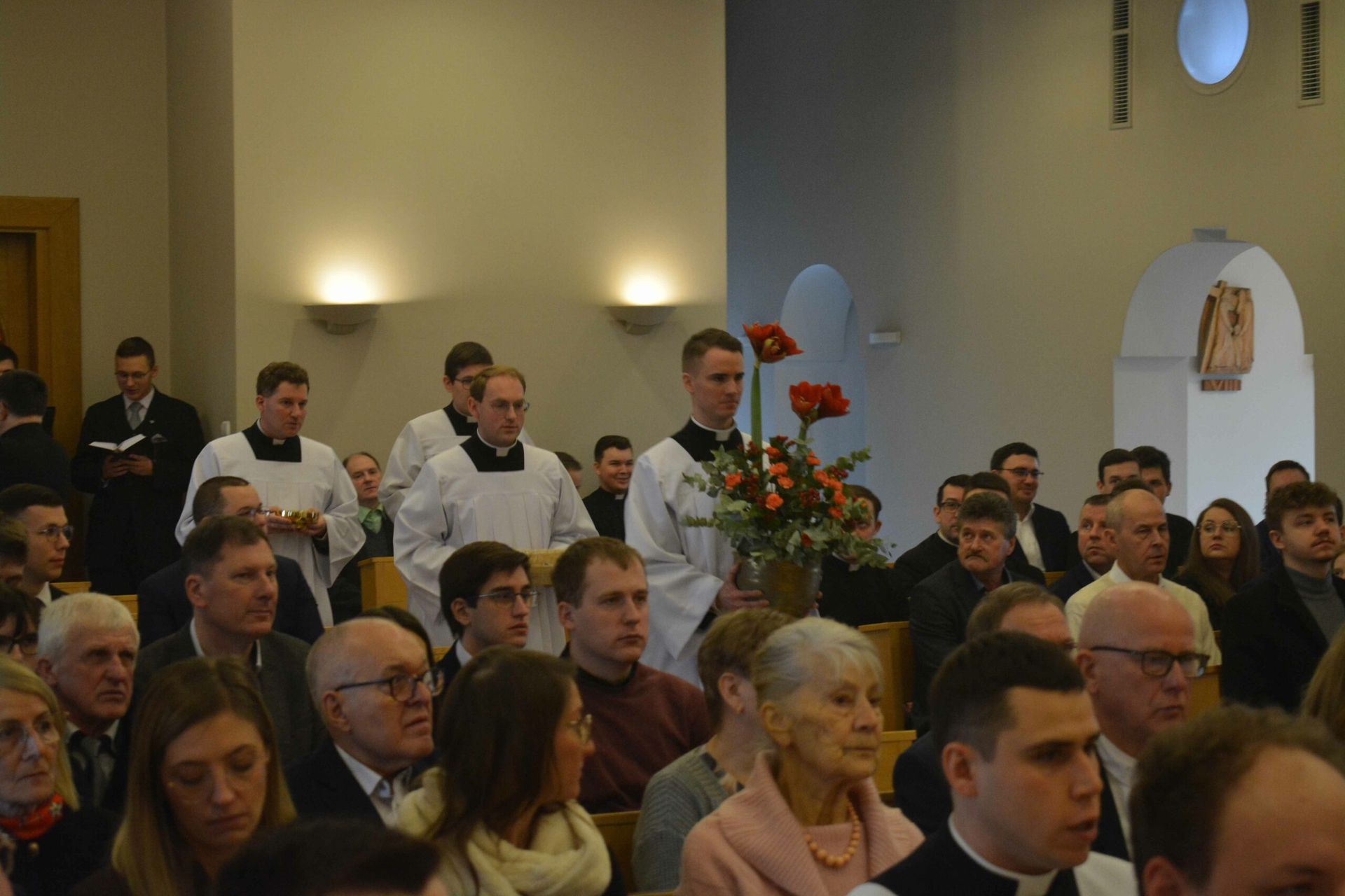 Eucharystię z udzieleniem posługi lektoratu celebrował w naszej kaplicy JE bp Krzysztof Włodarczyk - ordynariusz diecezji bydgoskiej wraz z przełożonymi seminaryjnymi i zaproszony księżmi. Na modlitwie obecni byli także zaproszeni goście, a więc przede wszystkim rodziny naszych braci oraz cała wspólnota seminaryjna. W trakcie homilii zwrócił się do braci przyjmujących posługę lektoratu, mówiąc, żeby umiłowali w swoim życiu Słowo Boże, a także, by ta posługa, którą przyjęli umacniała ich w dawaniu świadectwa oraz na drodze ku kapłaństwu. Na koniec przedstawiciel braci, którzy przyjęli posługę lektoratu wygłosił podziękowania.