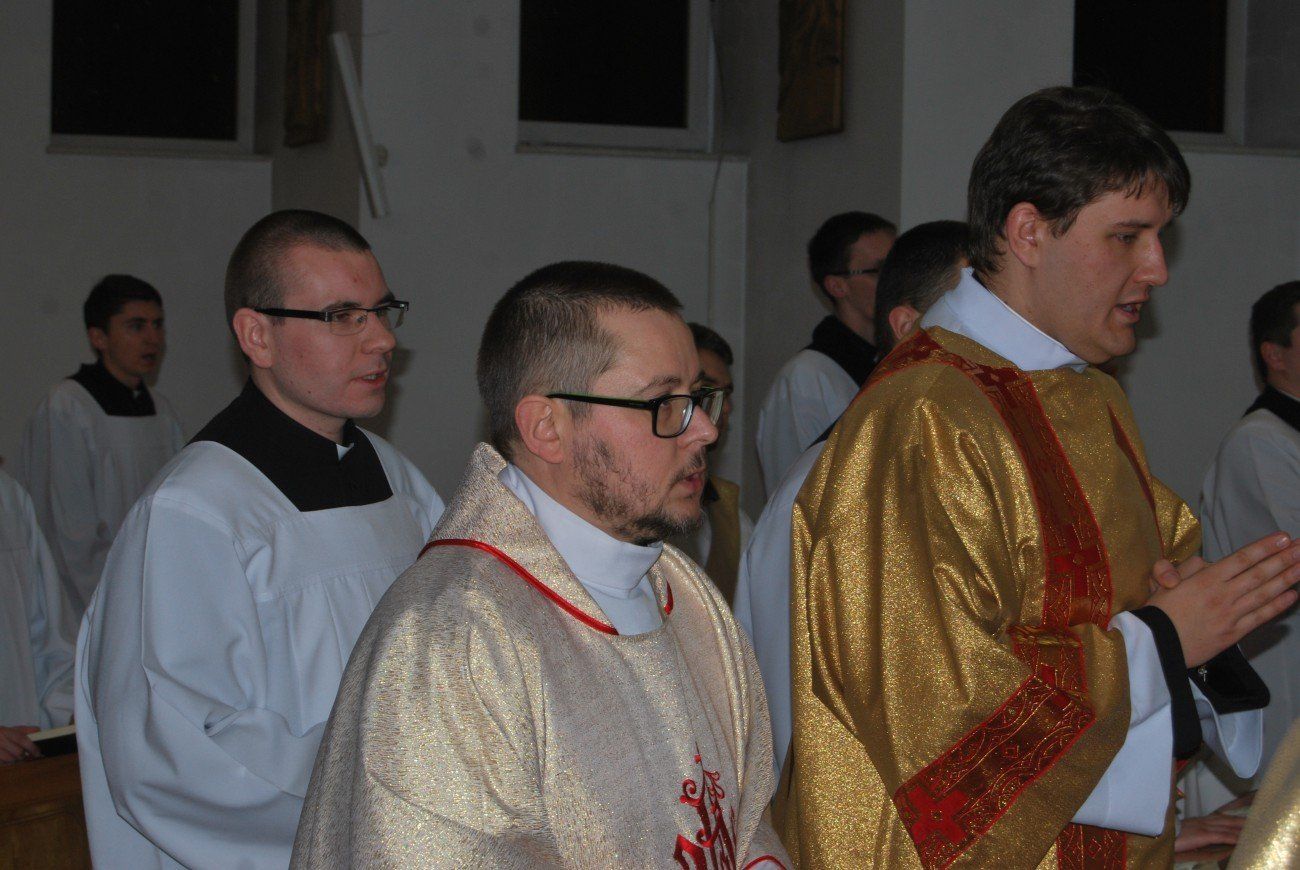 Ksiądz Tomasz przewodniczył uroczystej Mszy świętej, którą odprawił w intencji naszej wspólnoty. W homilii przybliżył nam, w jaki sposób znalazł się w Kazachstanie i jak wygląda jego posługa duszpasterska w tamtym miejscu. Tamtejsze realia opisywał m.in. w słowach: Tamtejsza jedna parafia to dwa nasze powiaty: składa się z 7 wiosek, rozległa jest na 120 km (…). Trzeba jechać 100 km do następnej parafii, aby poprosić tamtejszego księdza o spowiedź (…). Trzeba pamiętać o modlitwie, o sakramentach, bo to będzie nas umacniało (…). Zimą trzeba odkopać kilkanaście metrów śniegu, aby wyjechać z garażu. Wiosną przez kilka tygodni wioska zamienia się w wyspę odciętą od świata (…). Tamtejsza diecezji to 1,5 naszej Polski. Jest w niej 30 księży, więc na jednego księdza przypadają 2,3 a niekiedy nawet 4 parafie (…). Swoją homilię nasz gość zakończył radą skierowaną do kleryków naszego seminarium: Przyjmujcie Pana Jezusa i nie dajcie spowszednieć Ewangelii i Eucharystii.
