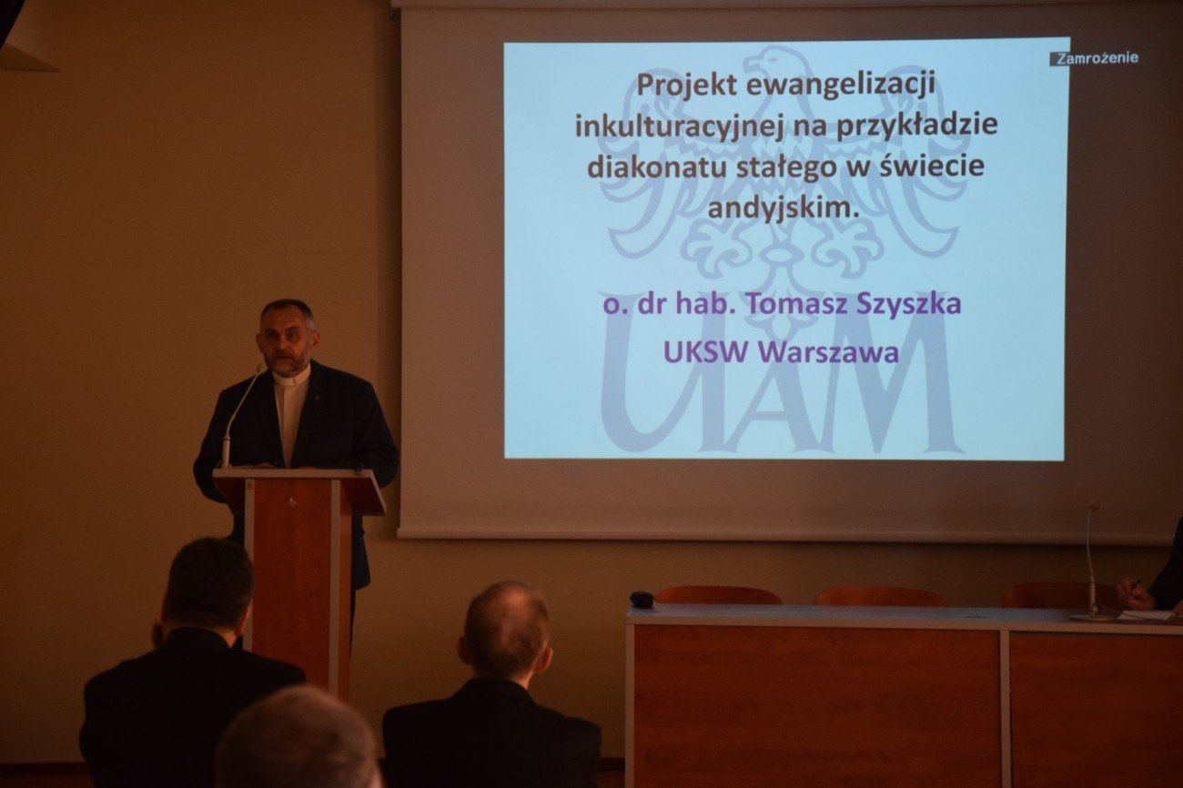 W dniach 25-26 października 2019 roku w naszym seminarium odbyła się Międzynarodowa Konferencja Naukowa pt.: „ Inkulturacja drogą dialogu Kościoła z kulturami świata”. Organizatorami tego wydarzenia byli Wydział Teologiczny Uniwersytetu im. Adama Mickiewicza w Poznaniu oraz Wyższe Seminarium Duchowne w Kaliszu w osobach ks. prof. dr. hab. Dariusza Kwiatkowskiego oraz diakona Jakuba Bogackiego. Konferencja zpstała była objęta patronatem honorowym Ministerstwa Kultury i Dziedzictwa Narodowego oraz Miasta Kalisza. Wsparcie wykazali także liczni patroni medialni. Nasz dom w ciągu tych dni miał zaszczyt gościć prelegentów przybyłych z różnych stron naszej ojczyzny oraz uczestników zagranicznych. Konferencji towarzyszyła wystawa fotograficzna odkryć naukowych ks. prof. dr. hab. Piotra Nawrota oraz jego pracy misyjnej i działalności muzycznej w Boliwii. Zwieńczeniem dwudniowych wykładów prowadzonych przez wielu wybitnych specjalistów był koncert muzyki barokowej z misji jezuickich i katedr w Ameryce Hiszpańskiej, wykonany przez Chór Kameralny Dysonans z Poznania w Katedrze św. Mikołaja Biskupa w Kaliszu.
