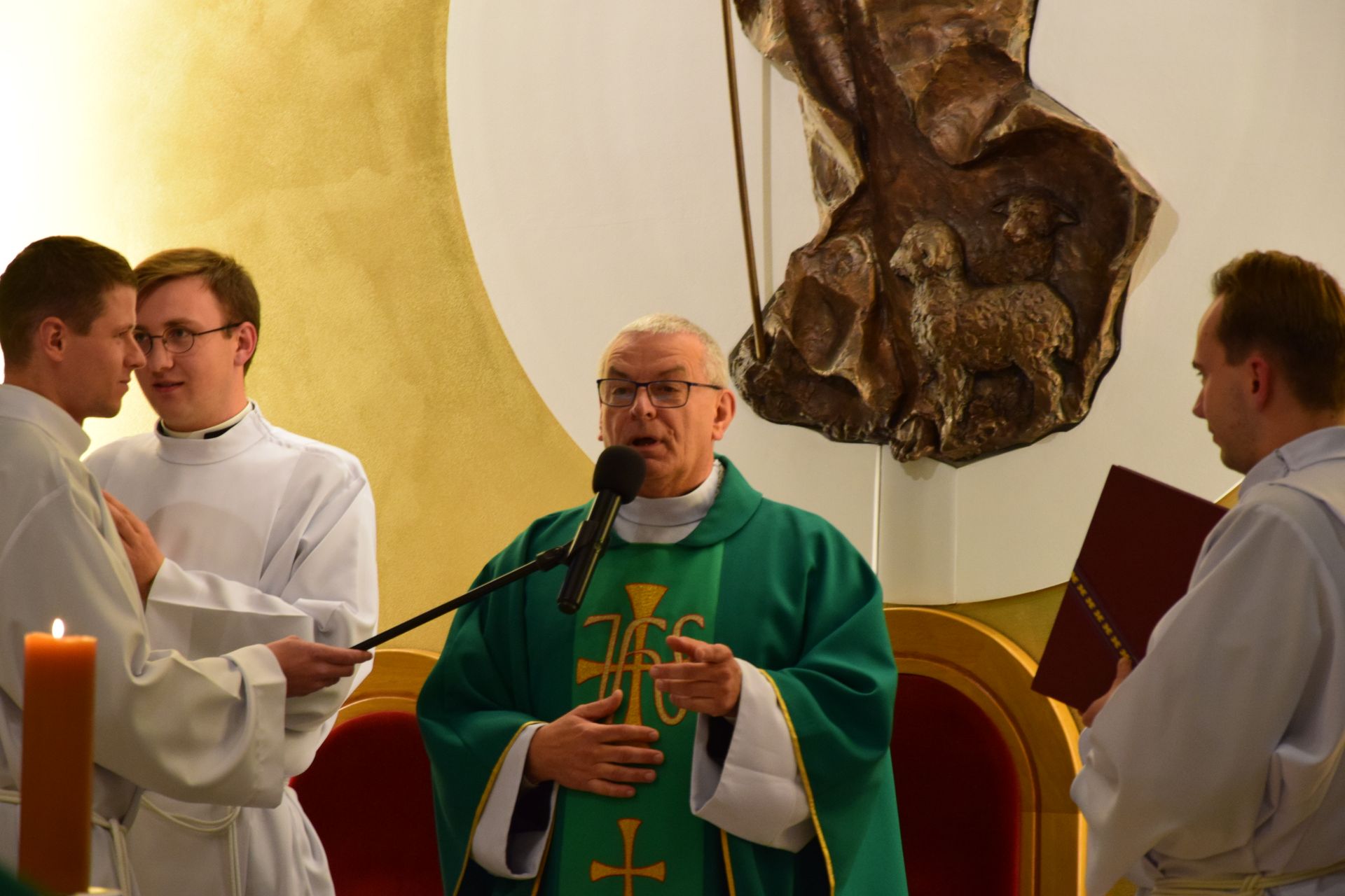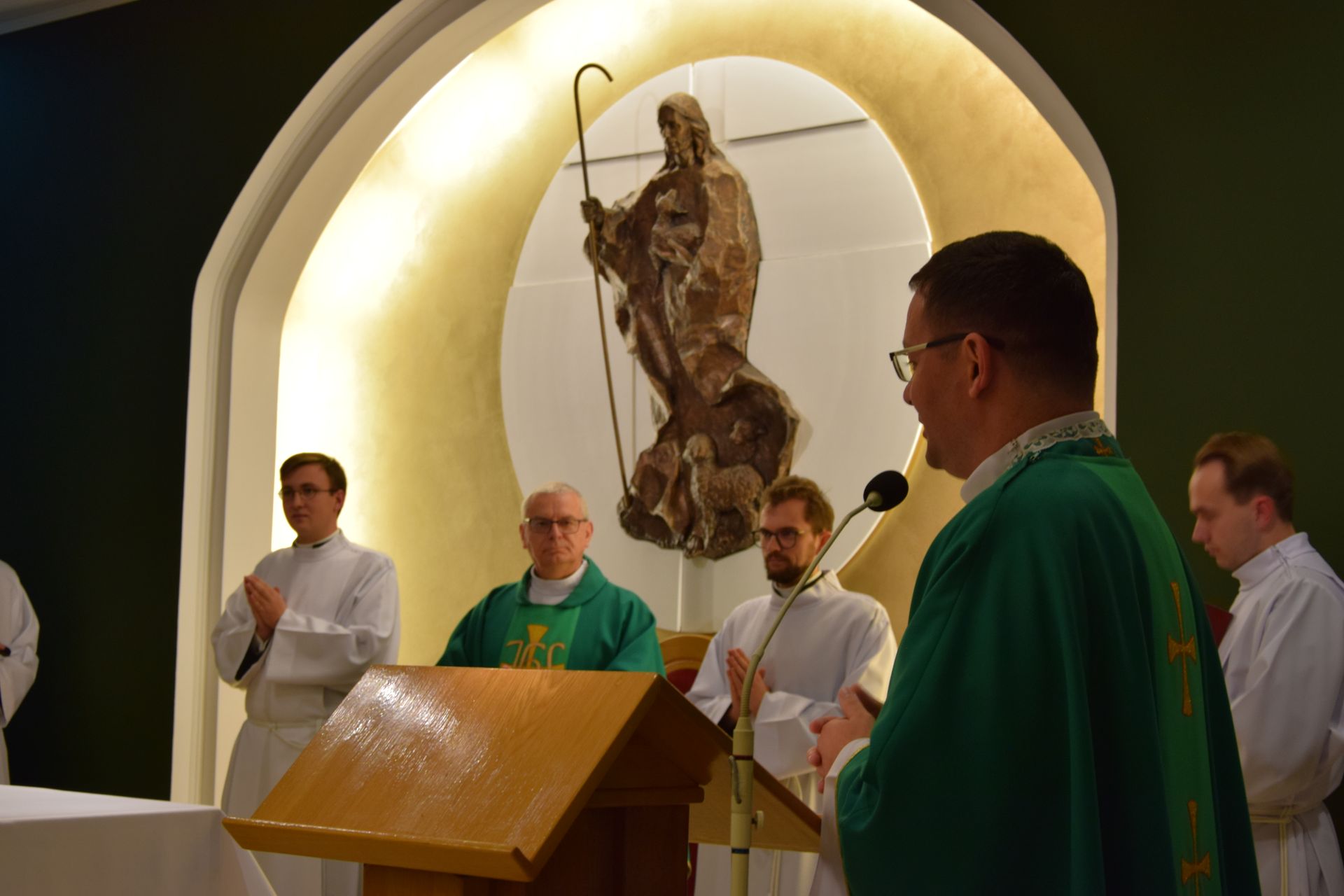 W trakcie homilii celebrans podzielił się z nami swoim słowem, w którym podkreślał, że Łódź Piotrowa, jaką jest Kościół nie powinna być wygodnym wycieczkowcem jak "Titanic". Powinna natomiast być szalupą ratunkową, której sternicy ludzi będą łowić . (por. Łk 5, 10)