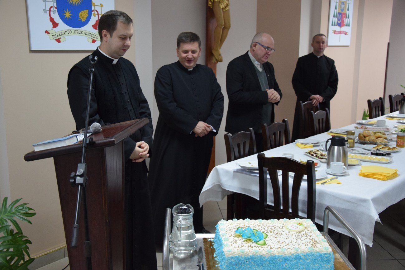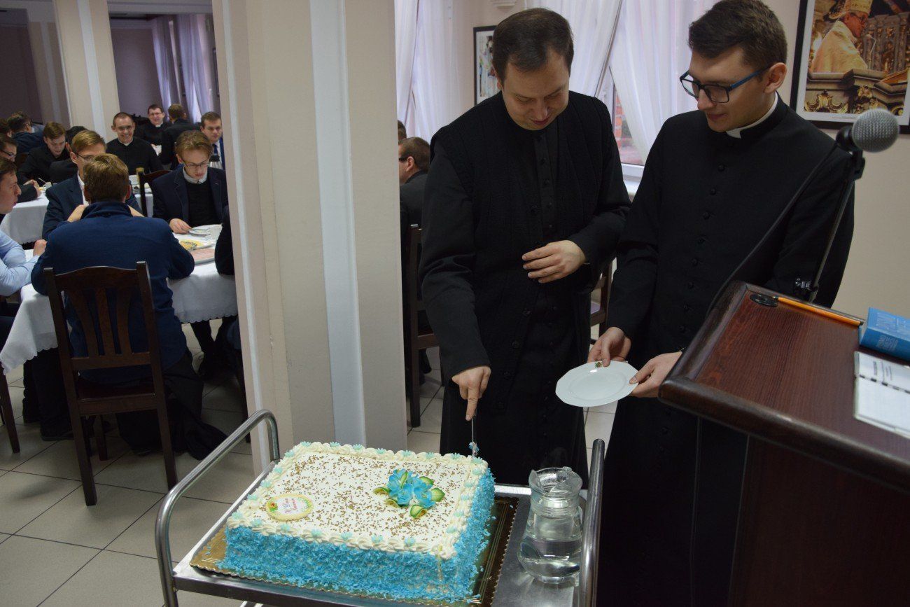 W sobotę, 15 grudnia 2018 roku w naszej wspólnocie seminaryjnej ksiądz prefekt Waldemar Graczyk obchodził swoje imieniny. Z tej okazji przewodniczył on uroczystej Eucharystii. Na zakończenie Mszy Świętej dziekan alumnów w imieniu całej wspólnoty złożył księdzu prefektowi życzenia imieninowe, życząc obfitości łask Bożych i asystencji Ducha Świętego w posłudze prefekta seminarium i kierownika internatu przy ZST. Po Mszy świętej wszyscy udali się na śniadanie imieninowe, którego uwieńczeniem był tort dedykowany solenizantowi.