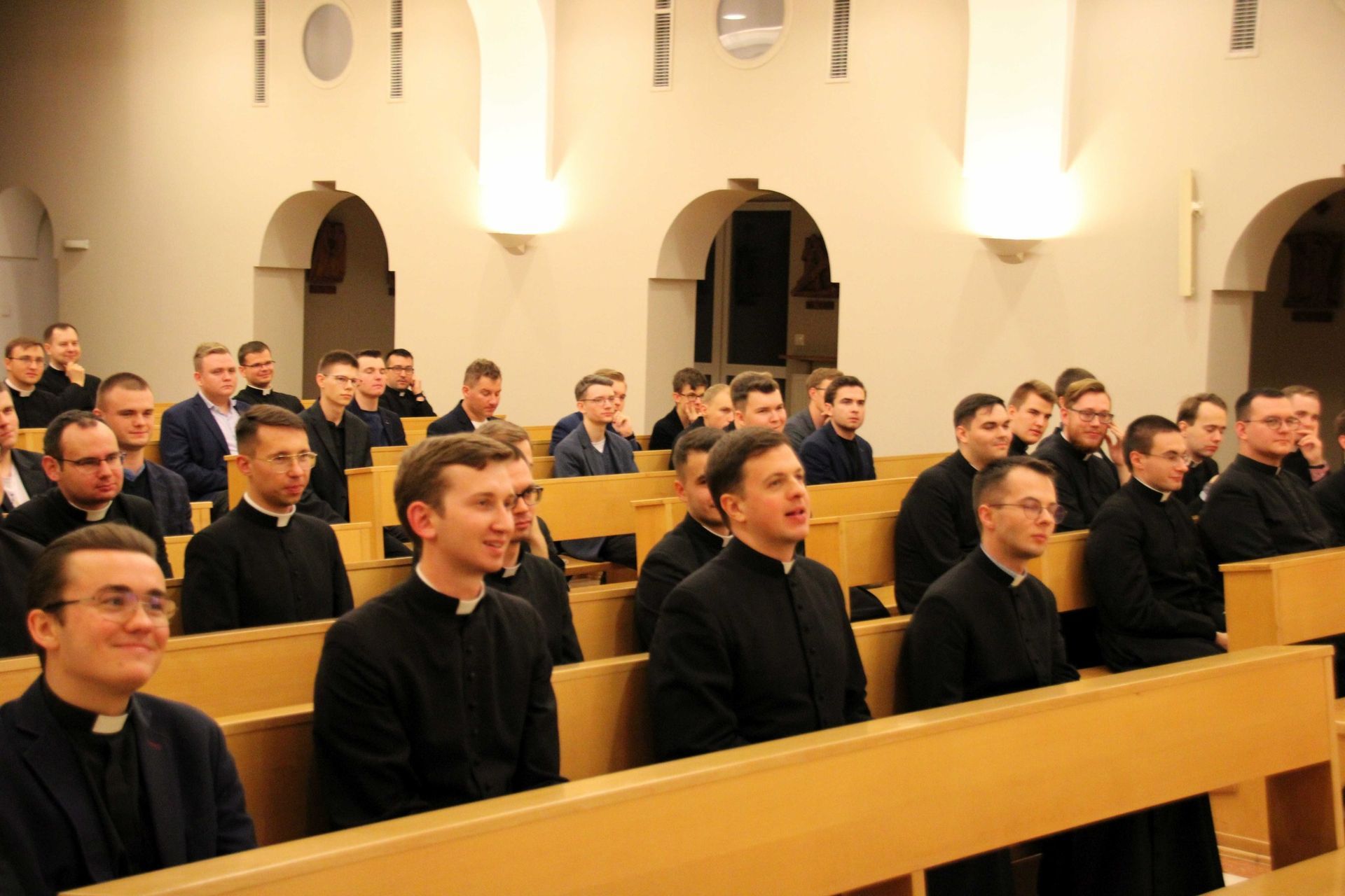 Tegoroczne rekolekcje adwentowe przeżywaliśmy w dniach 09-14 listopada i poprowadził je dla nas o. Janusz Chwast OP. Podczas rekolekcji towarzyszył nam cytat św. Katarzyny ze Sieny: "Dusza zamieszkuje celę poznania siebie, w której jest druga cela poznania dobroci Boga". W trakcie konferencji, o. Janusz przedstawił nam wiele myśli świętych, m.in. św. Katarzyny ze Sieny, św. s. Faustyny Kowalskiej, czy też św. Bernarda z Clairvaux. Rekolekcjonista przekazał nam także wiele myśli na temat pychy, modlitwy, pokory, życia w prawdzie i poznaniu samego siebie, czym modlitwa powinna być. Przekazał nam w naukach również swoje doświadczenie z bycia Magistrem nowicjuszy w klasztorze oo. Dominikanów w Warszawie na Służewie przez wiele lat. W swoich rozważaniach ojciec dominikanin chciał nam przekazać bardzo ważną kwestię dotyczącą relacji z Bogiem: "Poznanie siebie jest wprost proporcjonalne do poznania Boga. Im lepiej będziemy znali siebie, tym lepiej będziemy znali Boga". - powiedział rekolekcjonista Dziękujemy o. Januszowi za przekazanie nam wielu tak ważnych i wartościowych myśli, konkretnie odnoszących się do naszego życia, podzieleniem się z nami swoim doświadczeniem z przepowiadania i życia kapłańskiego oraz poprowadzenie nas przez ten czas wraz z myślami wielu świętych. Pamiętajmy o modlitwie w intencji o. Janusza, aby w dalszym ciągu poddawał się natchnieniom Ducha Świętego i wypełniał swoje powołanie do głoszenia Ewangelii według zamysłu Bożego. Zdjęcia za: Arcybiskupie Seminarium Duchowne