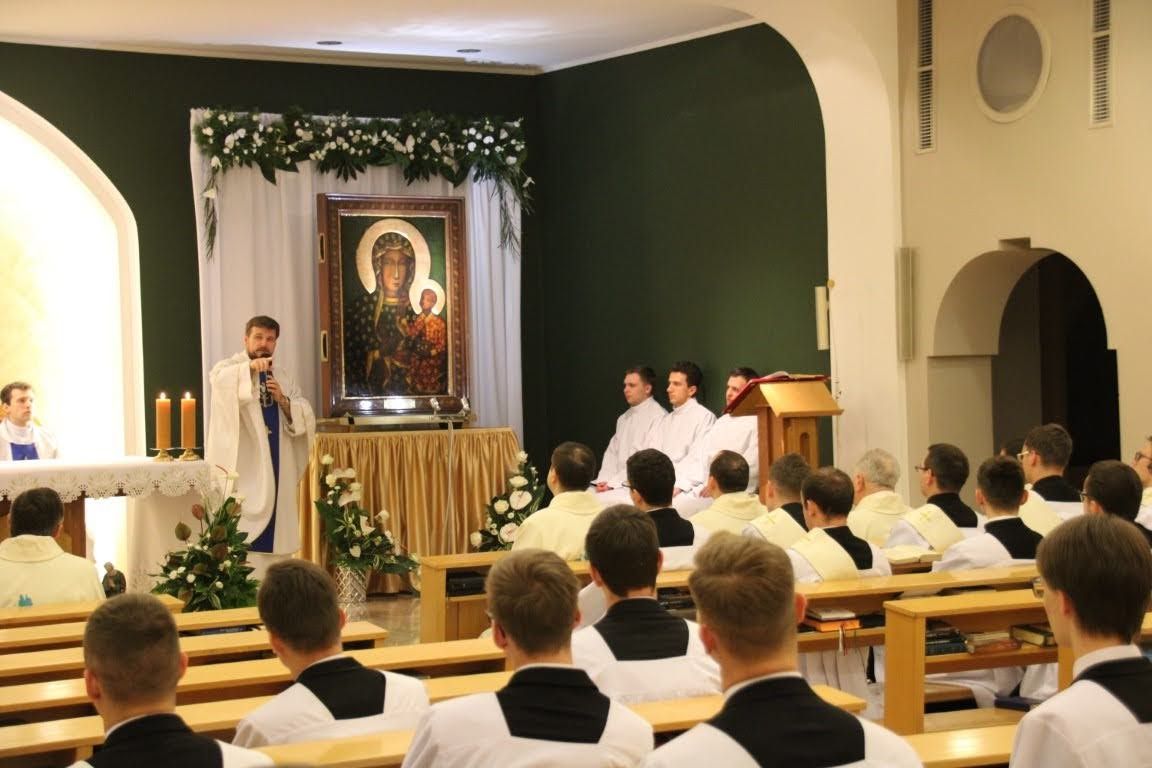 Tegoroczne rekolekcje adwentowe przeżywaliśmy w dniach 09-14 listopada i poprowadził je dla nas o. Janusz Chwast OP. Podczas rekolekcji towarzyszył nam cytat św. Katarzyny ze Sieny: "Dusza zamieszkuje celę poznania siebie, w której jest druga cela poznania dobroci Boga". W trakcie konferencji, o. Janusz przedstawił nam wiele myśli świętych, m.in. św. Katarzyny ze Sieny, św. s. Faustyny Kowalskiej, czy też św. Bernarda z Clairvaux. Rekolekcjonista przekazał nam także wiele myśli na temat pychy, modlitwy, pokory, życia w prawdzie i poznaniu samego siebie, czym modlitwa powinna być. Przekazał nam w naukach również swoje doświadczenie z bycia Magistrem nowicjuszy w klasztorze oo. Dominikanów w Warszawie na Służewie przez wiele lat. W swoich rozważaniach ojciec dominikanin chciał nam przekazać bardzo ważną kwestię dotyczącą relacji z Bogiem: "Poznanie siebie jest wprost proporcjonalne do poznania Boga. Im lepiej będziemy znali siebie, tym lepiej będziemy znali Boga". - powiedział rekolekcjonista Dziękujemy o. Januszowi za przekazanie nam wielu tak ważnych i wartościowych myśli, konkretnie odnoszących się do naszego życia, podzieleniem się z nami swoim doświadczeniem z przepowiadania i życia kapłańskiego oraz poprowadzenie nas przez ten czas wraz z myślami wielu świętych. Pamiętajmy o modlitwie w intencji o. Janusza, aby w dalszym ciągu poddawał się natchnieniom Ducha Świętego i wypełniał swoje powołanie do głoszenia Ewangelii według zamysłu Bożego. Zdjęcia za: Arcybiskupie Seminarium Duchowne