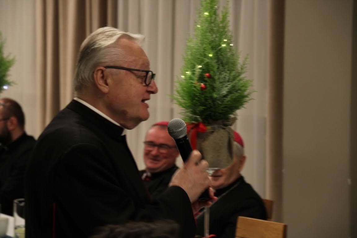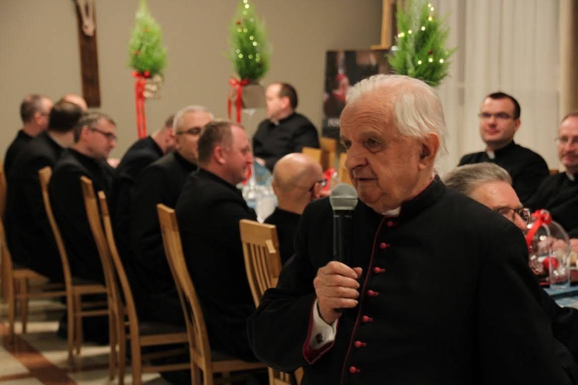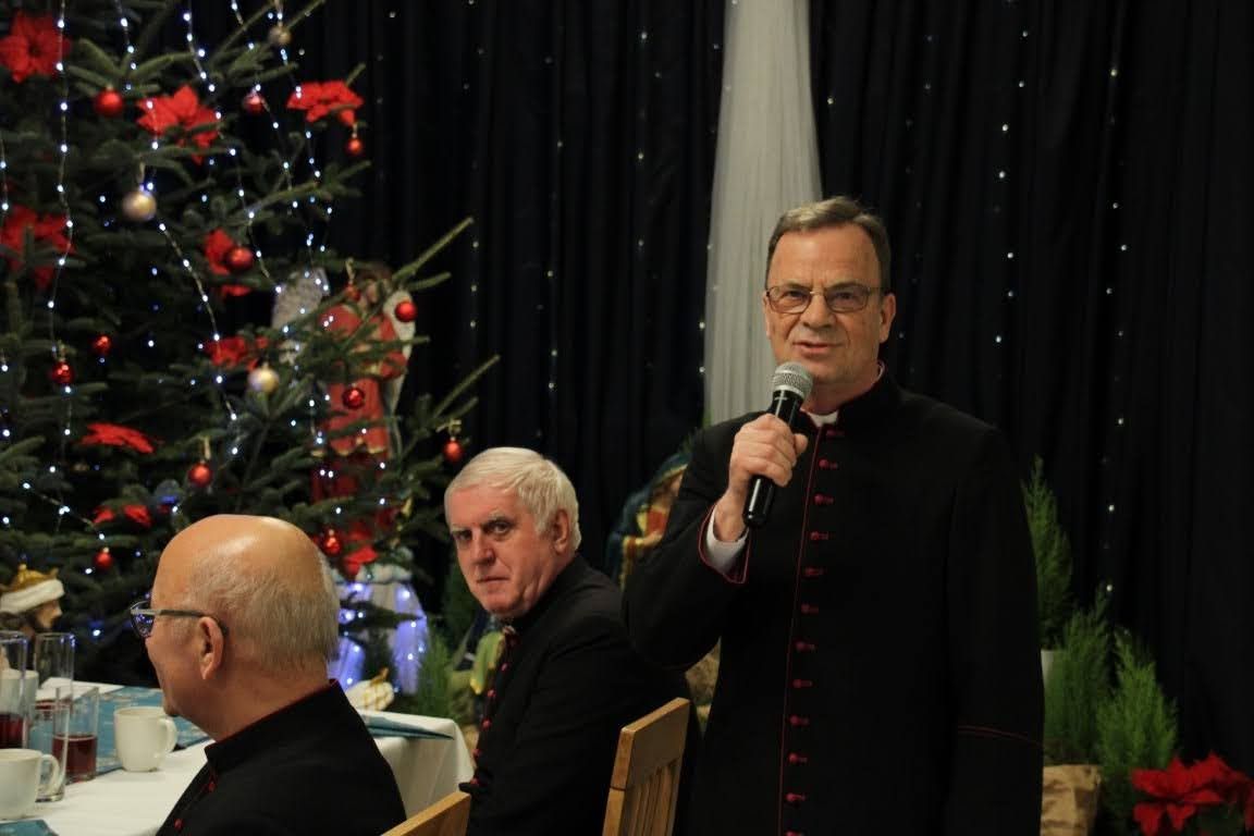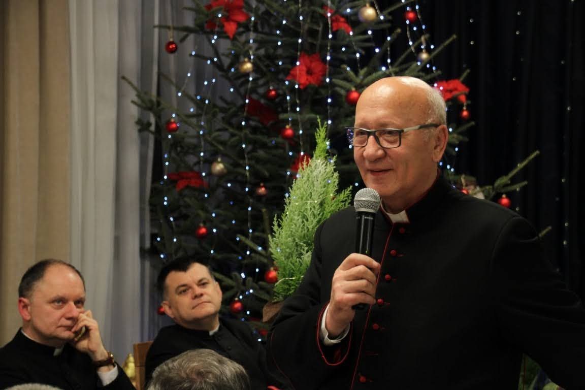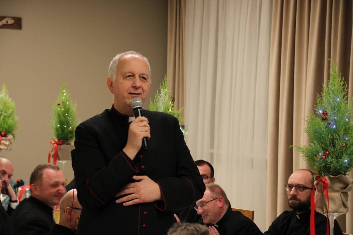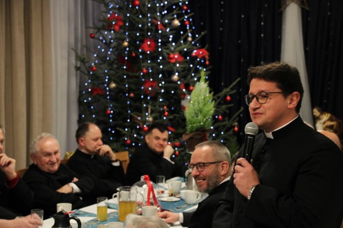 17 grudnia, w środę mieliśmy okazję przeżywać w naszej wspólnocie wigilię seminaryjną. Na początku zeszliśmy się wspólnie do auli seminaryjnej, aby razem z pasterzami naszych diecezji, przełożonymi, klerykami, pracownikami naszego seminarium oraz zaproszonymi gośćmi obejrzeć sztukę przygotowaną dla nas przez braci z kursu IV, pt. "Niczego nie będzie". Spektakl mówił o seminaryjnej rzeczywistości przygotowywania się do świąt Bożego Narodzenia oraz o naszej kruchości, która wtedy wychodzi na jaw. Mogliśmy ujrzeć całokształt formowania się jasełek, a więc po kolei były to: 1) Egzorta z księdzem prefektem, który informuje kleryków o takim obowiązku, który na nich spada 2) Scena wspólnej kawy w pokoju jednego z kleryków i burza mózgów o jasełkach 3) Pierwsza próba, która się kompletnie nie układa 4) Pierwsza scena odgrywana w nocy o szukaniu sensu przedstawienia 5) Wieszanie dekoracji, podczas której wywiązuje się ogromna kłótnia między klerykami 6) Druga scena odgrywana w nocy o głębokich przemyśleniach i refleksjach, gdzie powinniśmy tego sensu i głębi jasełek szukać 7) Dzień przedstawienia, podczas którego nic nie wychodzi, każdy jest już przemęczony i klerycy mają dość siebie nawzajem, lecz w momencie największego załamania zaczynają widzieć cel tych jasełek - że Bóg ma się narodzić w naszym sercu, nawet jeśli jest ono tak kruche jak rzeczywistość przedstawiona na jasełkach Po odegranych jasełkach i życzeniach złożonych przez seniora kursu IV, który przygotowywał jasełka głos zabrał JE abp metropolita poznański Zbigniew Zieliński. Podczas swojego przemówienia, podziękował on za odegrany spektakl z głębokim przesłaniem, a także osobiście złożył życzenia wszystkim zebranym na auli seminaryjnej. Po odczytaniu fragmentu Ewangelii przez dk. Dominika Grolewskiego, wszyscy połamaliśmy się opłatkiem i złożyliśmy sobie życzenia, a gdy już wszyscy byli gotowi, zeszliśmy na nasz seminaryjny refektarz, aby przejść do kolejnego etapu świętowania wigilii w naszej wspólnocie, a więc spożywania wieczerzy wigilijnej przy wspólnym stole. Podczas wieczerzy mieliśmy okazję wspólnie zaśpiewać kolędy oraz usłyszeć przemówienia naszych pasterzy, zakończone życzeniami oraz błogosławieństwem. Dziękujemy wszystkim, którzy przybyli do naszego domu, aby świętować ten radosny i uroczysty dzień w naszej wspólnocie seminaryjnej. Zdjęcia za: Arcybiskupie Seminarium Duchowne w Poznaniu.