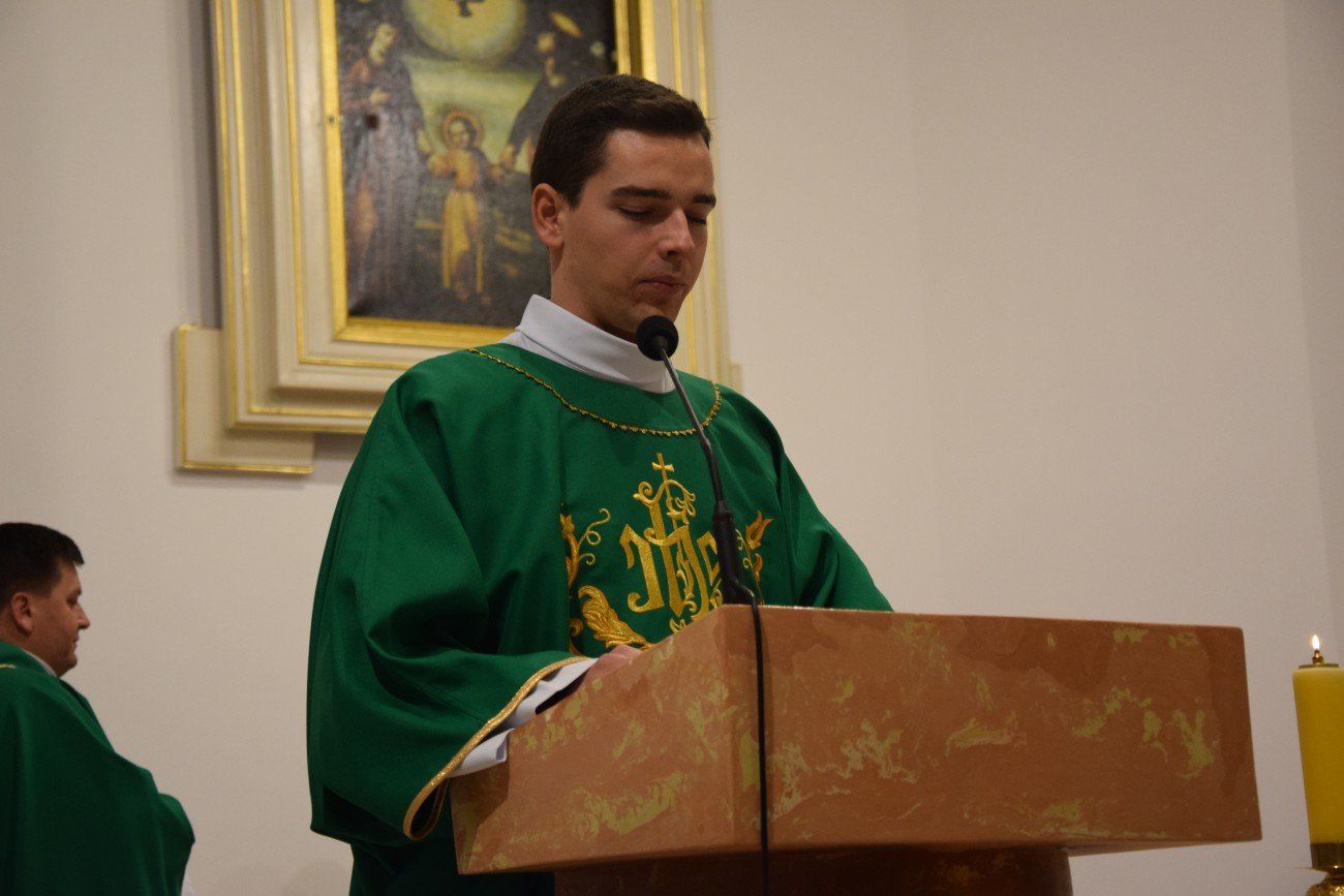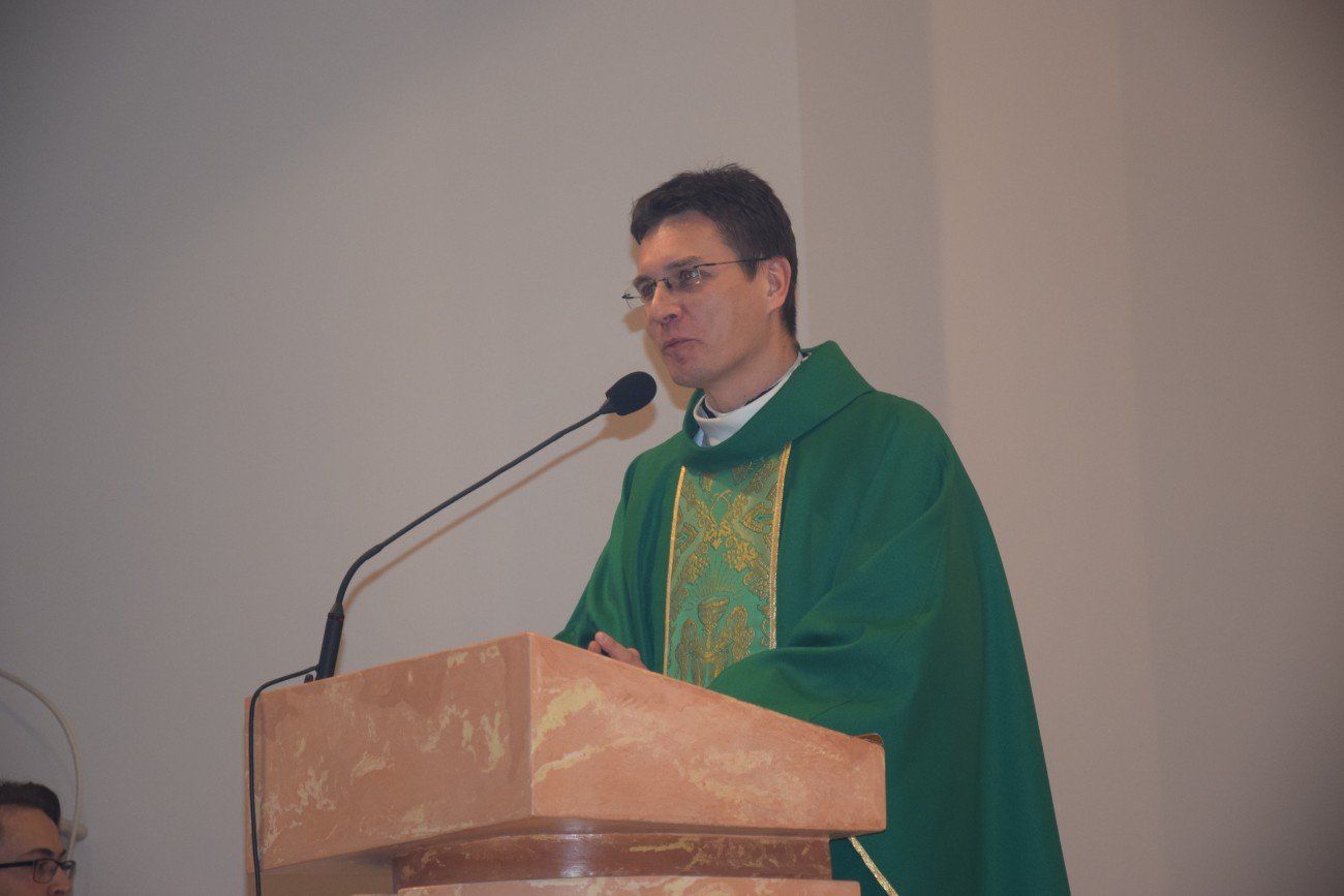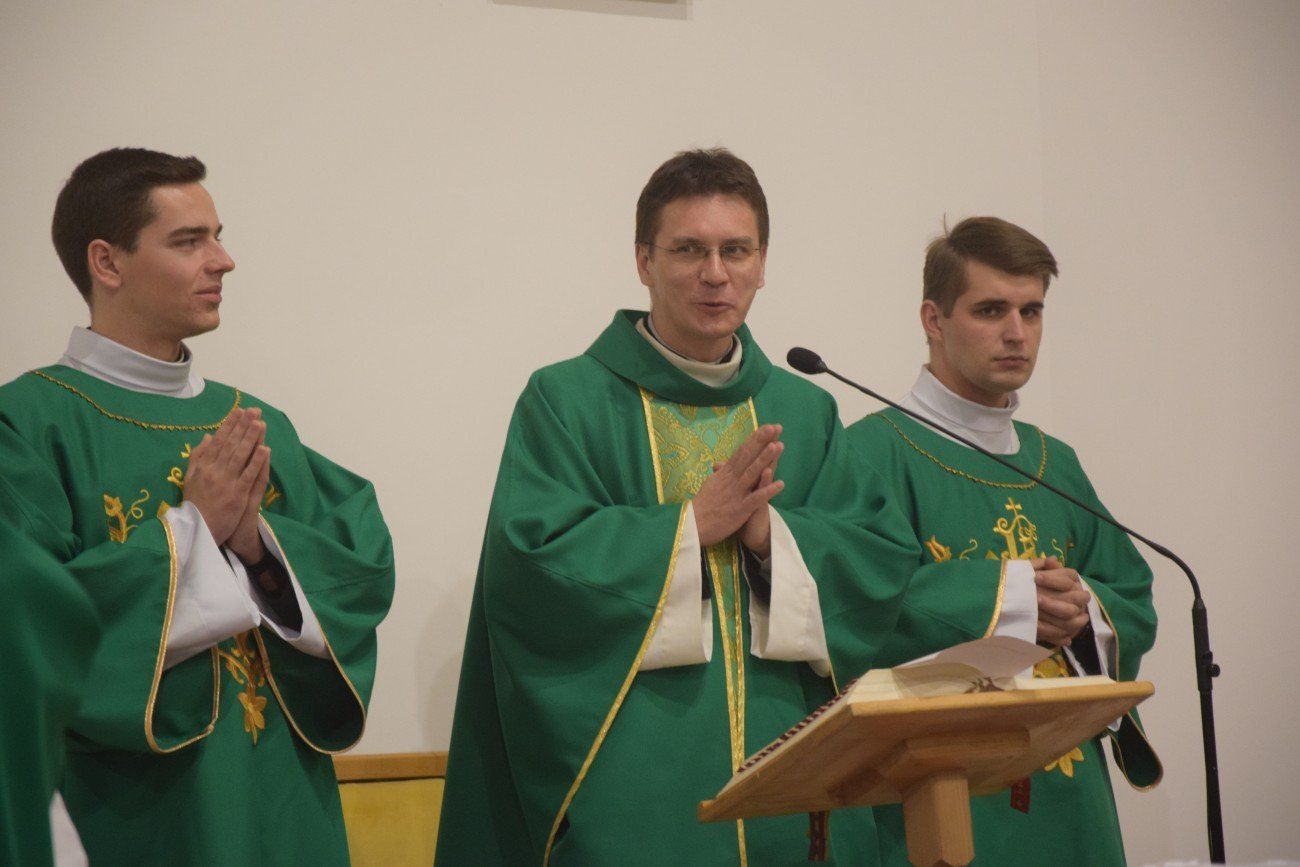 Ksiądz Jarosław przewodniczył uroczystej Eucharystii, na początku której został powitany przez księdza kanonika Eugeniusza Synowca - Dyrektora administracyjnego naszego domu. W homilii kaznodzieja podzielił się swoim doświadczeniem kapłaństwa, pracy na parafii oraz pracy duszpasterskiej z młodzieżą, zwłaszcza z ministrantami.