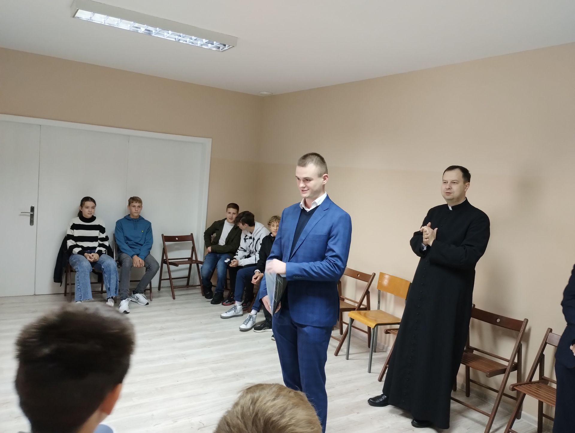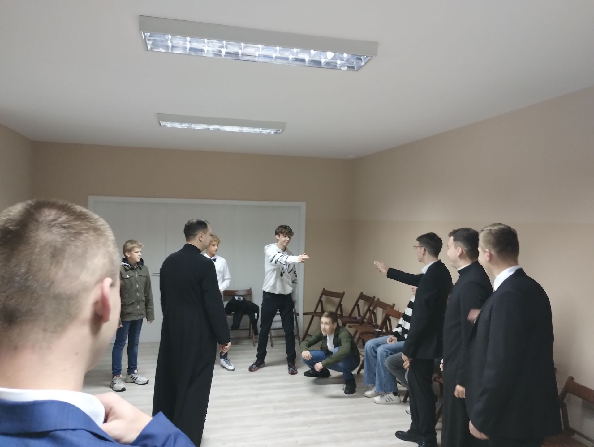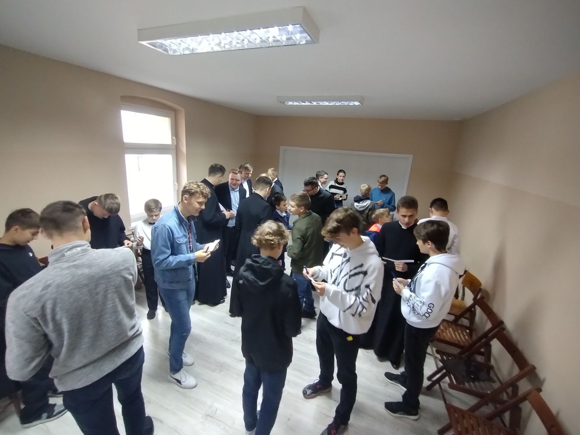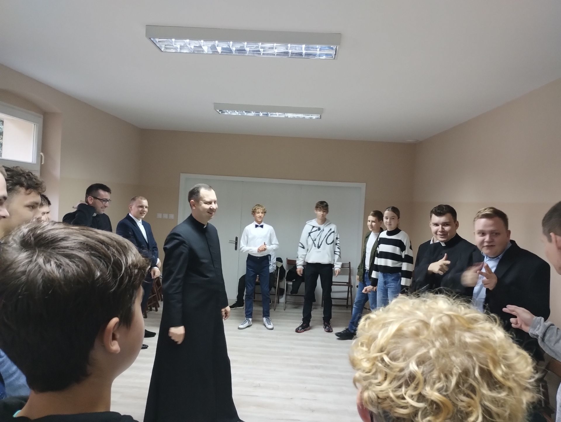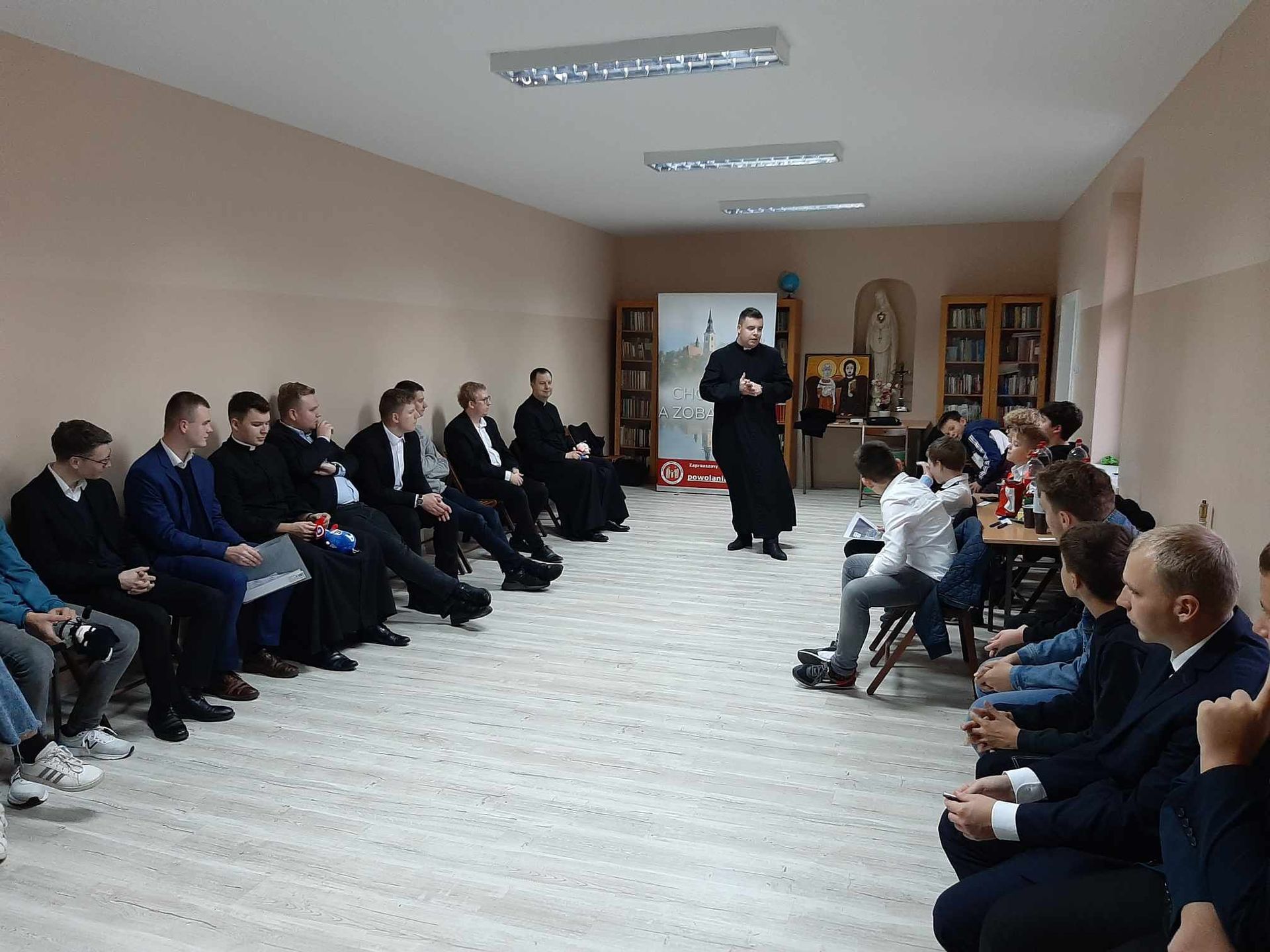 Nasze spotkanie rozpoczęła integracja prowadzona przez kl. Martyna z II roku, która pomogła nam lepiej się poznać. Później miała miejsce krótka konferencja ks. wicerektora Waldemara Graczyka oraz świadectwo kl. Alana z IV roku. Następnie przeżyliśmy wspólnie Eucharystię celebrowaną przez ks. wicerektora, kapłanów posługujących w parafii oraz dziekana dekanatu.