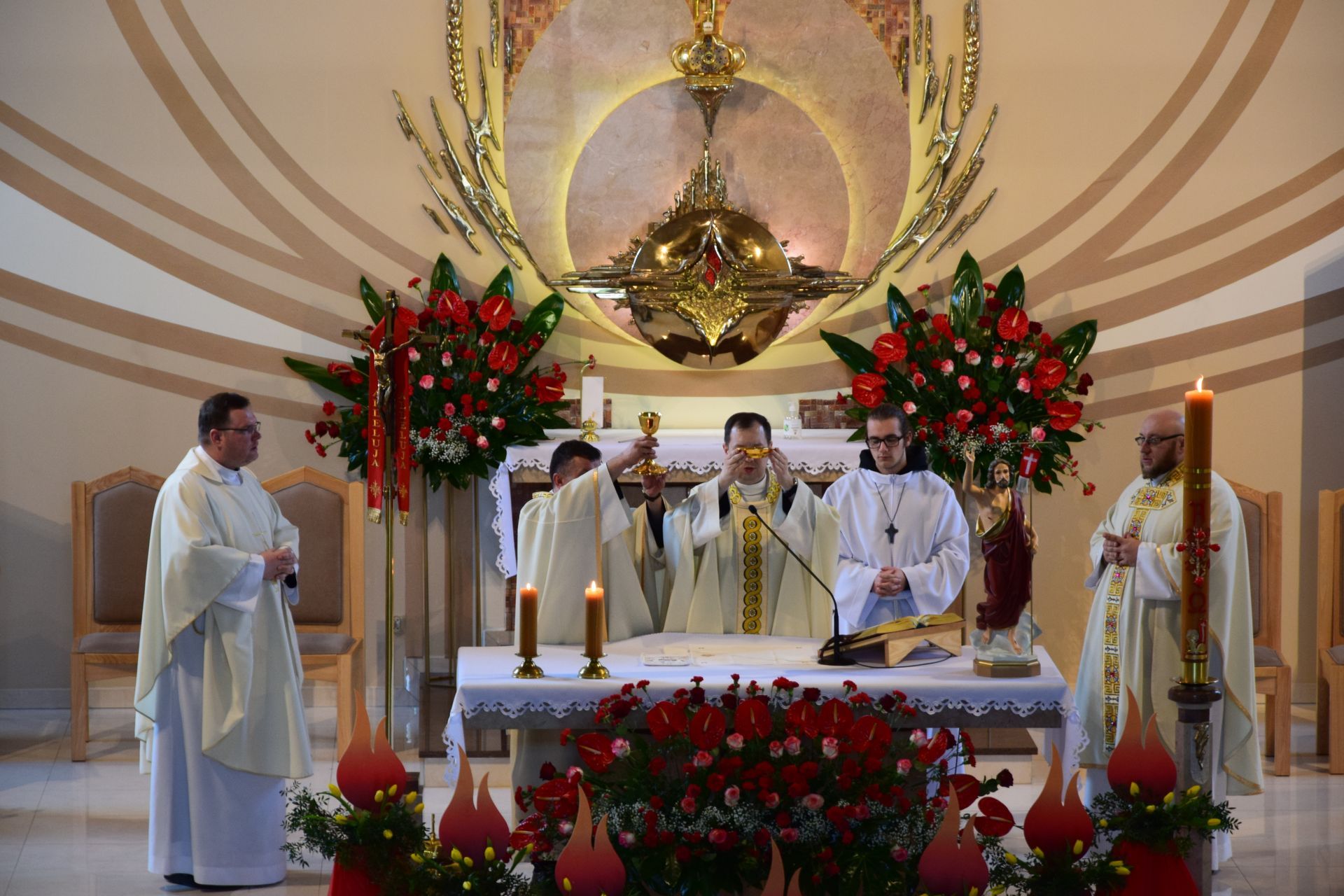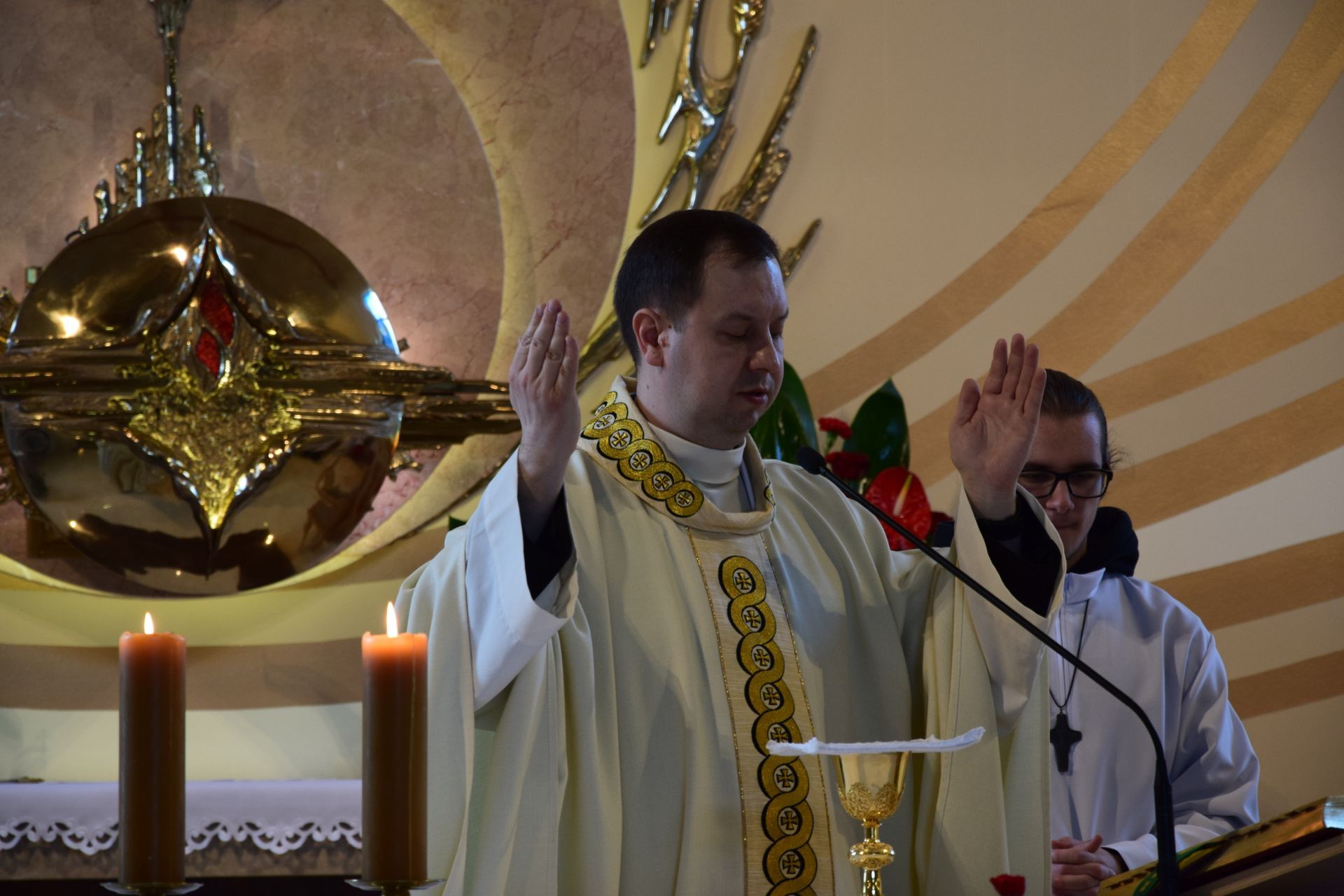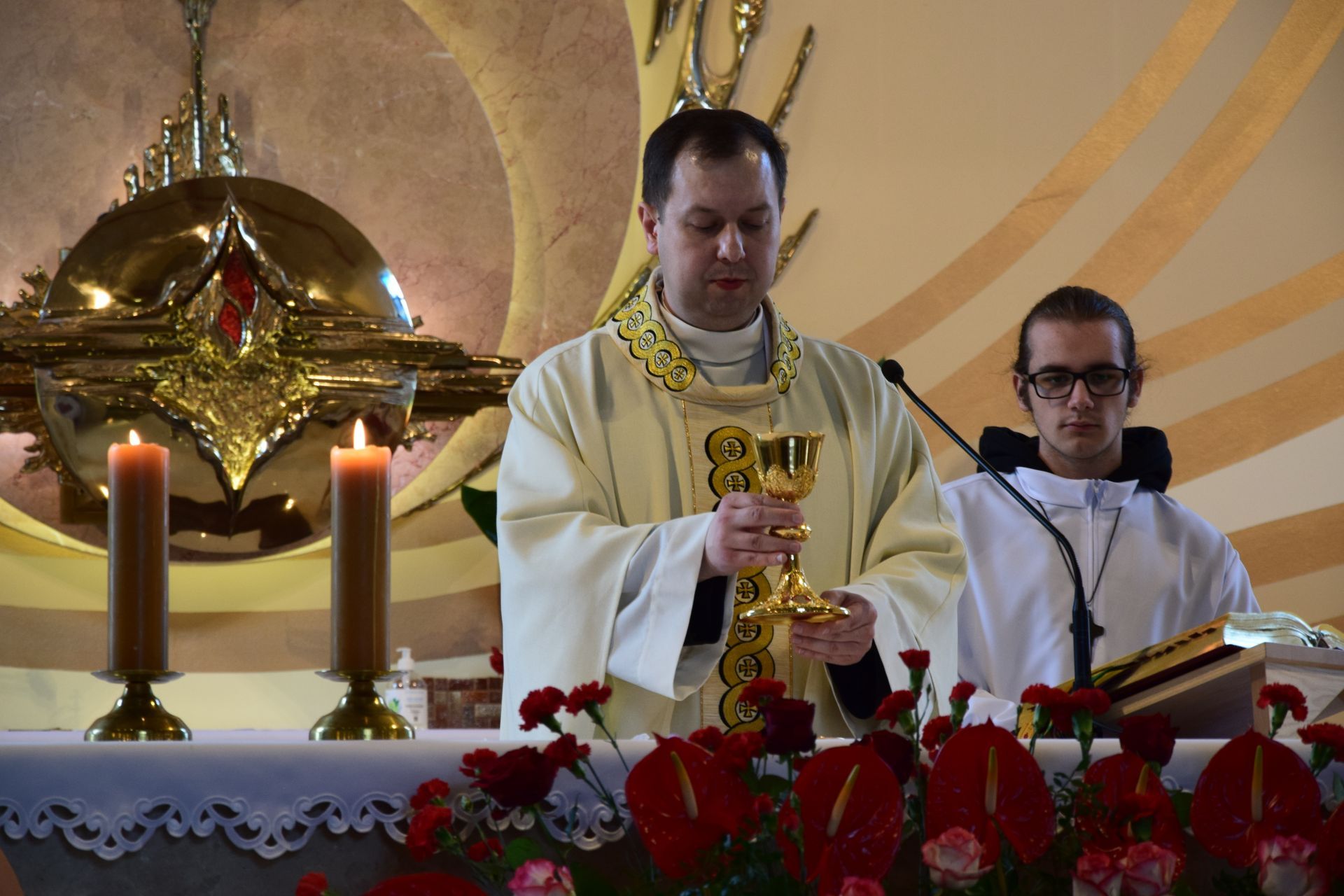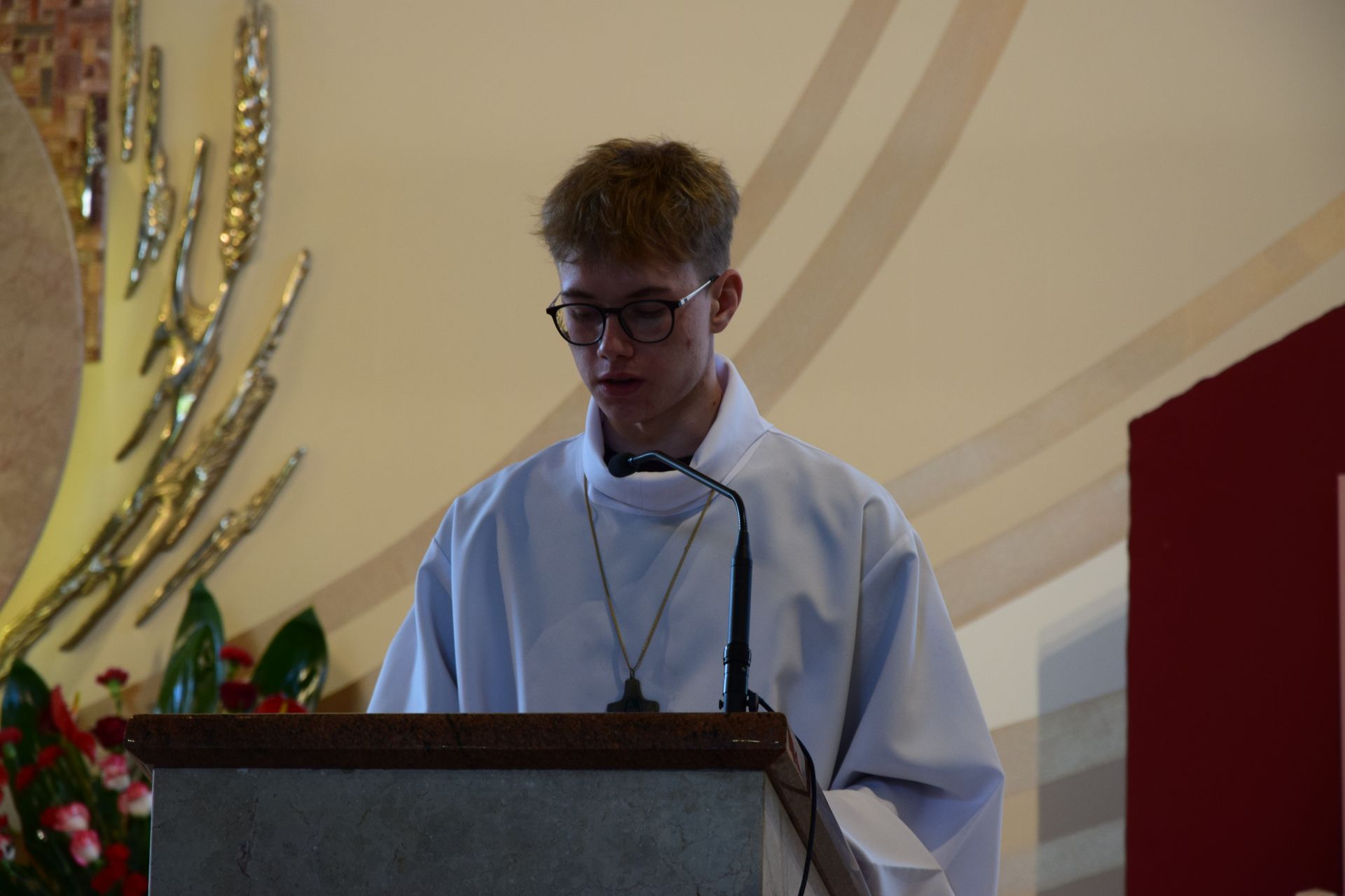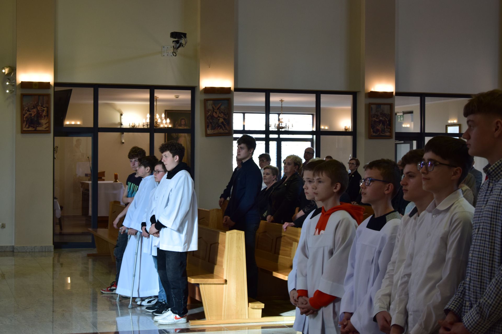 Później przeżyliśmy wspólnie Eucharystię pod przewodnictwem księdza wicerektora Waldemara, w trakcie której koncelebrowali ks. Piotr Kowalek - proboszcz parafii, ks. Łukasz Skworzec - wikariusz a także o. Łukasz. W naszej naszym wspólnym dziękczynieniu brali udział także uczestniczący w spotkaniu chłopcy oraz parafianie i goście w parafii św. Jadwigi.