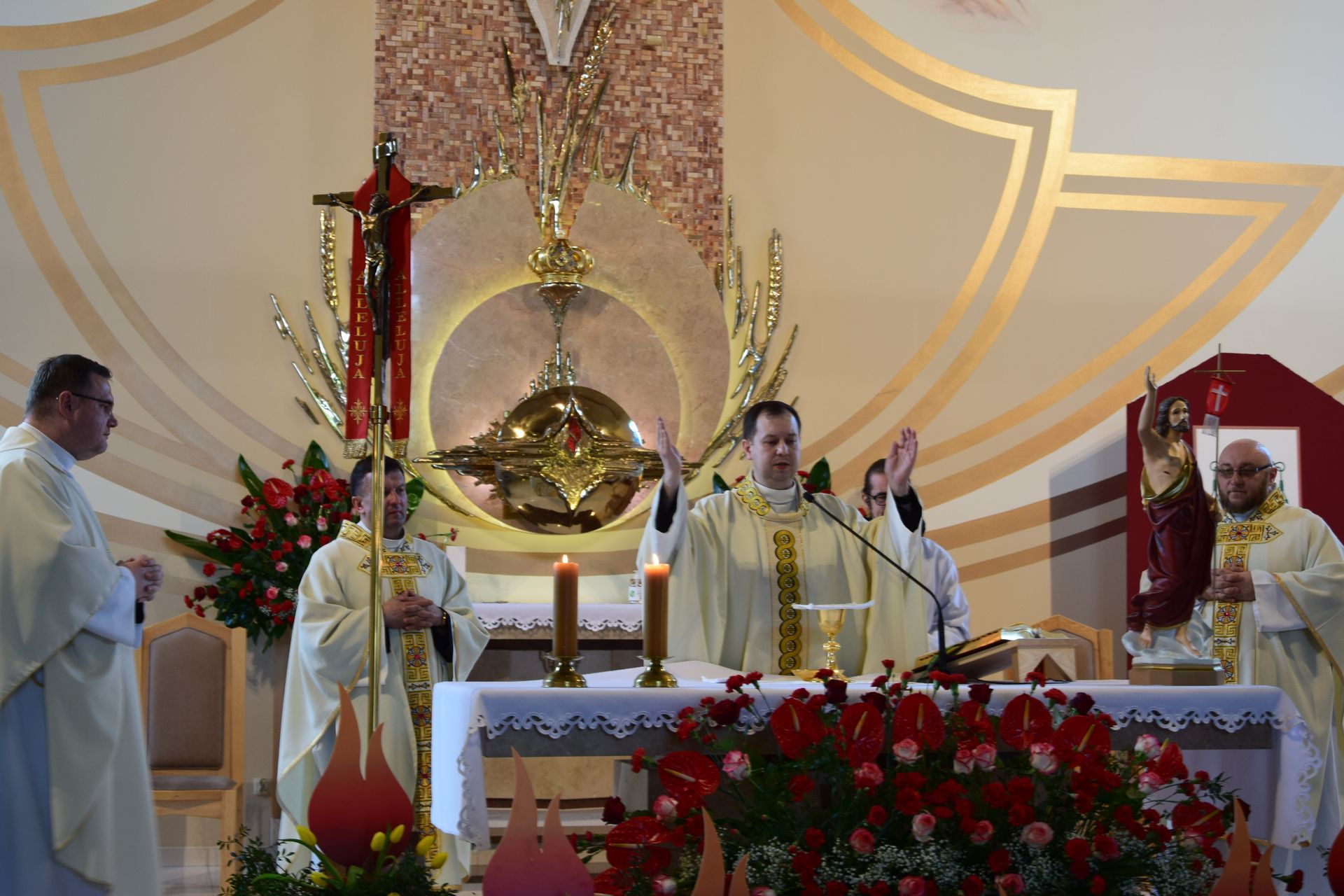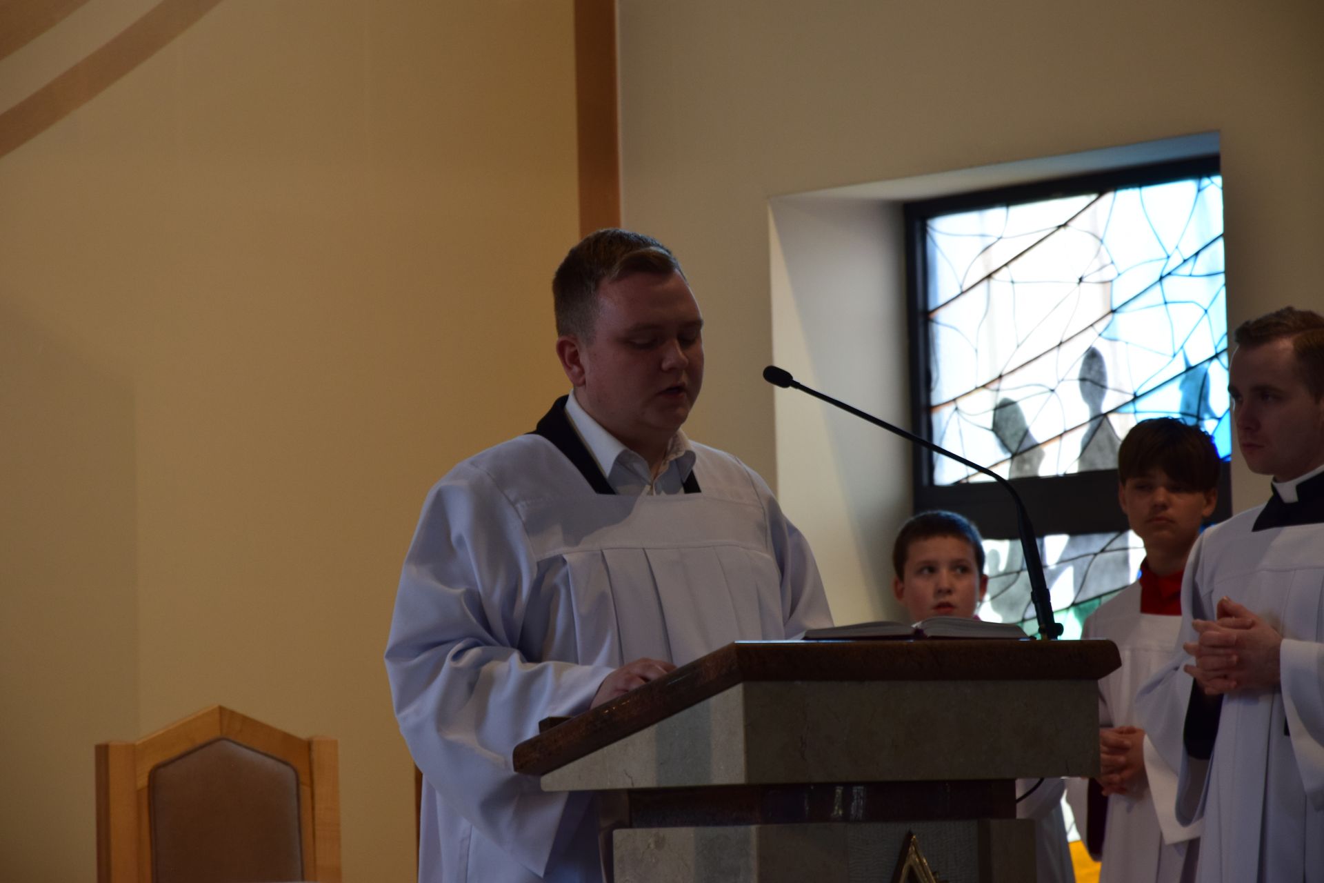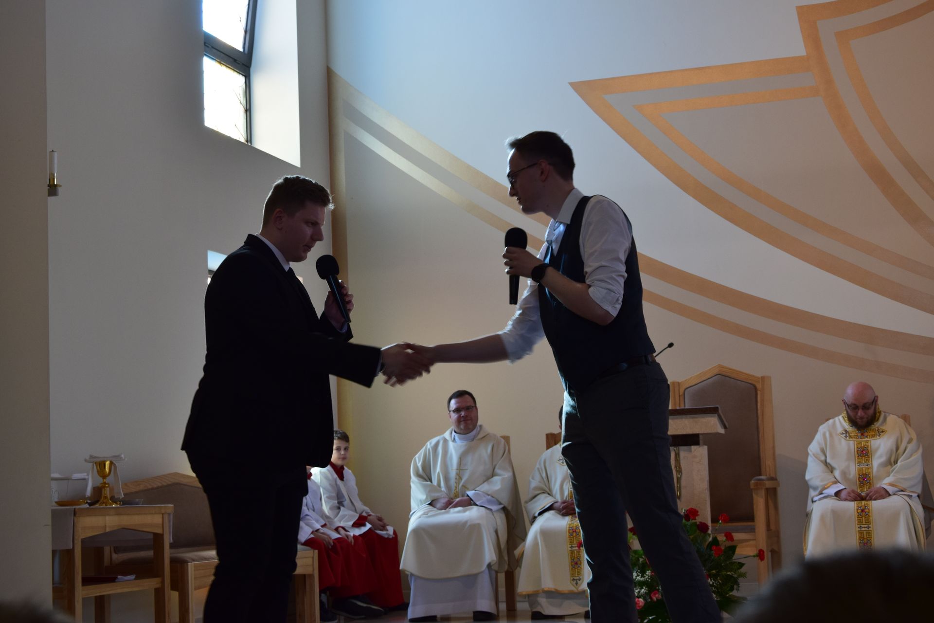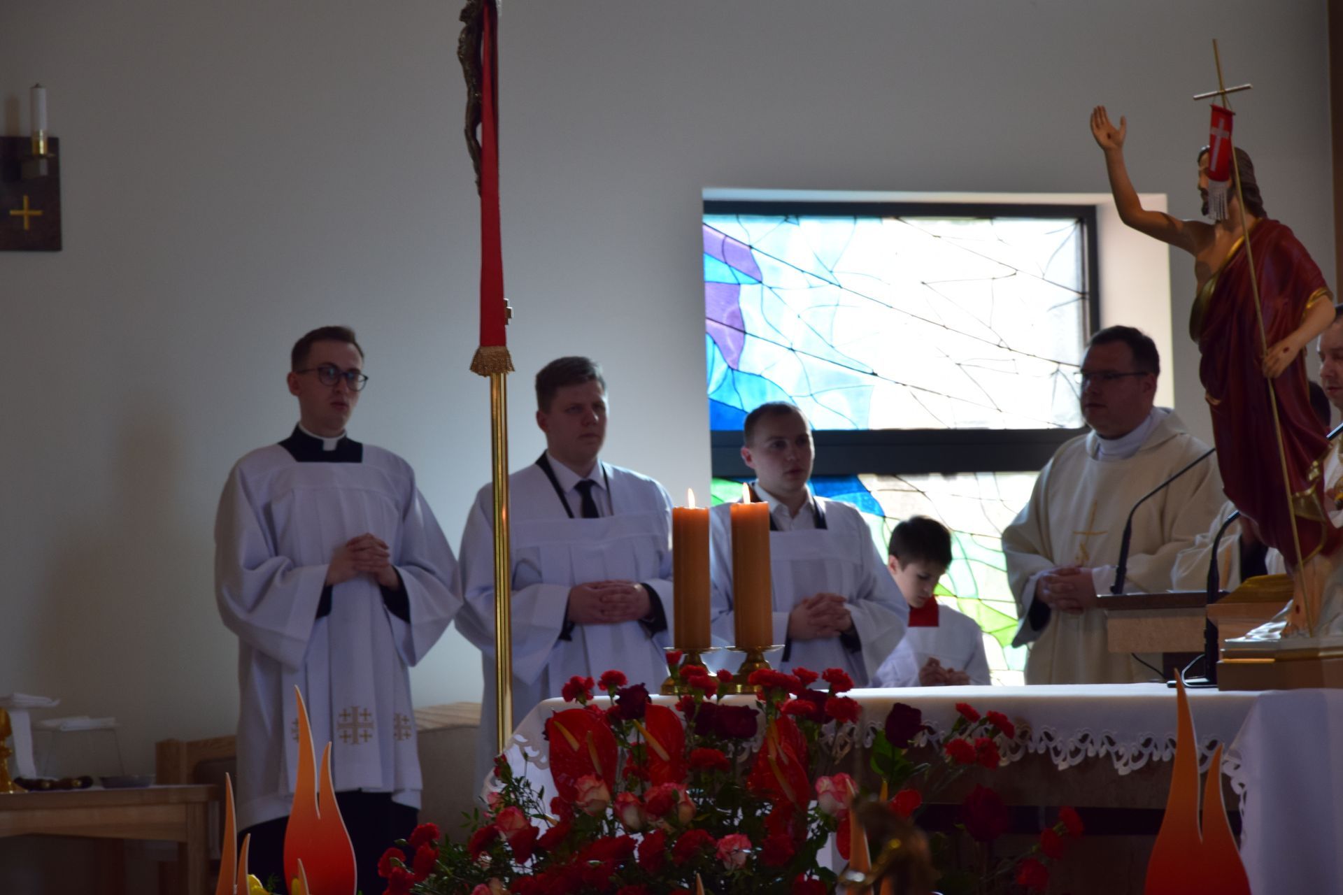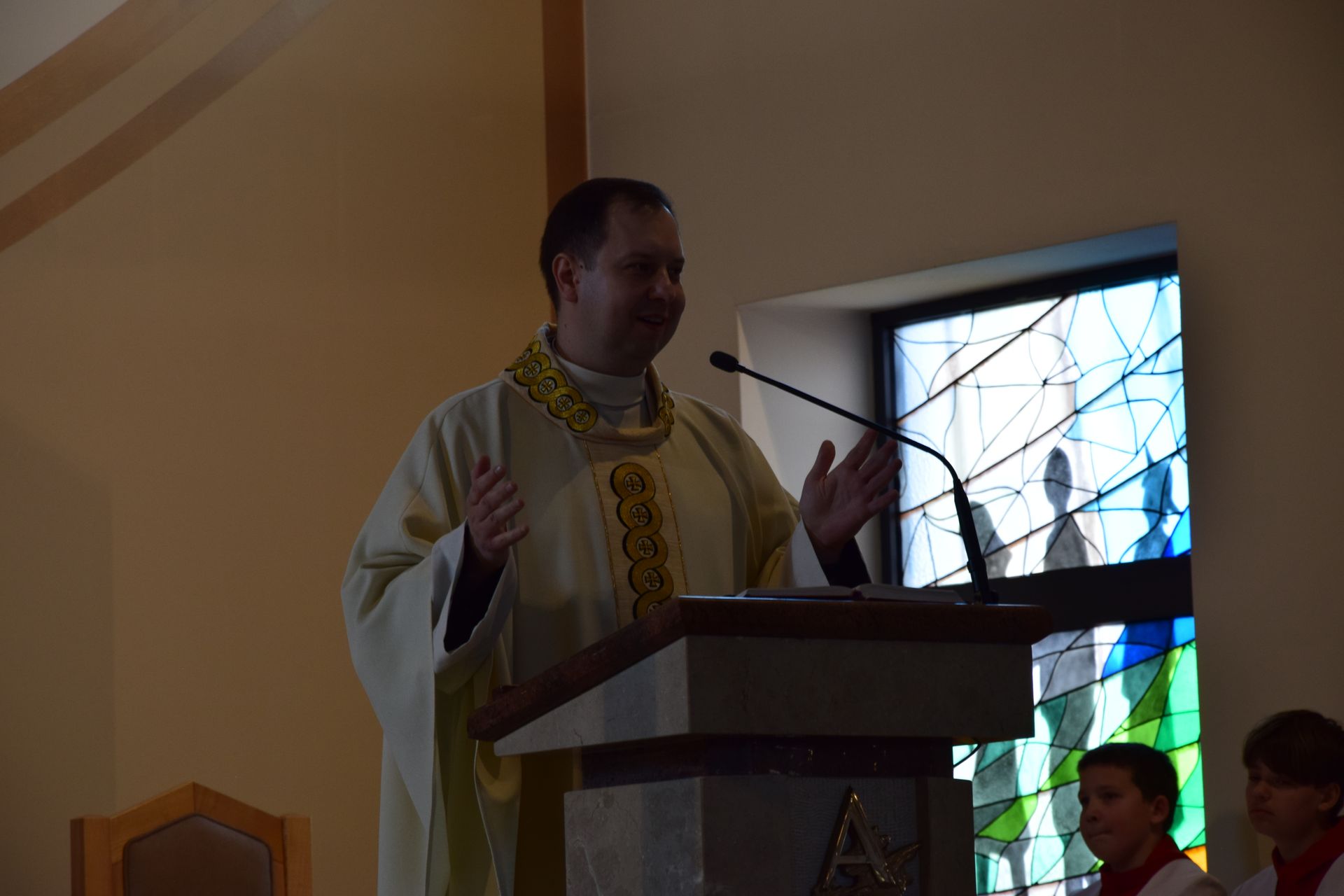 Później przeżyliśmy wspólnie Eucharystię pod przewodnictwem księdza wicerektora Waldemara, w trakcie której koncelebrowali ks. Piotr Kowalek - proboszcz parafii, ks. Łukasz Skworzec - wikariusz a także o. Łukasz. W naszej naszym wspólnym dziękczynieniu brali udział także uczestniczący w spotkaniu chłopcy oraz parafianie i goście w parafii św. Jadwigi.