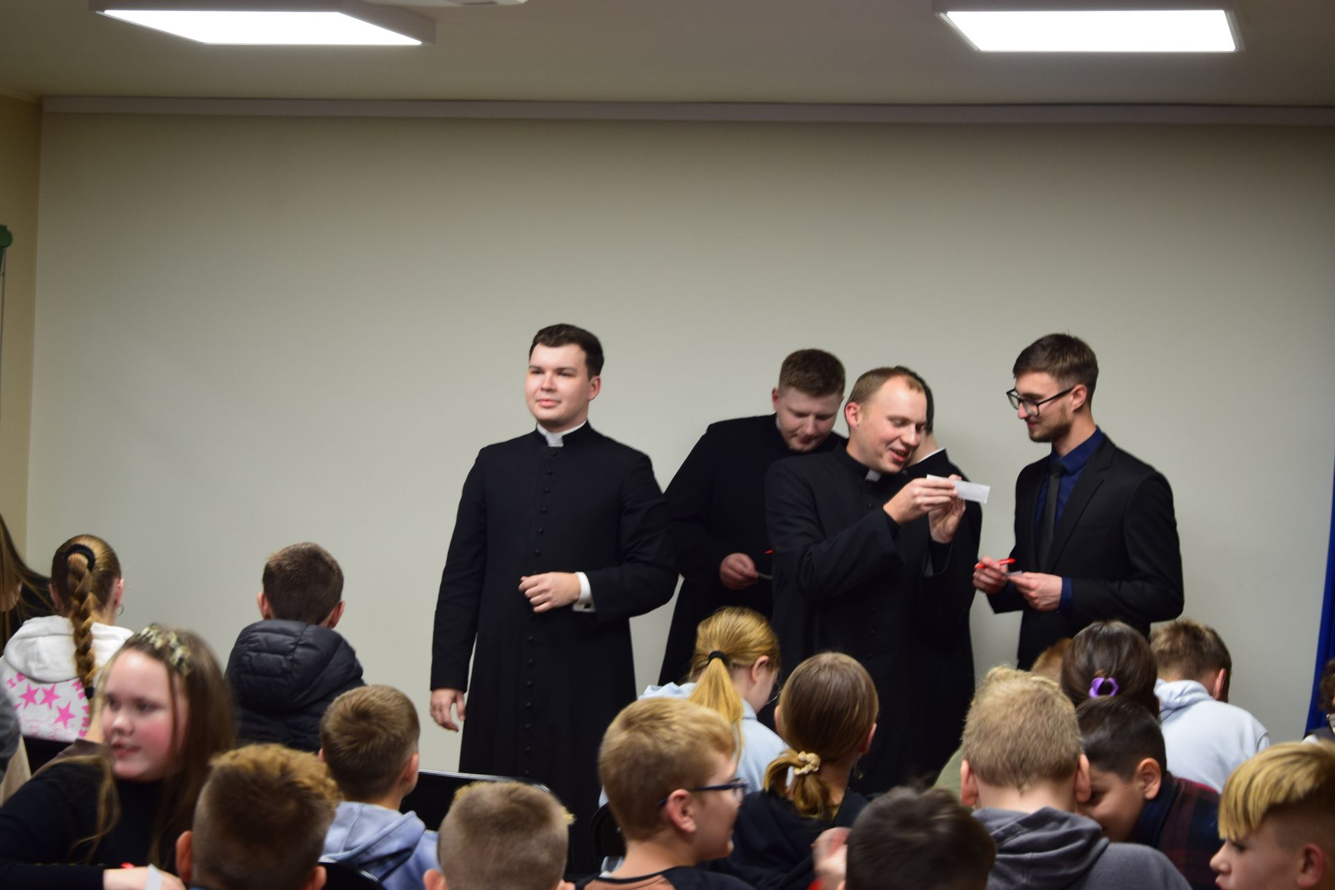 W drugi weekend listopada wybraliśmy się wspólnie na niedzielę powołań, którą mogliśmy przeżywać w dekanacie zdunowskim. Był to dla nas czas spotkania z młodzieżą oraz ministrantami z całego dekanatu, dzielenia się świadectwem swojego powołania, a także spotkania z ludźmi, którzy często nie widzą owoców swojej modlitwy o powołania. Ten wspaniały czas rozpoczęliśmy już w sobotę o godzinie 16.30 w salce parafialnej przy parafii pw. św. Jana Chrzciciela w Zdunach. Tam spotkaliśmy się z młodzieżą. Podczas spotkania miały miejsce integracja, prezentacja o seminarium, a także scenka powołaniowa, którą przygotowaliśmy.