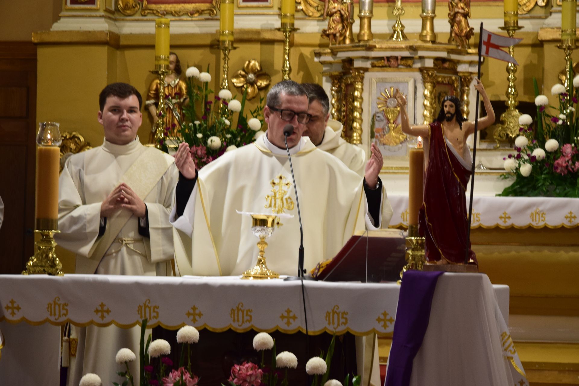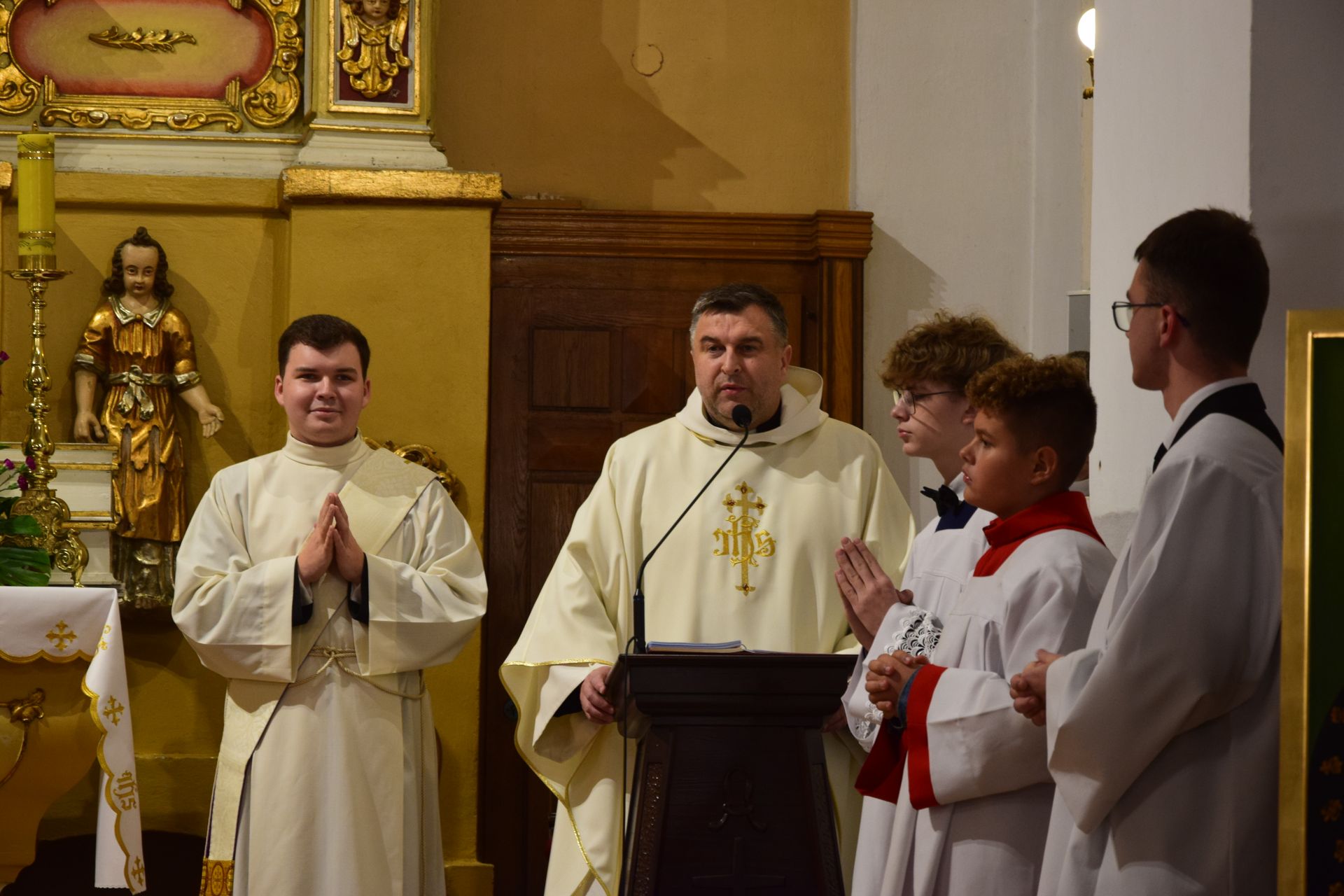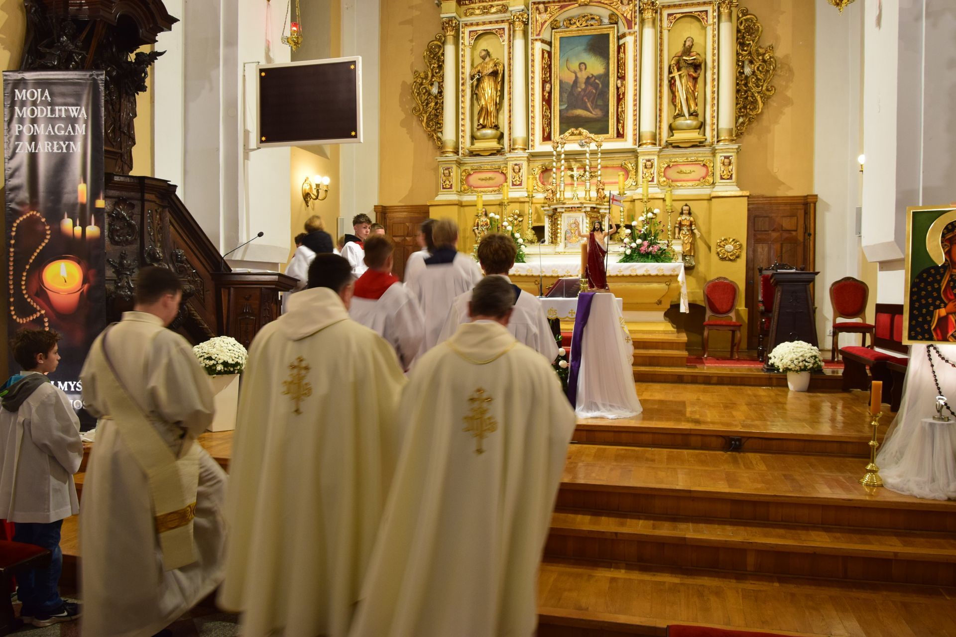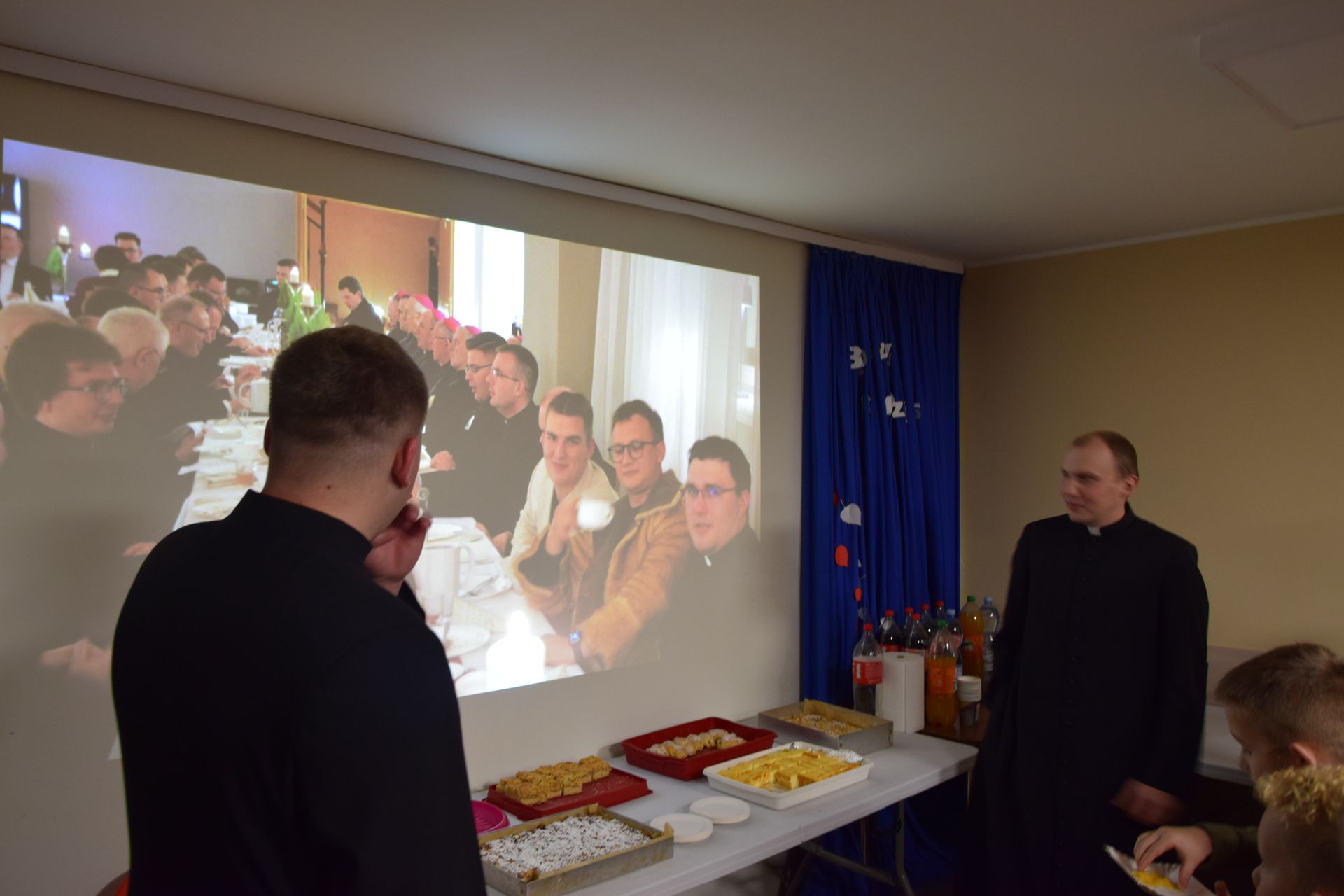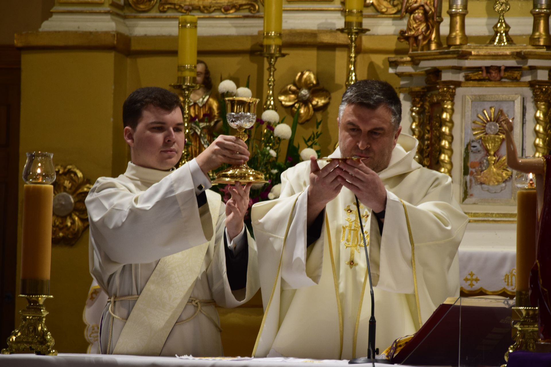 Następnie udaliśmy się do Kościoła na Eucharystię, której przewodniczył tamtejszy proboszcz - ks. Krzysztof Śliczny, a homilię wygłosił dk. Jakub Wasiela, który zastępował nieobecnego na spotkaniu ks. wicerektora Waldemara Graczyka. Całe spotkanie zwieńczyliśmy, wracając do salki parafialnej na wspólny posiłek.