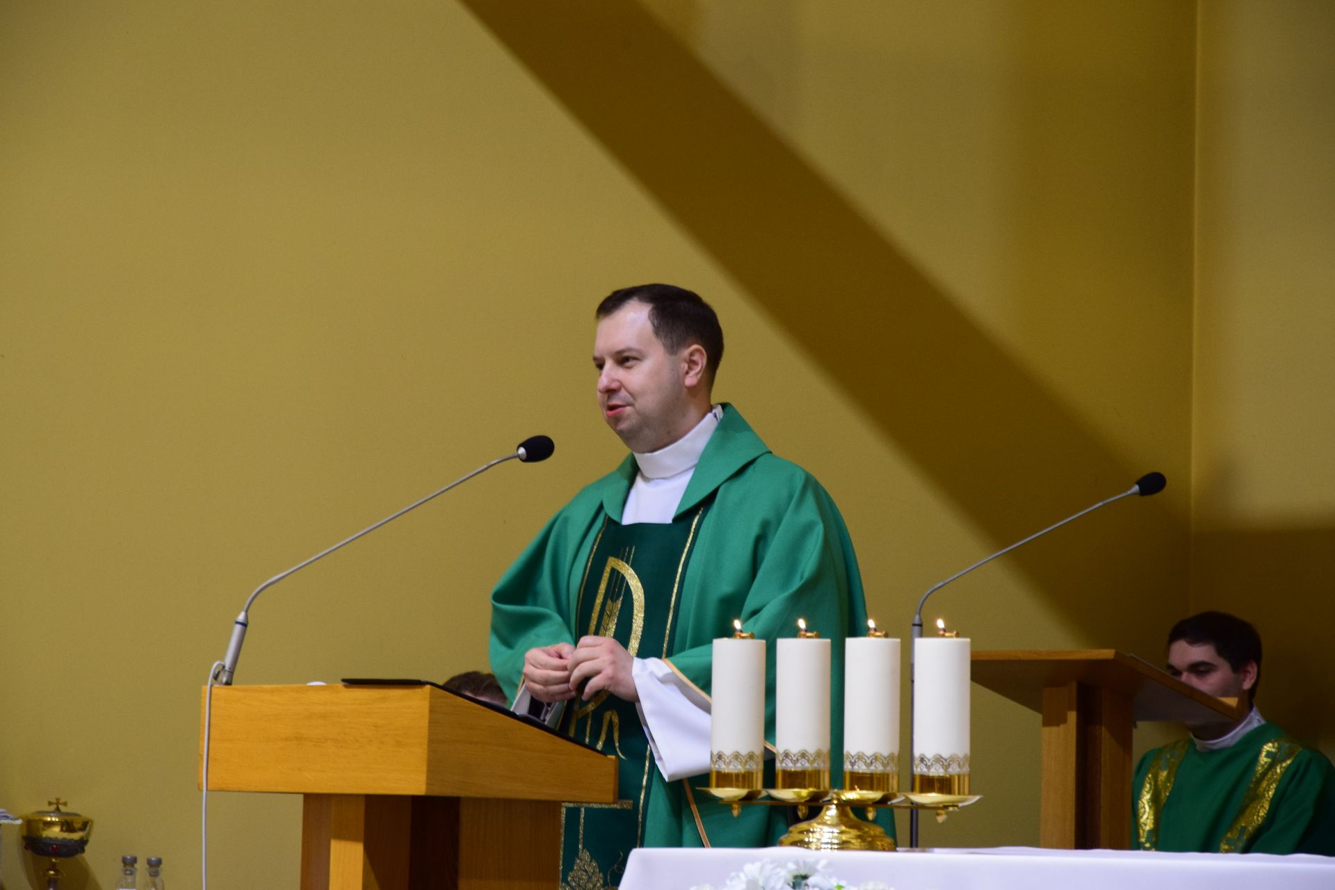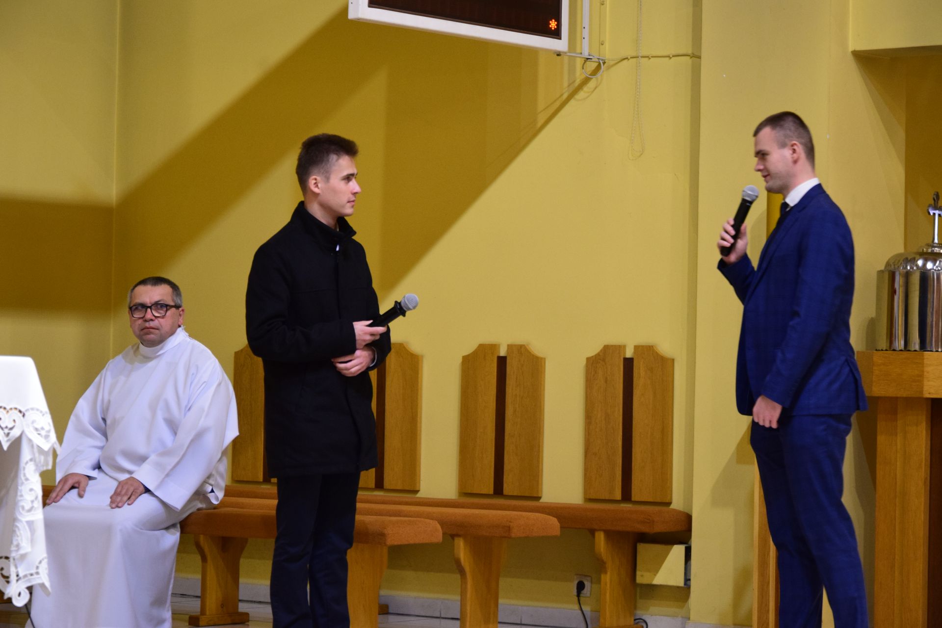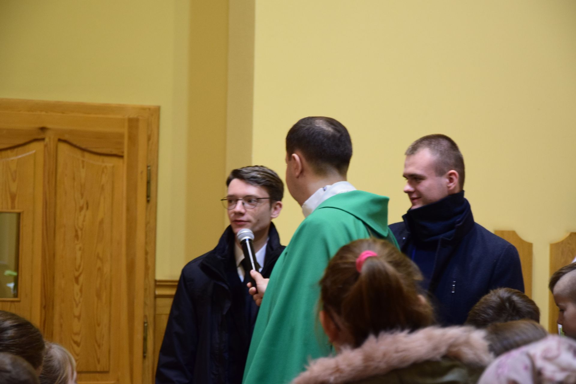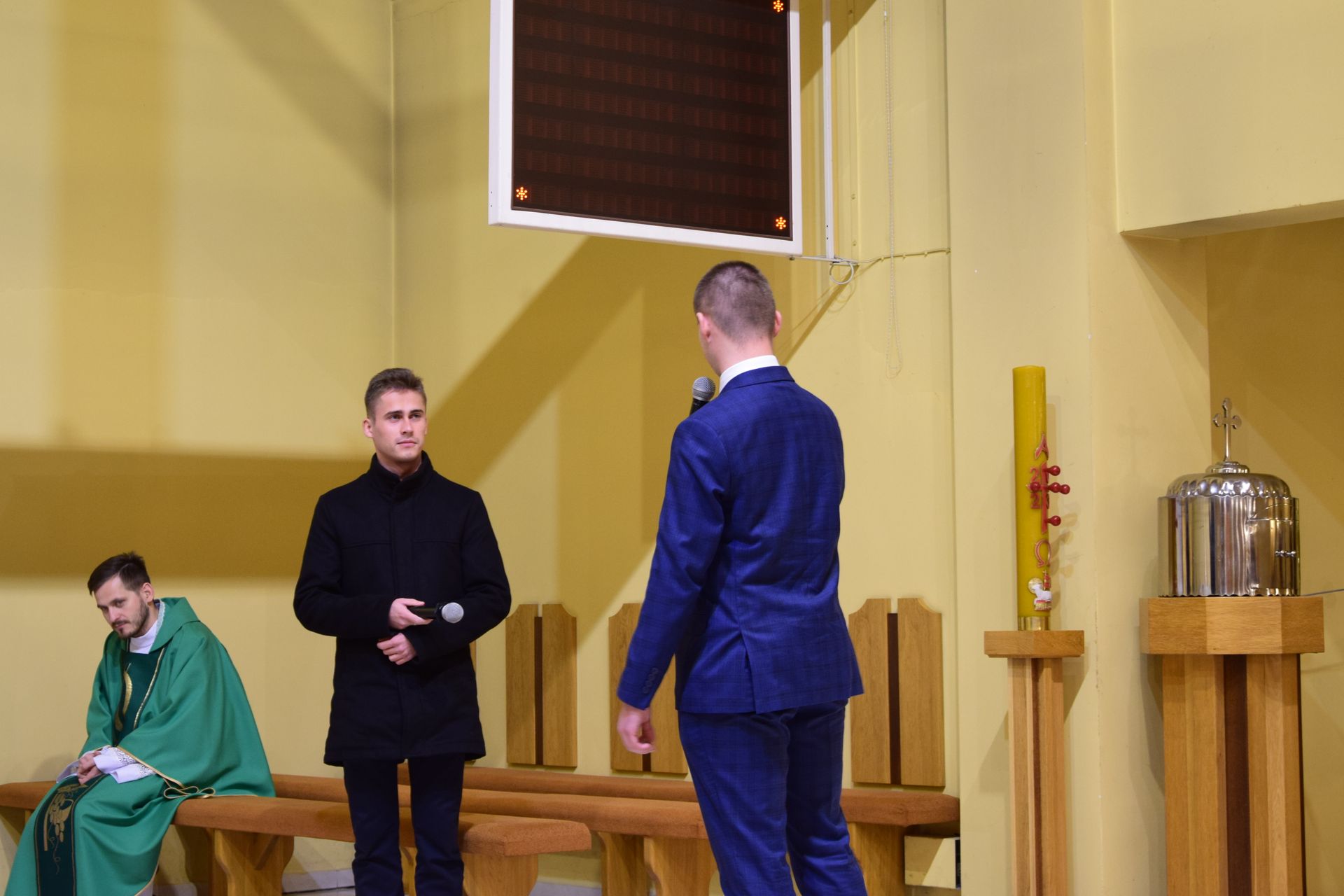 W trakcie Eucharystii modlił się z nami proboszcz parafii - ks. Waldemar Willak, wikariusz - ks. Mariusz Przybylski oraz dk. Patryk, który aktualnie przeżywa w tej parafii praktyki diakońskie. W szeregu homilii opowiadaliśmy zebranym wiernym o tym, jak wygląda historia naszych powołań oraz życie w seminarium.