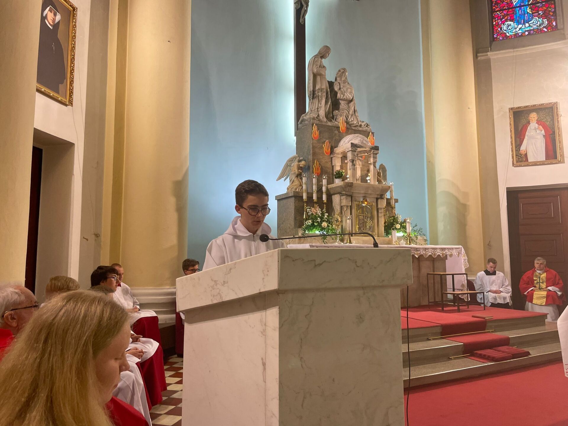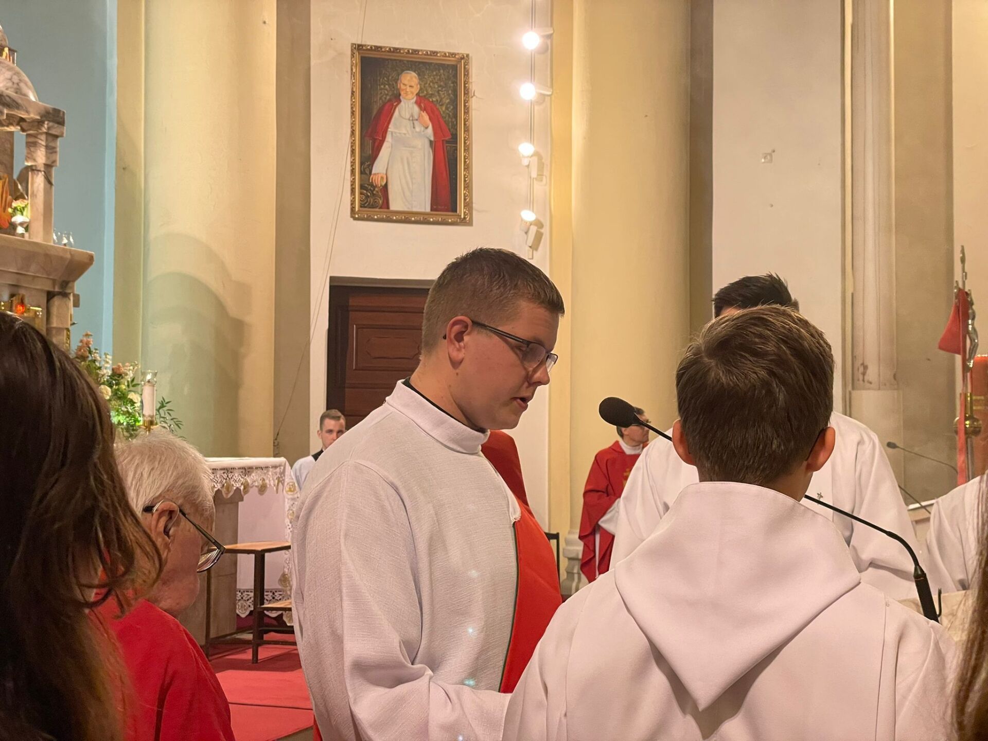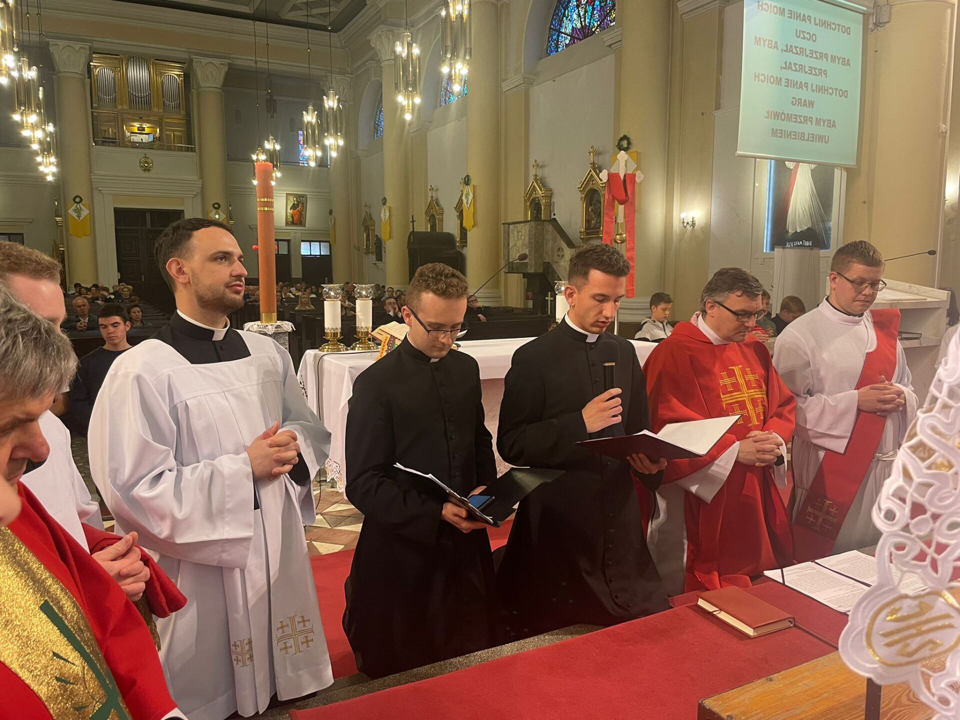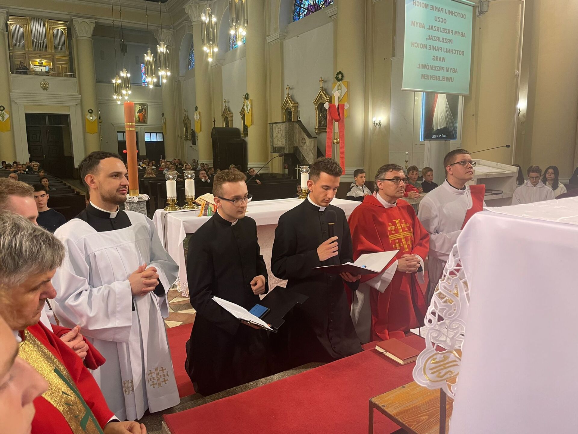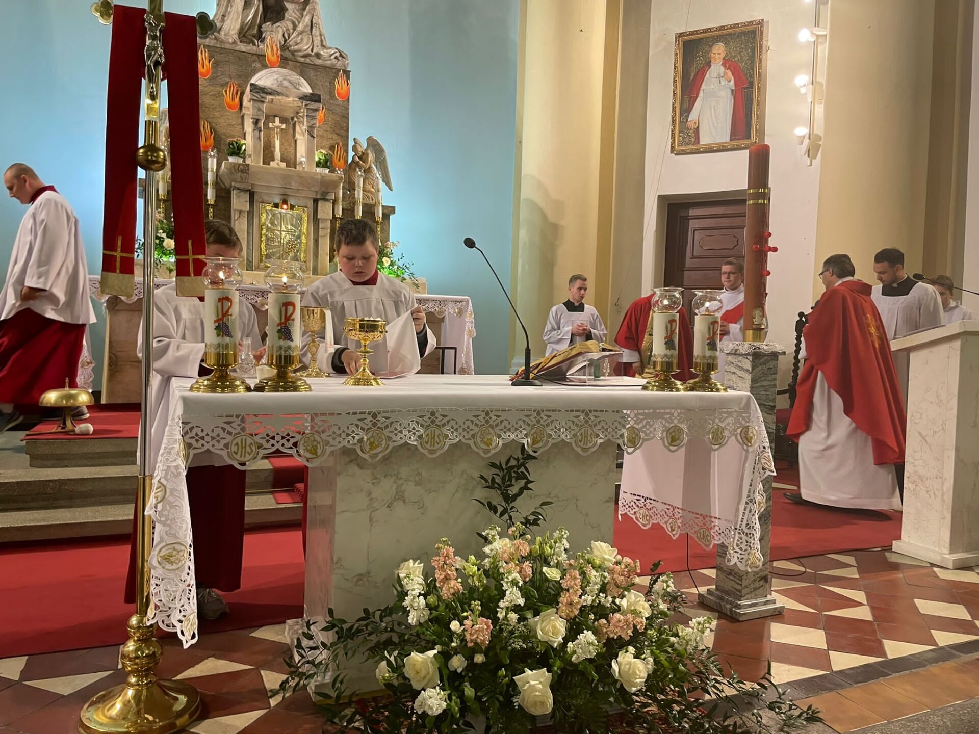 O godz. 17.30 przeżywaliśmy wspólnie z parafianami Eucharystię pod przewodnictwem ojca Łukasza, homilię natomiast wygłosił ks. dr Waldemar Graczyk- wicerektor ASD w Poznaniu. Msza Święta ubogacona była przez ministrancką asystę, która zjechała się z pobliskich parafii. Po zakończonej Eucharystii, pomodliliśmy się przed Najświętszym Sakramentem powierzając Panu Bogu sprawę nowych powołań do służby w Kościele.