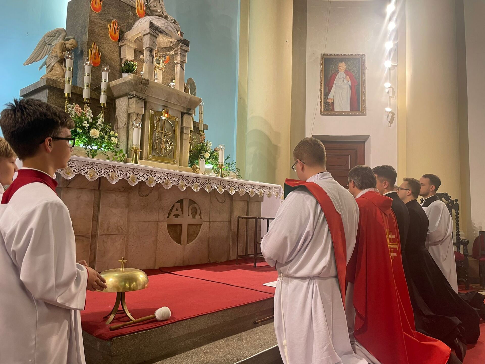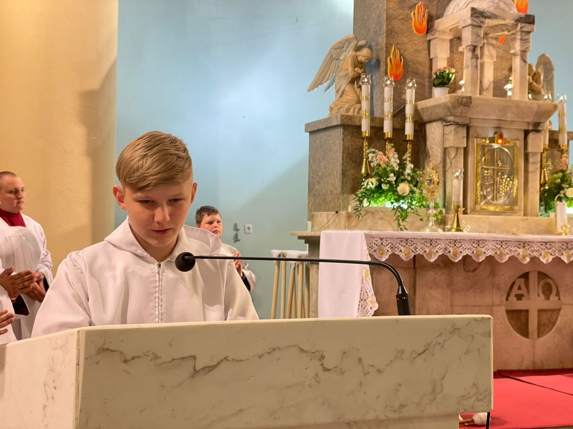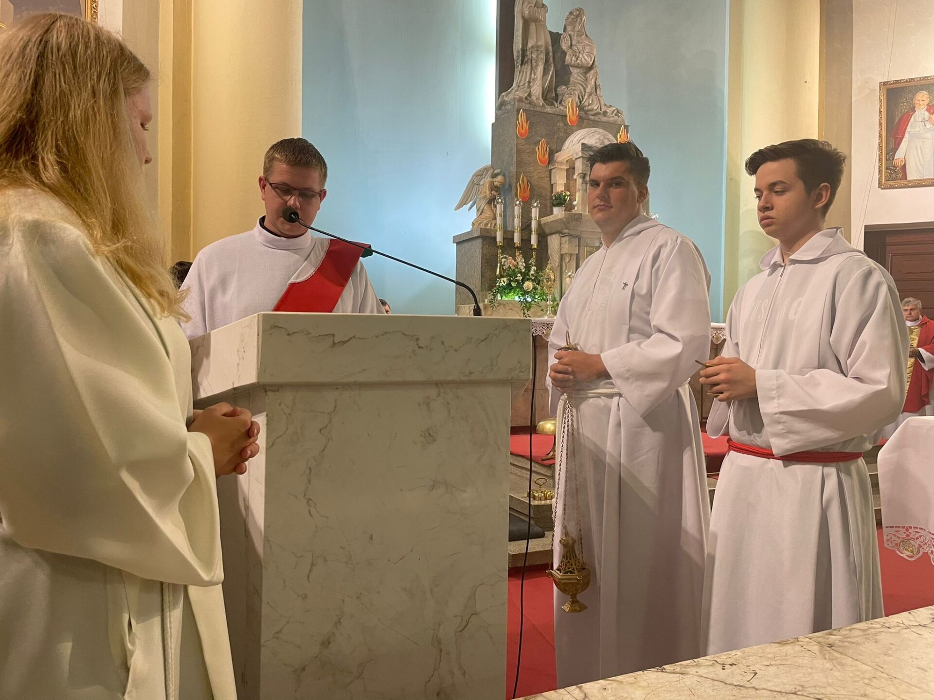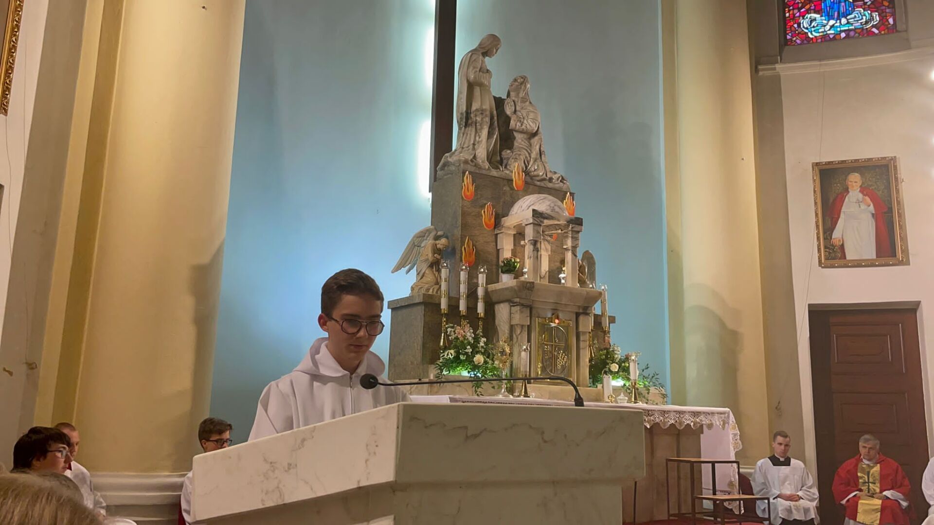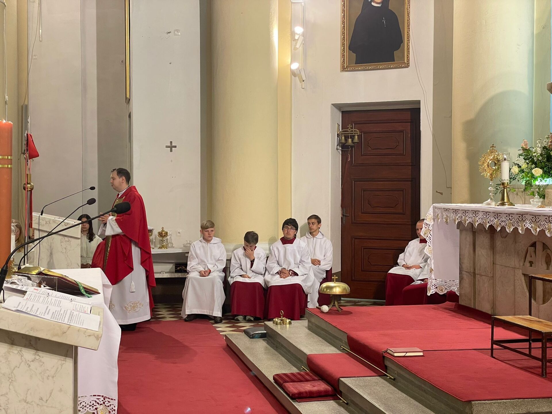 O godz. 17.30 przeżywaliśmy wspólnie z parafianami Eucharystię pod przewodnictwem ojca Łukasza, homilię natomiast wygłosił ks. dr Waldemar Graczyk- wicerektor ASD w Poznaniu. Msza Święta ubogacona była przez ministrancką asystę, która zjechała się z pobliskich parafii. Po zakończonej Eucharystii, pomodliliśmy się przed Najświętszym Sakramentem powierzając Panu Bogu sprawę nowych powołań do służby w Kościele.