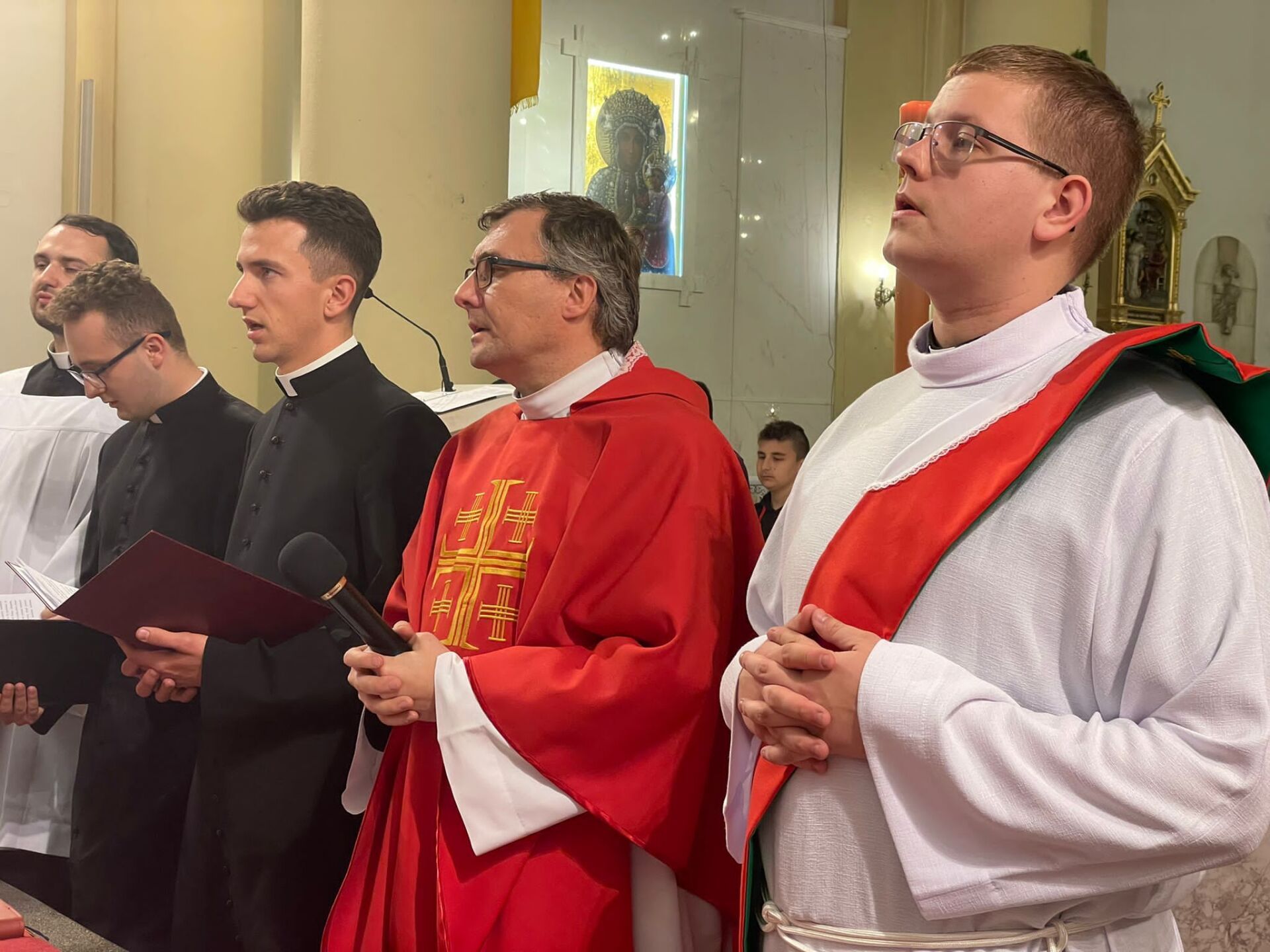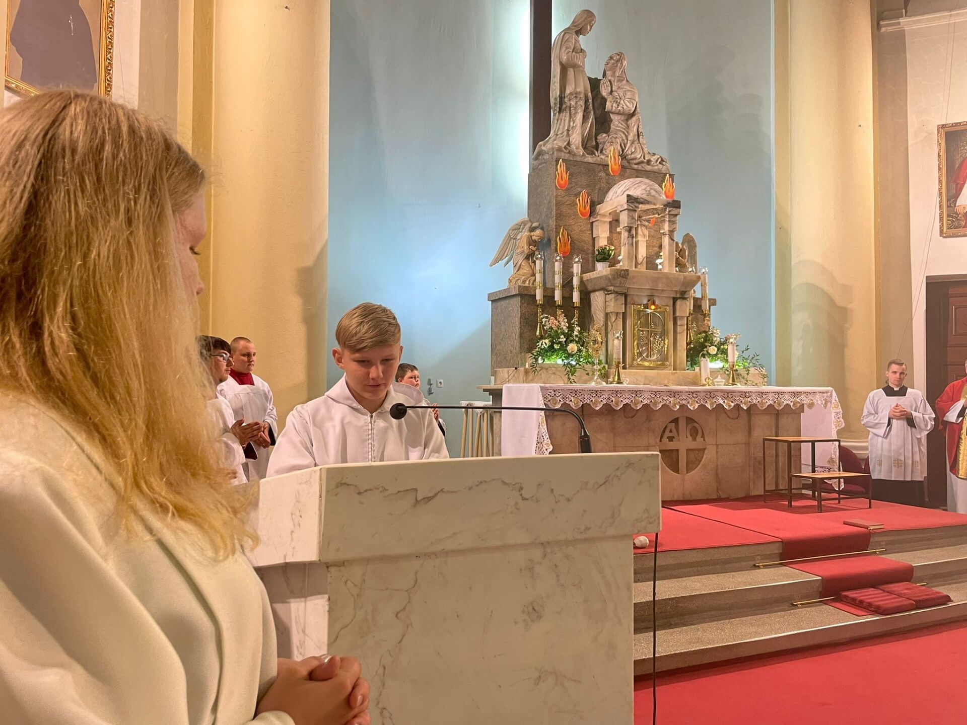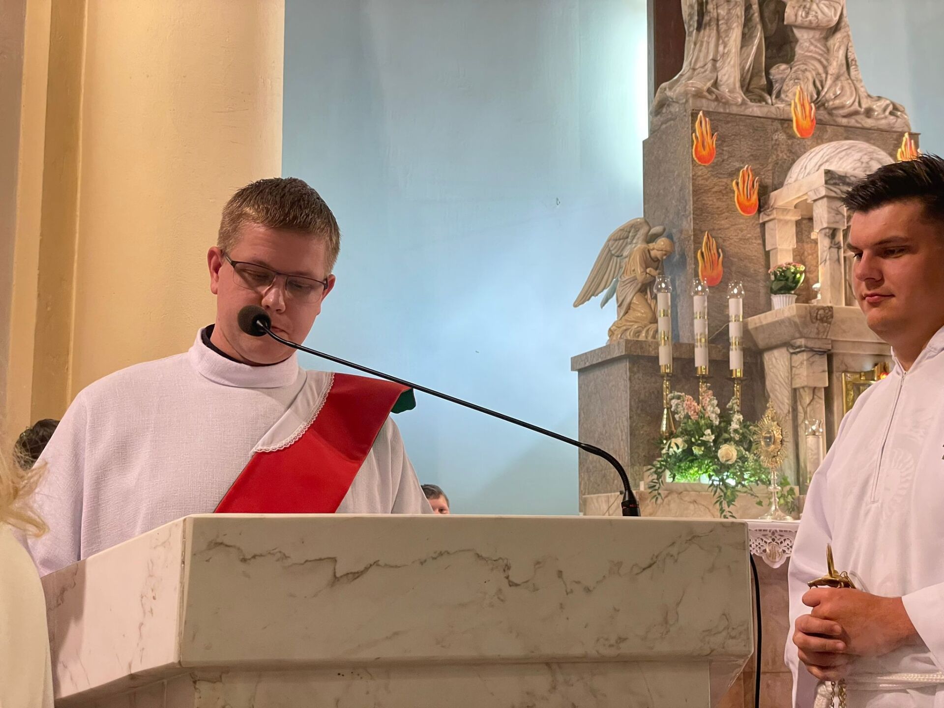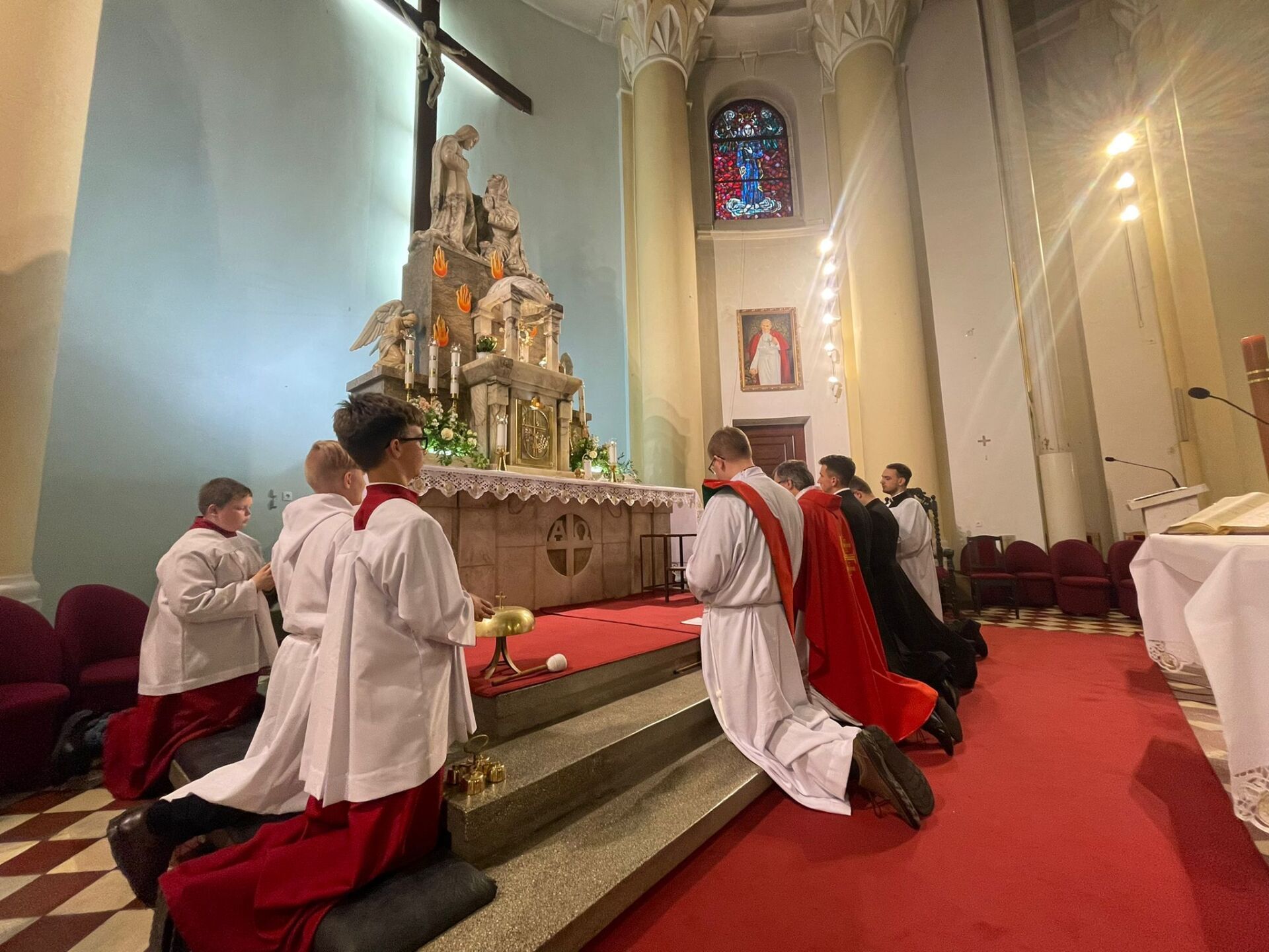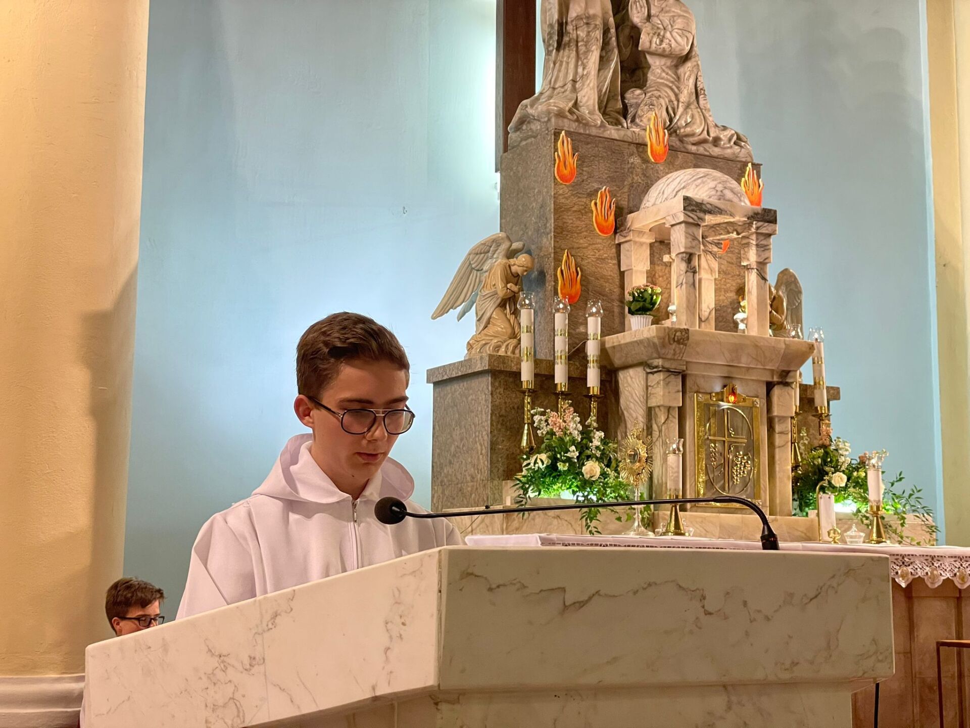 O godz. 17.30 przeżywaliśmy wspólnie z parafianami Eucharystię pod przewodnictwem ojca Łukasza, homilię natomiast wygłosił ks. dr Waldemar Graczyk- wicerektor ASD w Poznaniu. Msza Święta ubogacona była przez ministrancką asystę, która zjechała się z pobliskich parafii. Po zakończonej Eucharystii, pomodliliśmy się przed Najświętszym Sakramentem powierzając Panu Bogu sprawę nowych powołań do służby w Kościele.