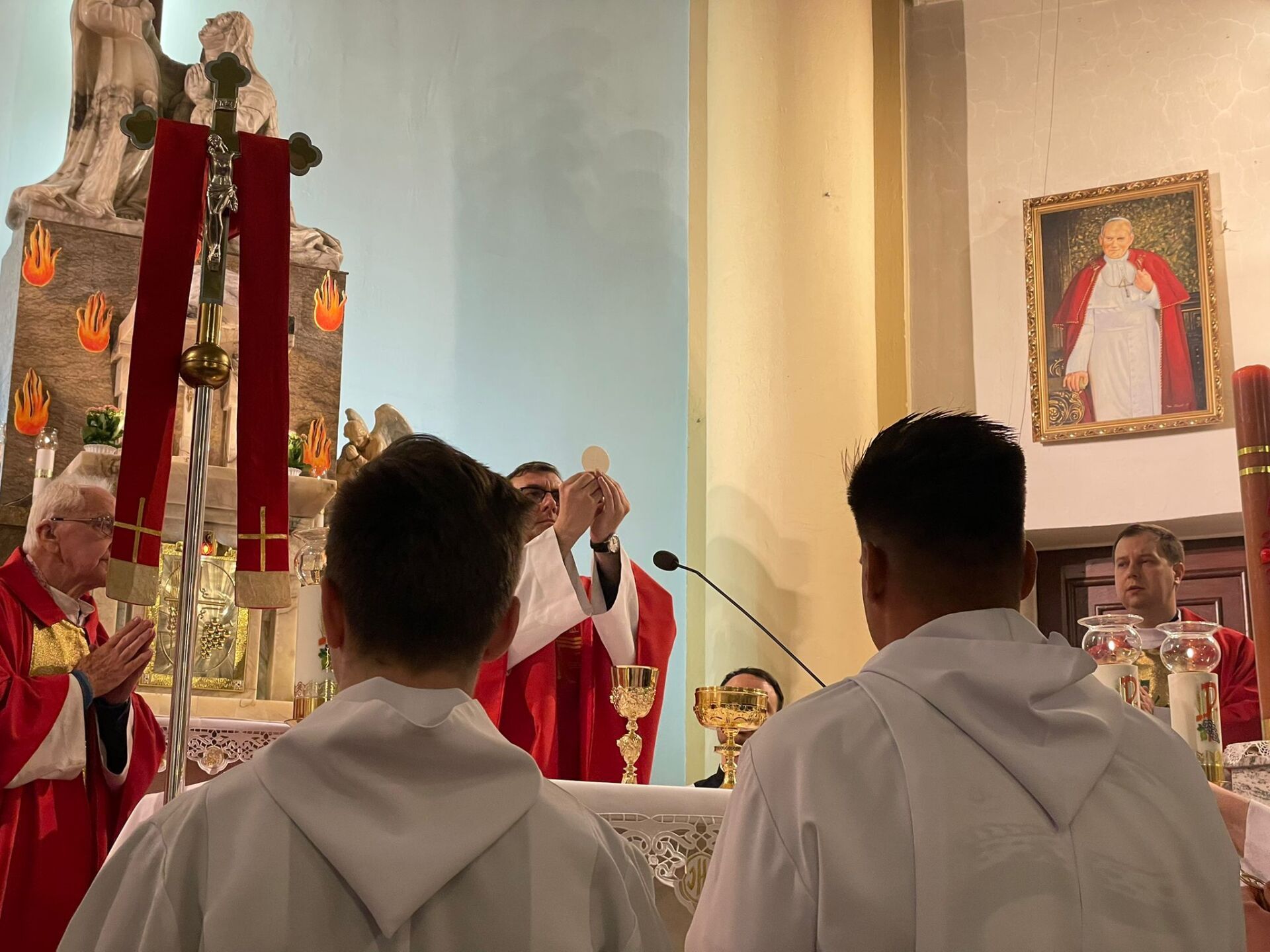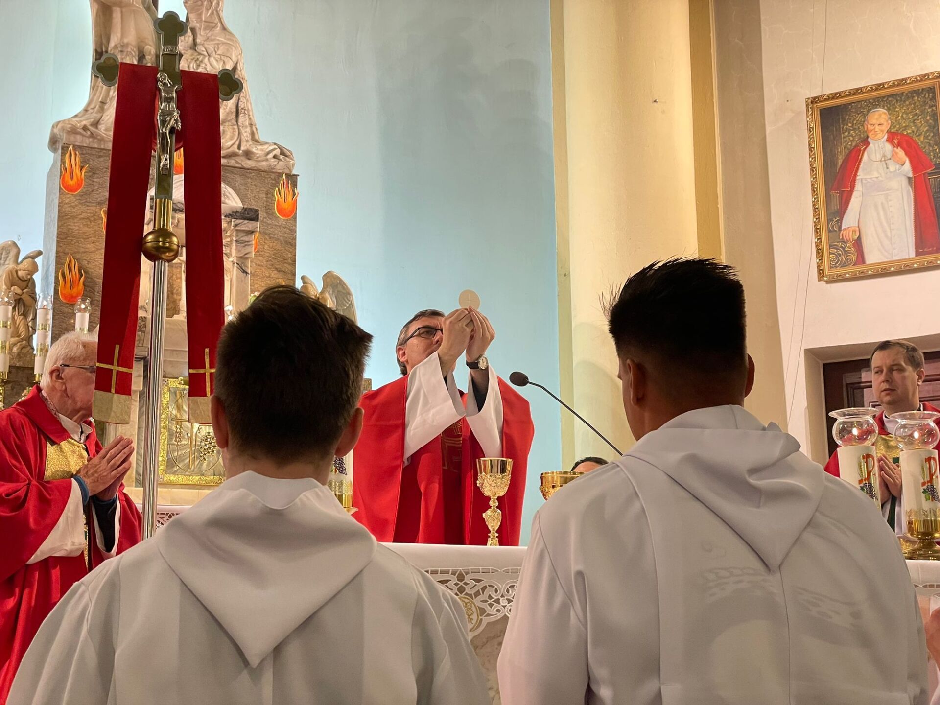 4 czerwca 2022r. nasza wspólnota seminaryjna udała się do parafii Nawiedzenia NMP w Wieruszowie. Było to miejsce zbiorcze, ponieważ przed Eucharystią, spotkaliśmy się tam z młodzieżą, która jest w trakcie rozeznawania swojej życiowej drogi.
