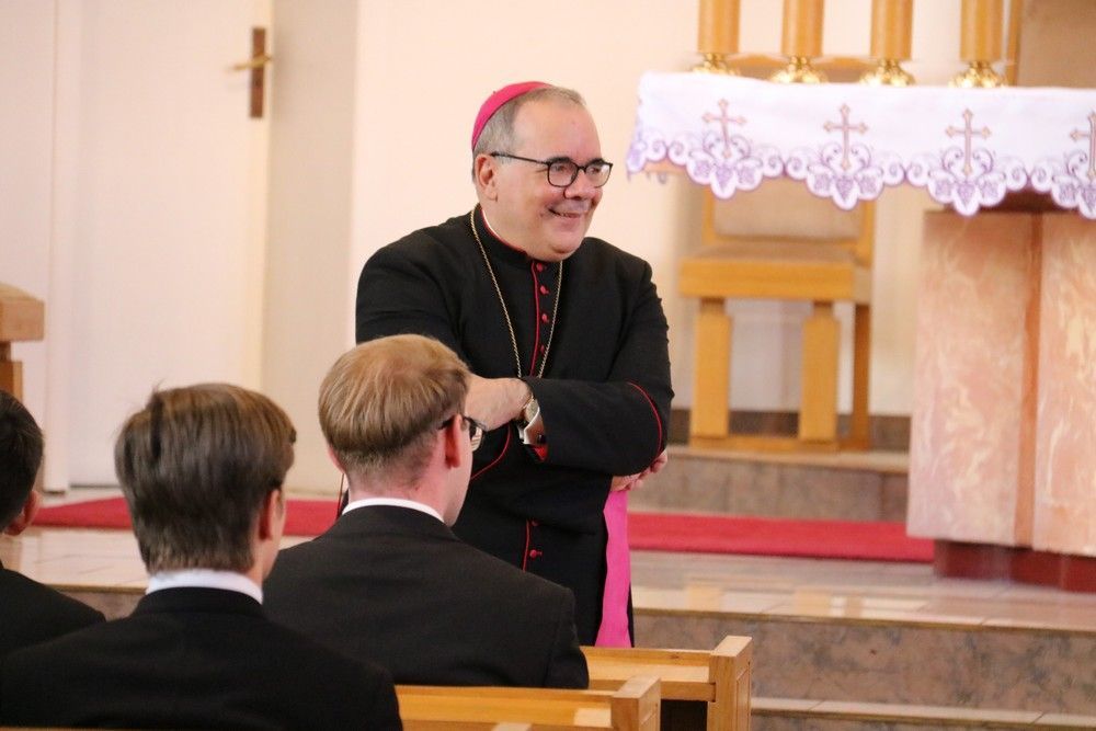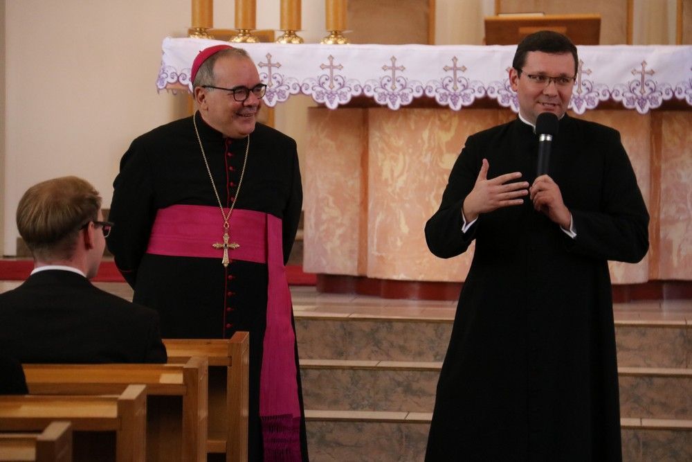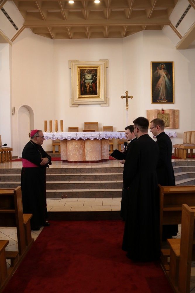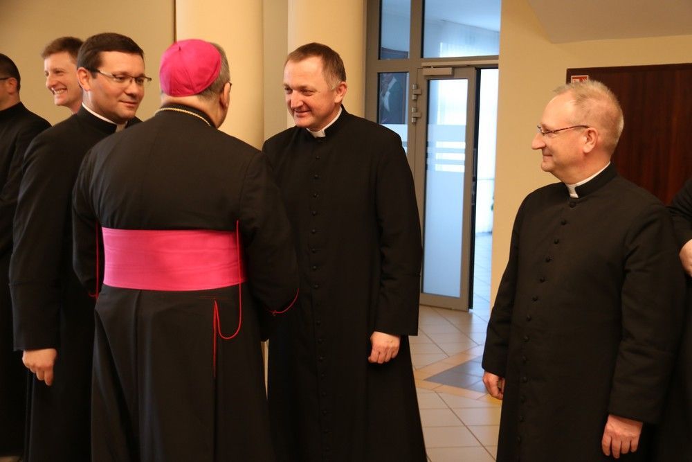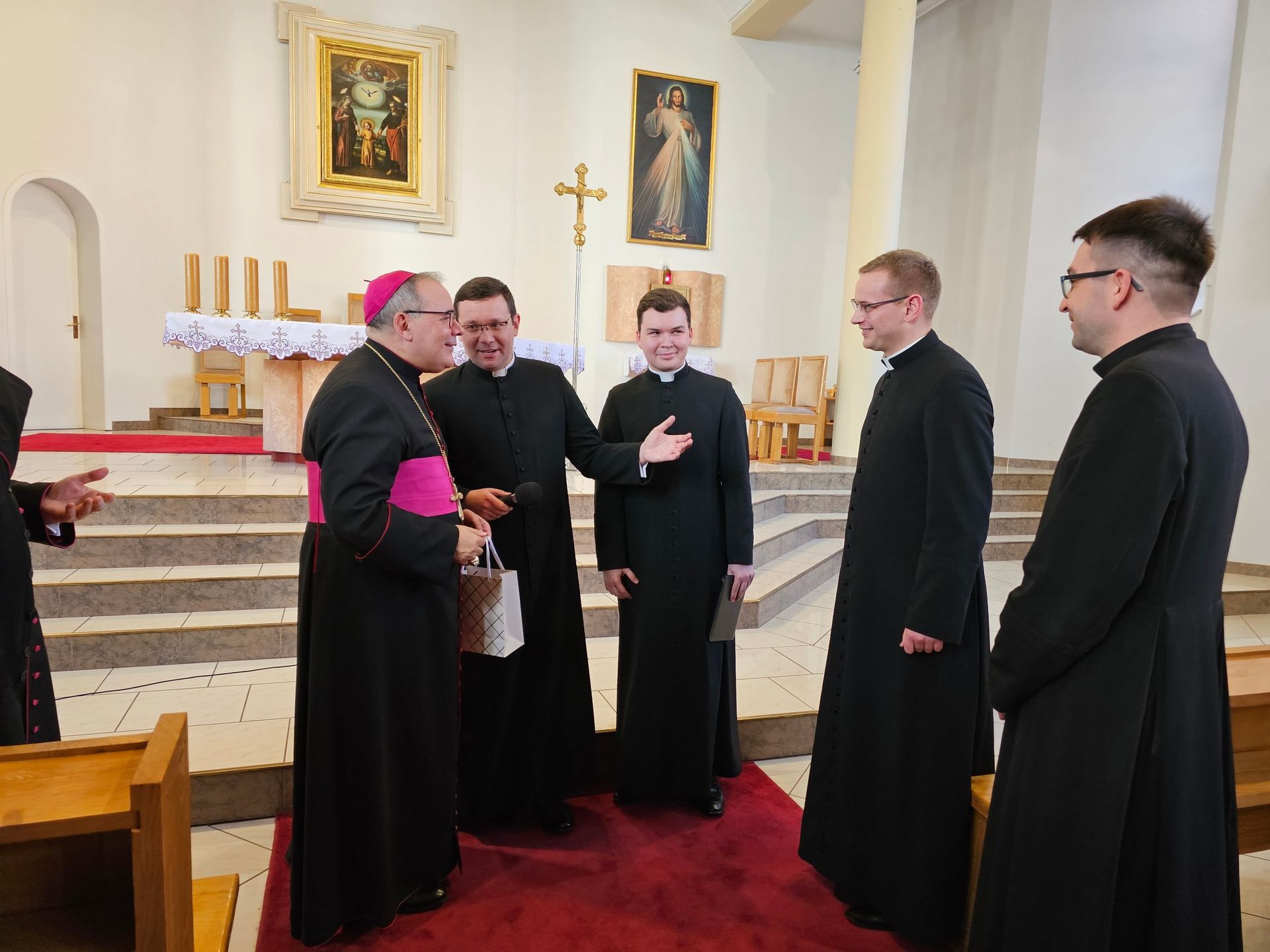 Po zakończonej Eucharystii udaliśmy się do Wyższego Seminarium Duchownego, aby zjeść obiad, a następnie odbyliśmy spotkanie z Nuncjuszem - abp Antonio Guido Filipazzim. Zanim spotkał się on z nami, zwiedził również kilka innych miejsc w Kaliszu ważnych dla naszej diecezji, po czym przyjechał do seminarium. Ksiądz rektor przedstawił naszą wspólnotę Nuncjuszowi, a następnie przedstawiciel Ojca Świętego Franciszka w Polsce skierował do nas słowa umocnienia na drodze powołania.