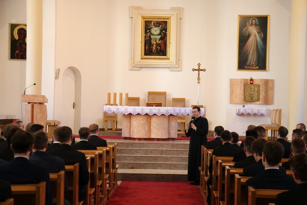 W dniach 11-12 października mieliśmy okazję przebywać na terenie dekanatu raszkowskiego w ramach niedzieli powołań. Była to dla nas okazja, aby podzielić się z innymi świadectwem naszego powołania oraz porozmawiać o seminarium i nie tylko. Niedzielę powołań rozpoczęliśmy w sobotę o godzinie 17.00 podczas spotkania z ministrantami oraz młodzieżą w Starej Oborze przy parafii pw. Zwiastowania Pańskiego w Skrzebowej. W trakcie spotkania mogliśmy lepiej się poznać poprzez integrację i liturgię. Była okazja do wysłuchania świadectwa jednego z nas, obejrzenia przygotowanej scenki oraz posłuchania o seminarium - jak wygląda i czym jest. Po zakończeniu pierwszej części spotkania, przeszliśmy do kościoła, gdzie wspólnie modliliśmy się na Eucharystii. Mszy świętej przewodniczył tamtejszy proboszcz - ks. Aleksander Piekielny, a homilię wygłosił ks. wicerektor Waldemar Graczyk. Po zakończonej modlitwie wróciliśmy do Starej Obory, gdzie już czekał przygotowany dla nas grill. Była to świetna okazja do różnego rodzaju rozmów i opowiedzenia, jak nam się żyje w seminarium. Na następny dzień nasi bracia udali się parafii dekanatu raszkowskiego, aby wygłaszać swoje świadectwa powołań: 1. Parafia Niepokalanego Serca Maryi , Roszki 2. Parafia Podwyższenia Krzyża Świętego , Raszków 3. Parafia Zwiastowania Pańskiego , Skrzebowa 4. Parafia św. Katarzyny Aleksandryjskiej , Pogrzybów 5. Parafia św. Mateusza , Górzno 6. Parafia św. Michała Archanioła , Szczury 7. Parafia św. Wojciecha , Janków Zaleśny 8. Parafia św. Wojciecha , Lewków Dziękujemy wszystkim proboszczom z dekanatu raszkowskiego za tak miłe przyjęcie i ugoszczenie nas w swoich parafiach. Szczególnie podziękowania pragniemy przekazać ks. Aleksandrowi Piekielnemu oraz Kołu Gospodyń Wiejskich Moszczanka-Skrzebowa działającym przy parafii Skrzebowa za zorganizowanie spotkania dla ministrantów i młodzieży z całego dekanatu. Pragniemy również prosić o modlitwę w intencji tej niedzieli powołań, aby przyniosła dobre owoce w życiu ludzi, których na niej spotkaliśmy.