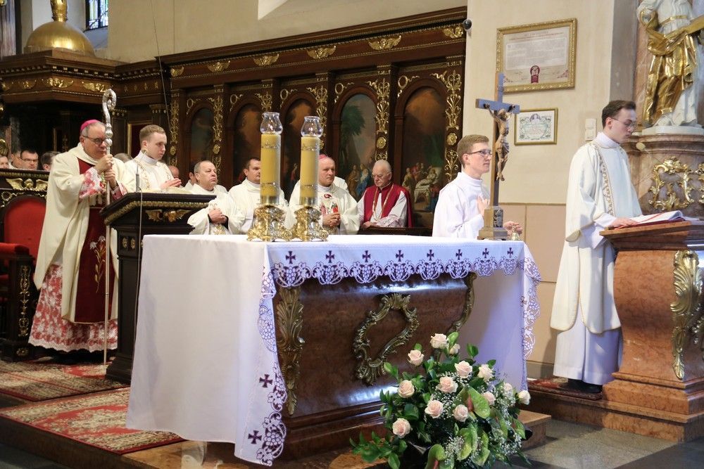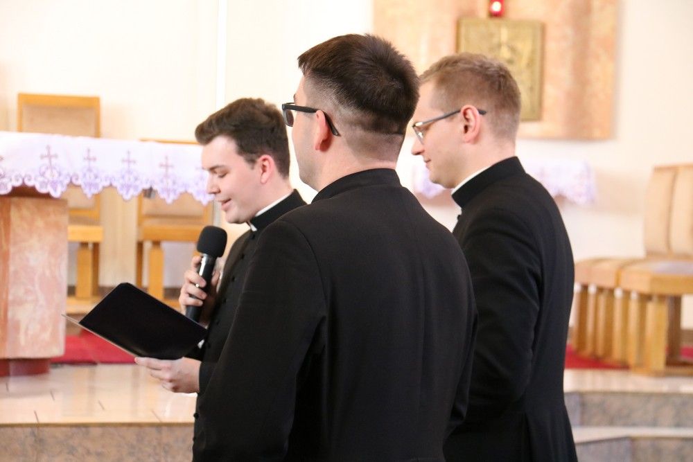 26 października w XXX Niedzielę Zwykłą mieliśmy okazję przeżywać bardzo ważny dzień dla braci z kursu III i Jakuba z kursu IV, którzy wobec Kościoła wyrazili swoją gotowość do przygotowania się do święceń diakonatu i prezbiteratu oraz kształtowania swojego życia w duchu wiernej służby Chrystusowi i Jego Kościołowi, a wypowiadając swoje "Chcę" zostali włączeni do grona kandydatów do święceń diakonatu i prezbiteratu. Zewnętrznym wyrazem ich gotowości są obłóczyny, czyli przyjęcie stroju duchownego, którym jest sutanna. W gronie 13 kleryków znalazło się 3 braci z diecezji kaliskiej - kl. Mikołaj, kl. Marcel oraz kl. Piotr. Dzisiejszą uroczystość rozpoczęliśmy poranną jutrznią, której przewodniczył ks. dr Jan Frąckowiak - rektor Arcybiskupiego Seminarium Duchownego w Poznaniu. Wygłosił także homilię, w której wytłumaczył jak ważna jest dzisiejsza decyzja braci przeżywających swoją kandydaturę i obłóczyny. Powiedział, że: Wasze "jestem", które dzisiaj wypowiecie ma być tym samym "jestem", które wypowiecie, gdy biskup wyśle was na pierwszą parafię i które będziecie wypowiadać przez całe swoje życie. Eucharystii, podczas której nasi bracia przyjęli kandydaturę i obłóczyny, przewodniczył JE bp Grzegorz Balcerek - biskup pomocniczy archidiecezji poznańskiej. Wraz z nim we wspólnej modlitwie towarzyszyli nam również księża moderatorzy oraz księża proboszczowie, rodziny i bliscy braci, których uroczystość obchodziliśmy. Po zakończonej Eucharystii, na II piętrze miała miejsce nasza seminaryjna tradycja, którą jest "przyklepanie sutanny", a następnie wszyscy udaliśmy się na refektarz, aby wraz z braćmi z kursu III oraz Jakubem z kursu IV radować się tym ważnym dla nich dniem. Zdjęcia za: Arcybiskupie Seminarium Duchowne w Poznaniu