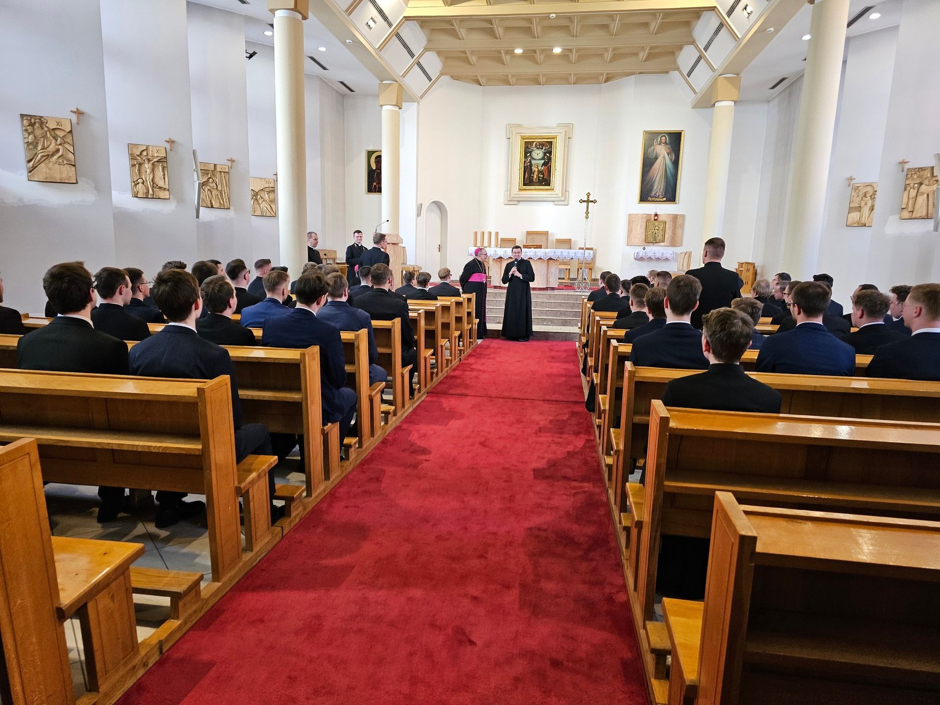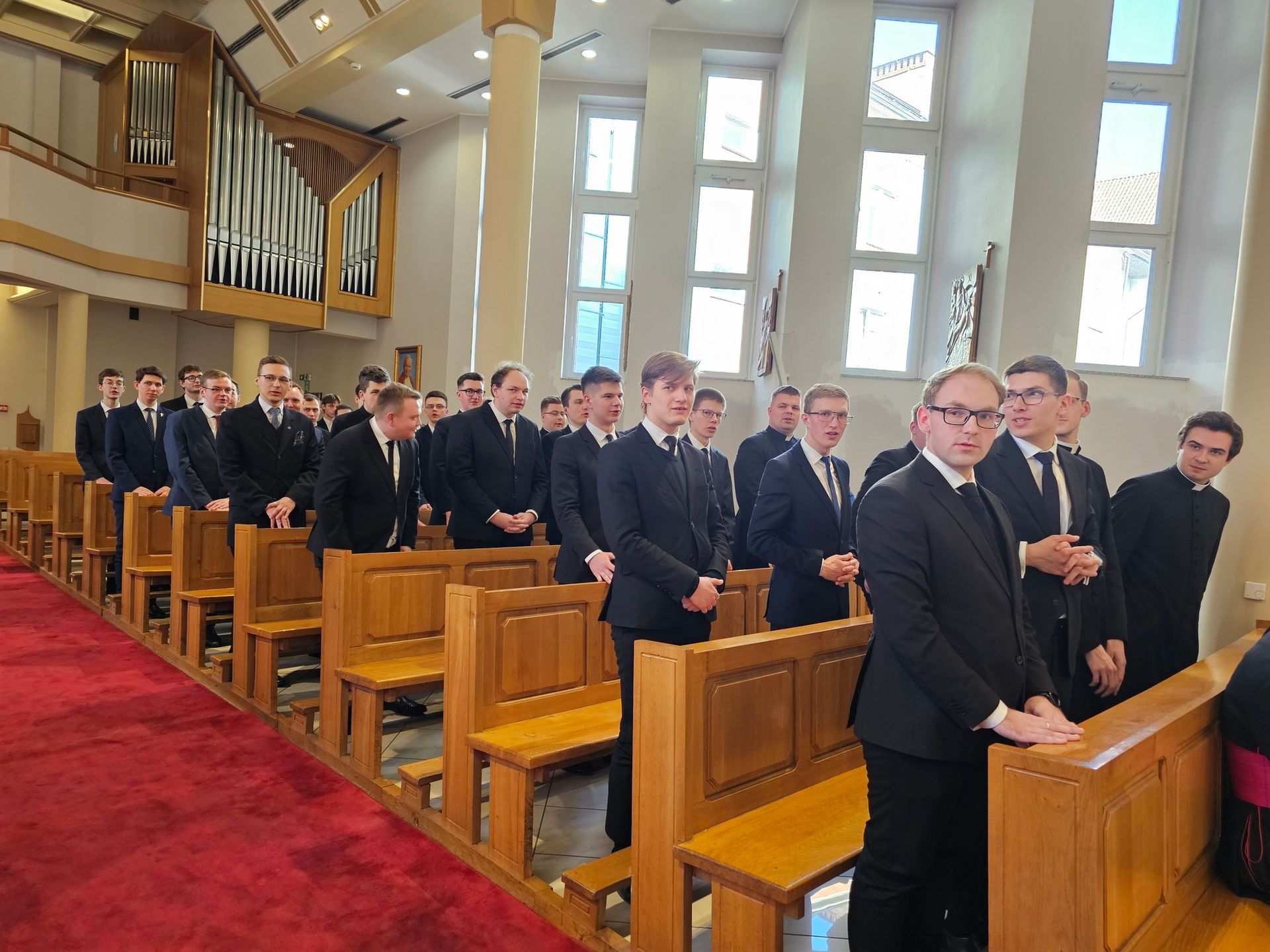 24 października uroczyście rozpoczęliśmy kolejny rok formacyjny i akademicki w naszym seminarium. W inauguracji wzięli udział księża biskupi, władze i profesorowie WT UAM. Ponadto na uroczystą inaugurację w naszym domu przybyła również wspólnota Kongregacji Oratorium św. Filipa Neri w Poznaniu oraz całe seminarium Towarzystwa Chrystusowego dla Polonii Zagranicznej. Uroczyste świętowanie rozpoczęliśmy wspólną Eucharystią w naszej seminaryjnej kaplicy, której przewodniczył ks. abp Zbigniew Zieliński - Metropolita Poznański. Obecni byli także bp Damian Bryl - biskup kaliski, bp Krzysztof Włodarczyk - biskup bydgoski, bp Radosław Orchowicz, który zastępował na naszych uroczystościach nieobecnego abp Wojciecha Polaka - ordynariusza gnieźnieńskiego, a także inni biskupi - abp senior Stanisław Gądecki, bp Grzegorz Balcerek oraz bp Jan Glapiak. Homilię podczas Eucharystii wygłosił ks. dr Paweł Jasina - wikariusz generalny Towarzystwa Chrystusowego. Podczas drugiej części naszej uroczystości mieliśmy okazję wysłuchać w naszej seminaryjnej auli kilku przemówień, które wygłosili: ks. dr Jan Frąckowiak - rektor ASD, ks. prof. UAM dr hab. Mieczysław Polak - dziekan WT UAM, kl. Kacper Jungermann - senior seminaryjny. Bardzo ważnym elementem tej części inauguracji była uroczysta immatrykulacja (włączenie w gron alumnów) 11 kleryków okresu propedeutycznego Arcybiskupiego Seminarium Duchownego w Poznaniu oraz 3 kleryków roku pierwszego WSD Towarzystwa Chrystusowego dla Polonii Zagranicznej w Poznaniu. Następnie mogliśmy wysłuchać wykładu inauguracyjnego pt. "Pielgrzymką nadziei przez literaturę" wygłoszonego przez ks. prof. UMK dr hab. Stanisława Adamiaka. Podczas obu tych części naszej inauguracji towarzyszył nam również śpiew naszej seminaryjnej scholi "Inclina Aurem" pod dyrekcją ks. prof. Mariusza Białkowskiego, który przez cały rok troszczy się o śpiew w naszym seminarium. Na koniec uroczystości wspólnie zeszliśmy do naszego seminaryjnego refektarza, aby wspólnie spożyć obiad. Bardzo serdecznie dziękujemy wszystkim, którzy przybyli na uroczystą inaugurację do naszego seminarium, aby wspólnie z nami radośnie rozpocząć nowy rok formacyjny i akademicki 2025/2026. Zdjęcia za: Arcybiskupie Seminarium Duchowne w Poznaniu