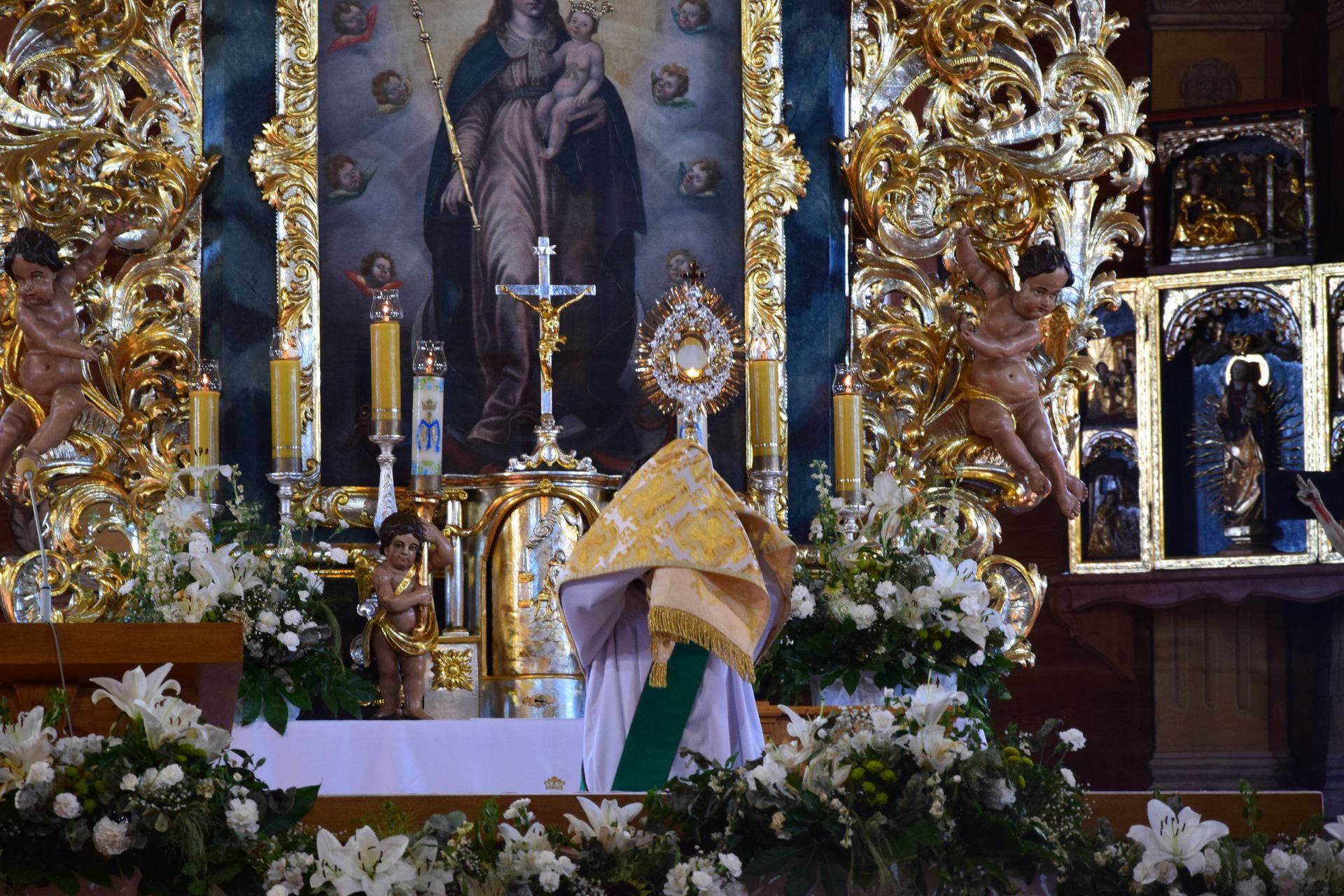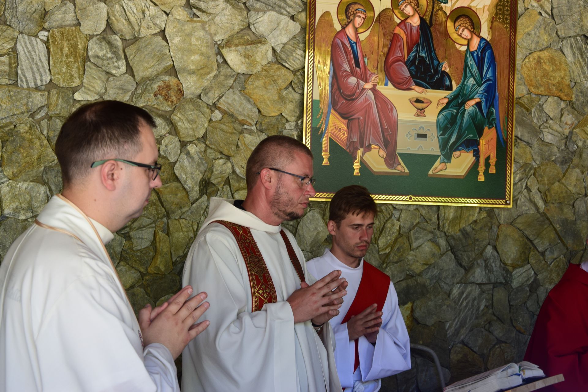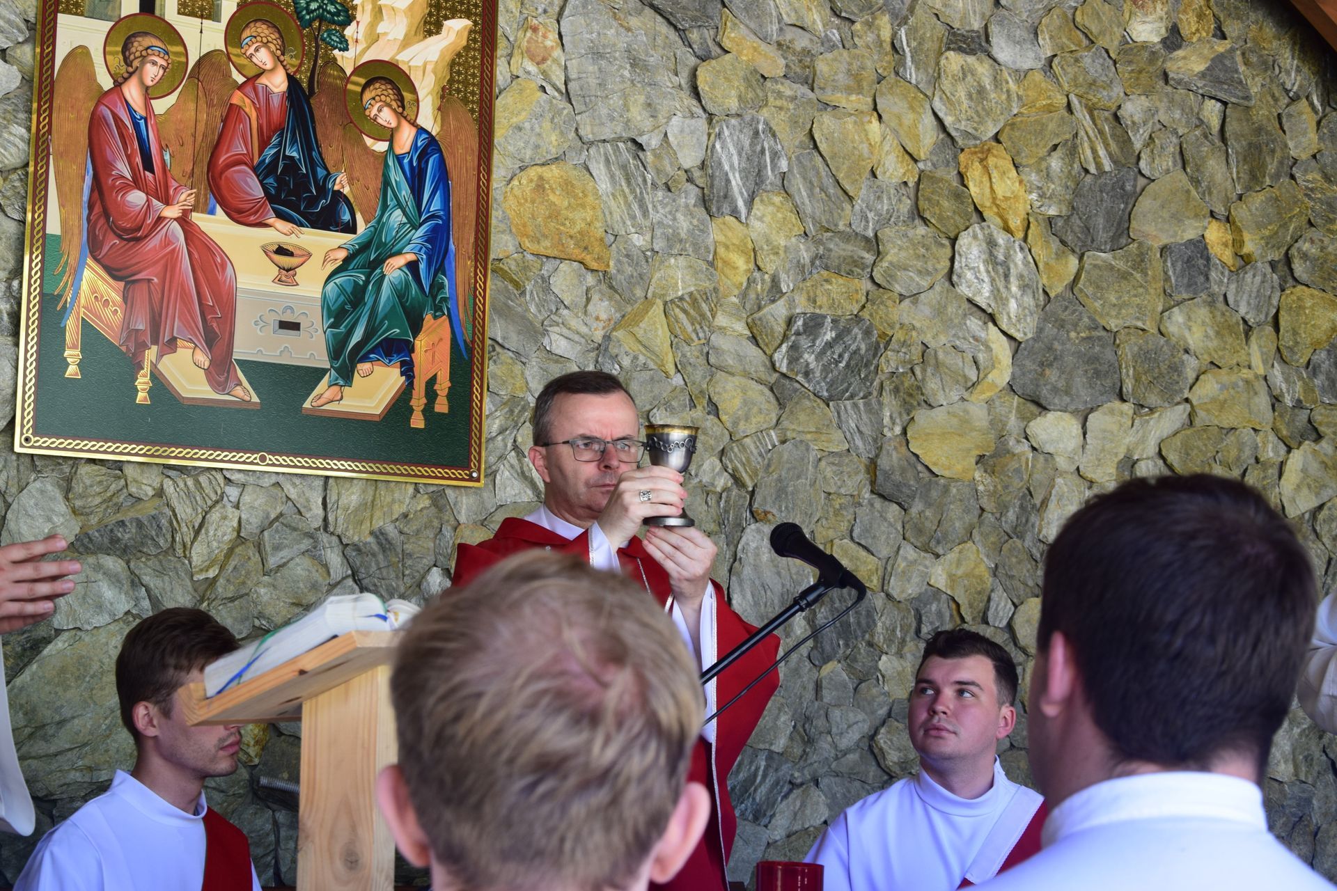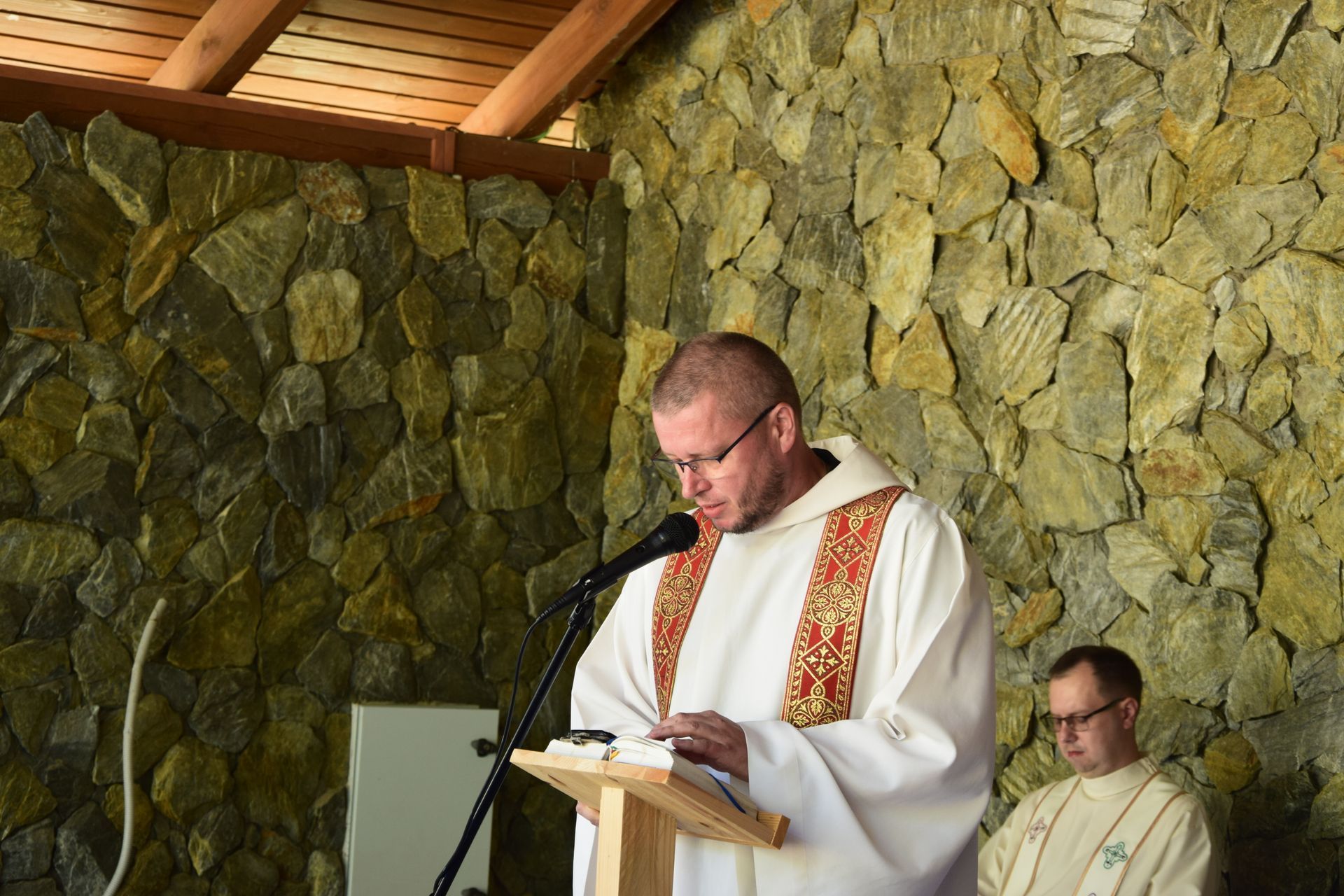Gdy już dotarliśmy na miejsce docelowe, a więc na Górę Krzyża Jubileuszowego, chwilę odpoczęliśmy po czym wspólnie przeżyliśmy dziękczynną Eucharystię pod przewodnictwem bp. Damiana Bryla. Homilię podczas niej wygłosił do nas ks. Marcin Wiśniewski. Zawarł on podczas niej kilka ważnych myśli: