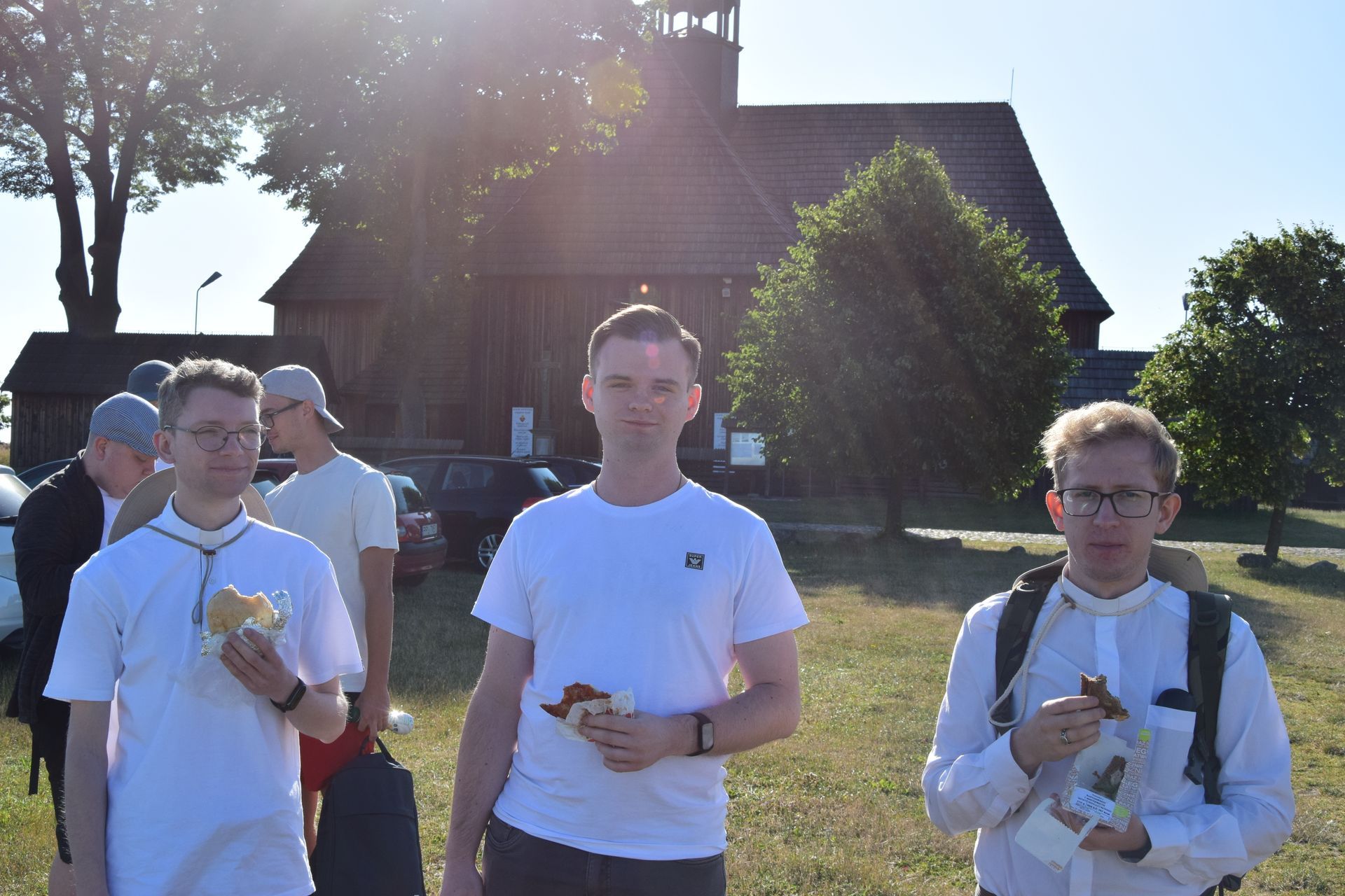 Na początek zebraliśmy się w Sanktuarium Maryjnym na Pólku pod Bralinem i odbyliśmy nabożeństwo ku czci Matki Bożej, któremu przewodniczył dk. Jakub Wasiela. Następnie mieliśmy czas, aby się posilić, po czym wyruszyliśmy w drogę.