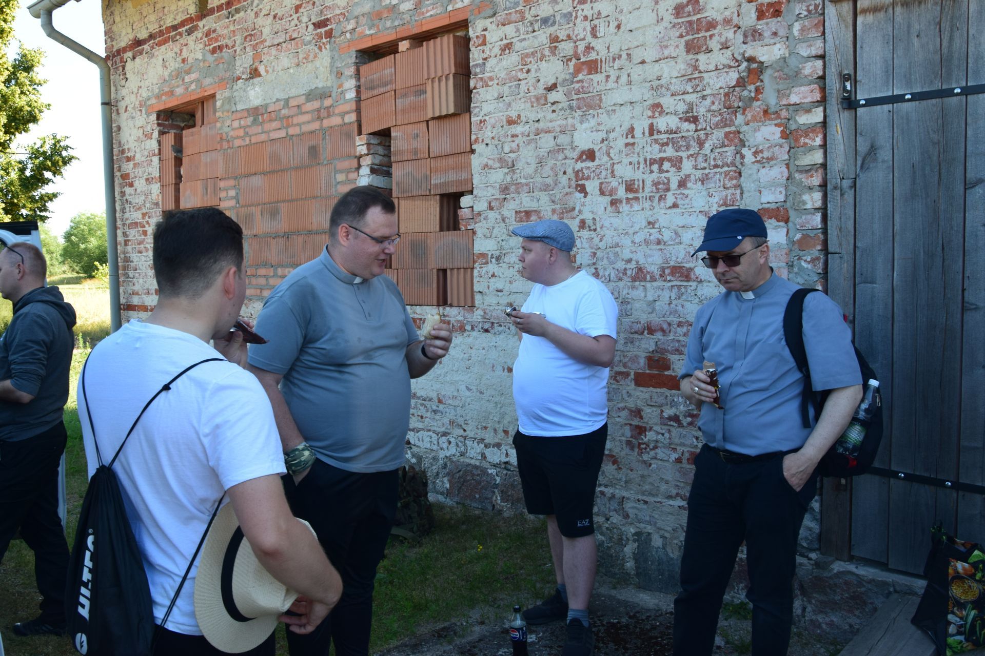 Podczas trasy zaśpiewaliśmy godzinki ku czci Matki Bożej, odmówiliśmy różaniec, a także mieliśmy czas, aby porozmawiać z naszym pasterzem o różnych ważnych rzeczach, które dzieją się w naszej diecezji. W okolicach połowy drogi, zatrzymaliśmy się, aby chwilę odetchnąć oraz nabrać sił na dalszą część trasy, która nas czekała.