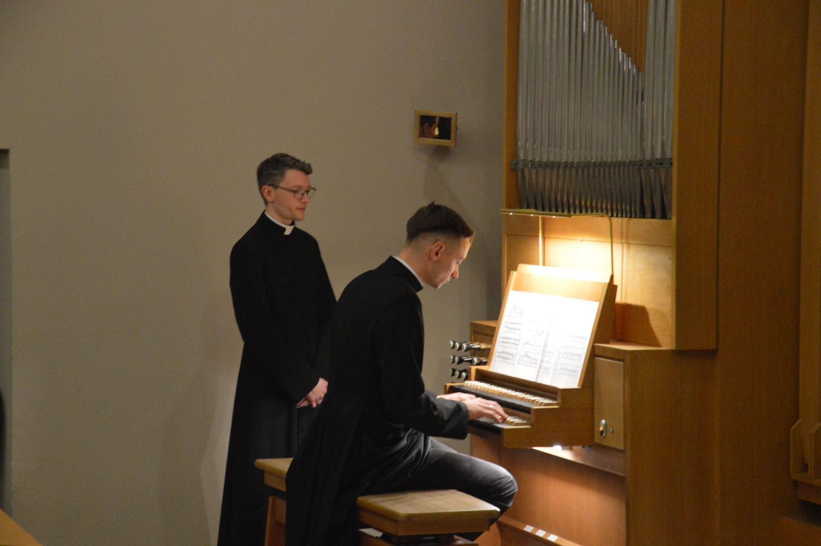 Po zakończonej modlitwie, dalszy ciąg świętowania miał miejsce na refektarzu, gdzie czekała na nas gotowa kolacja, którą wspólnie spożyliśmy, a następnie mogliśmy wrócić do kaplicy, gdzie wysłuchaliśmy koncertu, pt. "Laudate Dominum" naszej seminaryjnej scholi "Inclina Aurem". Większość koncertu miała na celu pokazać możliwości naszego nowego instrumentu muzycznego, lecz znalazł się także moment, w którym mogliśmy wysłuchać naszej scholi. Koncert odbył się w następującym porządku:
