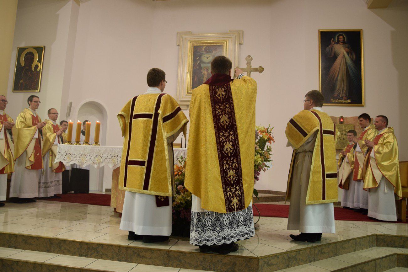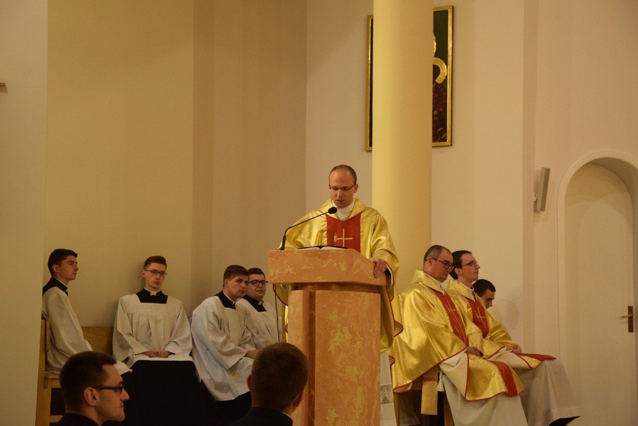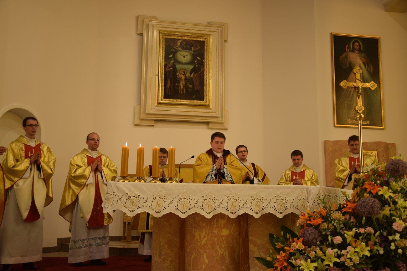 Mszy świętej koncelebrowanej przez neoprezbiterów oraz księży moderatorów przewodniczył ksiądz Jędrzej Zaczyk, natomiast homilię wygłosił ksiądz Dominik Herbeć. Na tę uroczystość przybyli także bracia z dwóch pierwszych roczników naszego seminarium, którzy obecnie kształcą się w poznańskim seminarium. Przybyli oni wraz z księdzem Rektorem poznańskiego Arcybiskupiego Seminarium Duchownego.