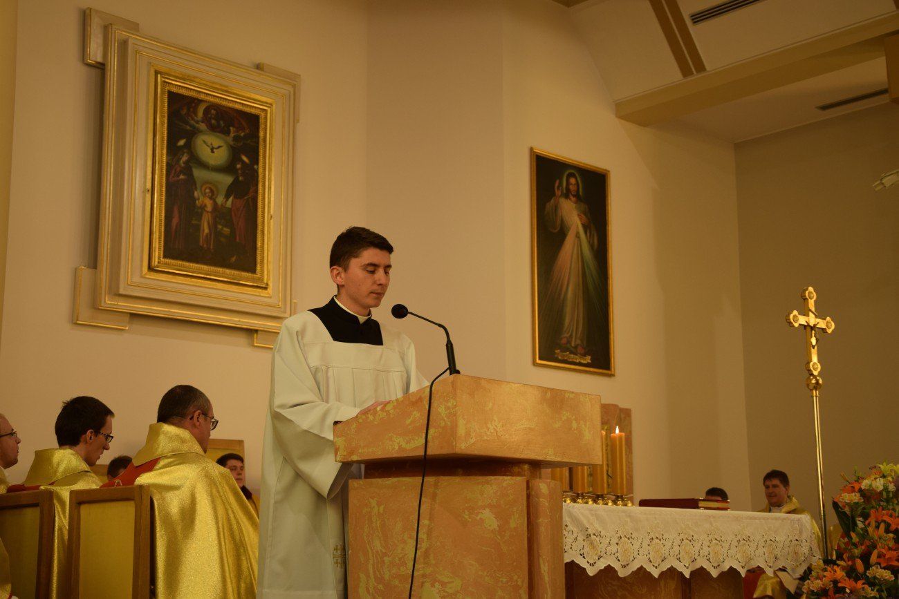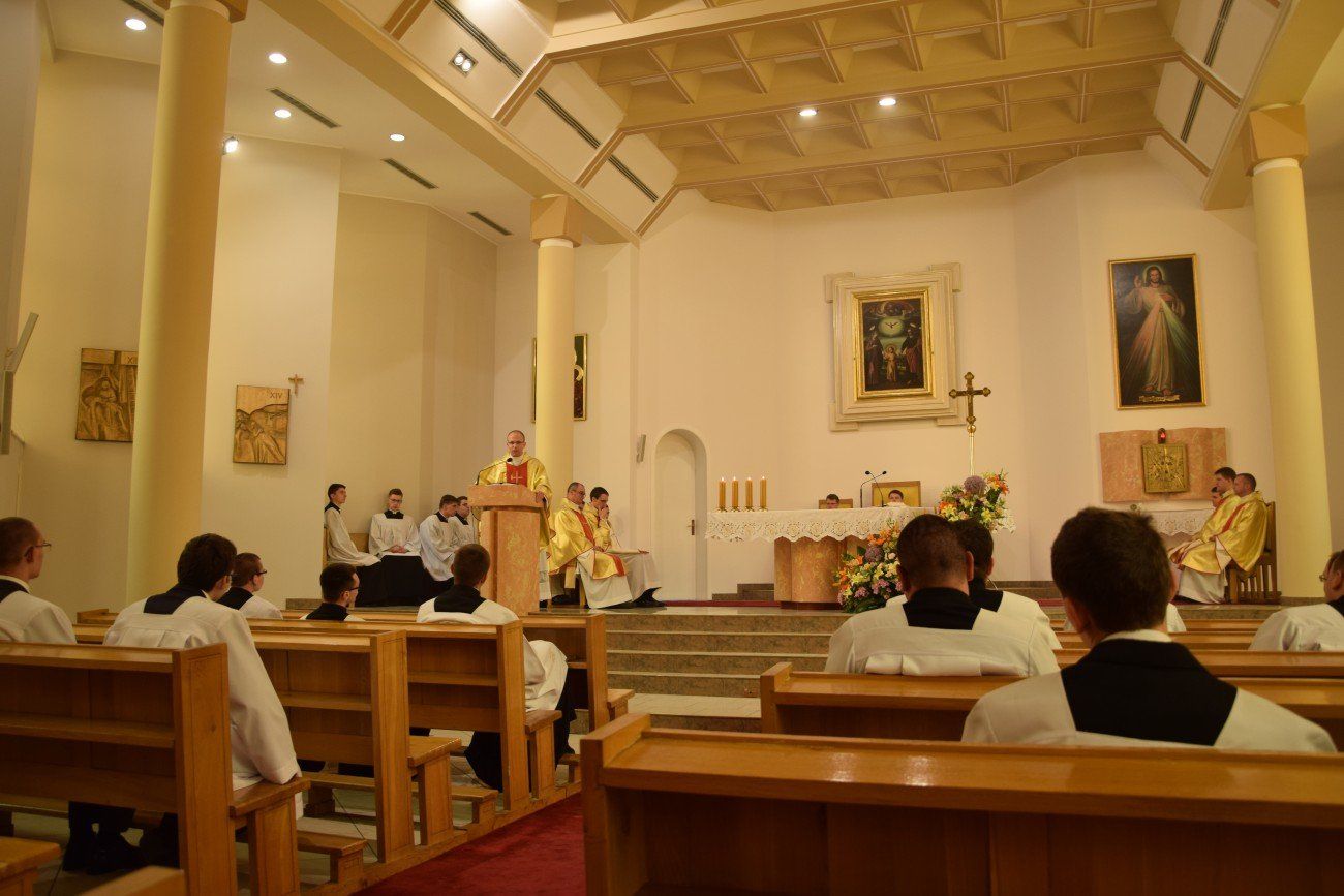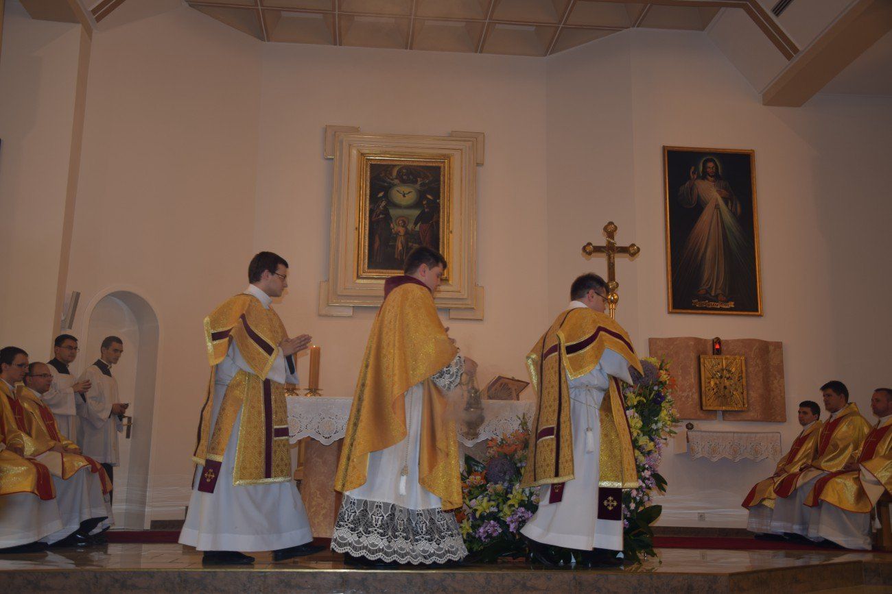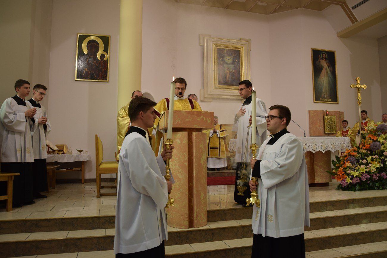 Mszy świętej koncelebrowanej przez neoprezbiterów oraz księży moderatorów przewodniczył ksiądz Jędrzej Zaczyk, natomiast homilię wygłosił ksiądz Dominik Herbeć. Na tę uroczystość przybyli także bracia z dwóch pierwszych roczników naszego seminarium, którzy obecnie kształcą się w poznańskim seminarium. Przybyli oni wraz z księdzem Rektorem poznańskiego Arcybiskupiego Seminarium Duchownego.