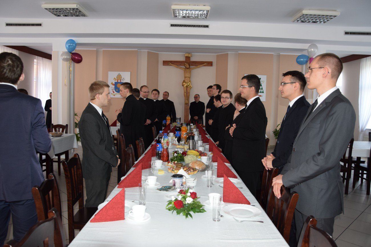 Po zakończonej Eucharystii wszyscy udali się do seminaryjnego refektarza, gdzie miała miejsce kolacja, w czasie której ksiądz Rektor oraz Dziekan alumnów złożyli życzenia prymicjantom. Warto dodać, że była to pierwsza Msza święta po remoncie w kaplicy świętego Józefa, w której uczestniczyła nasza wspólnota.