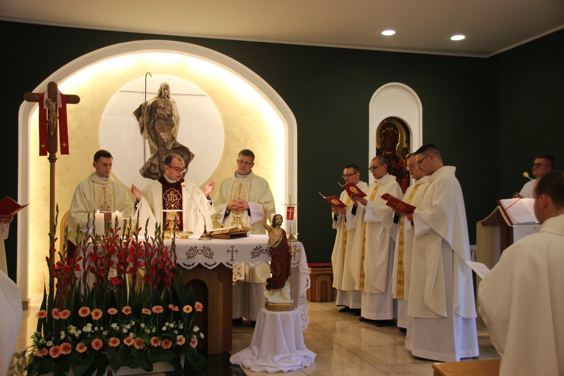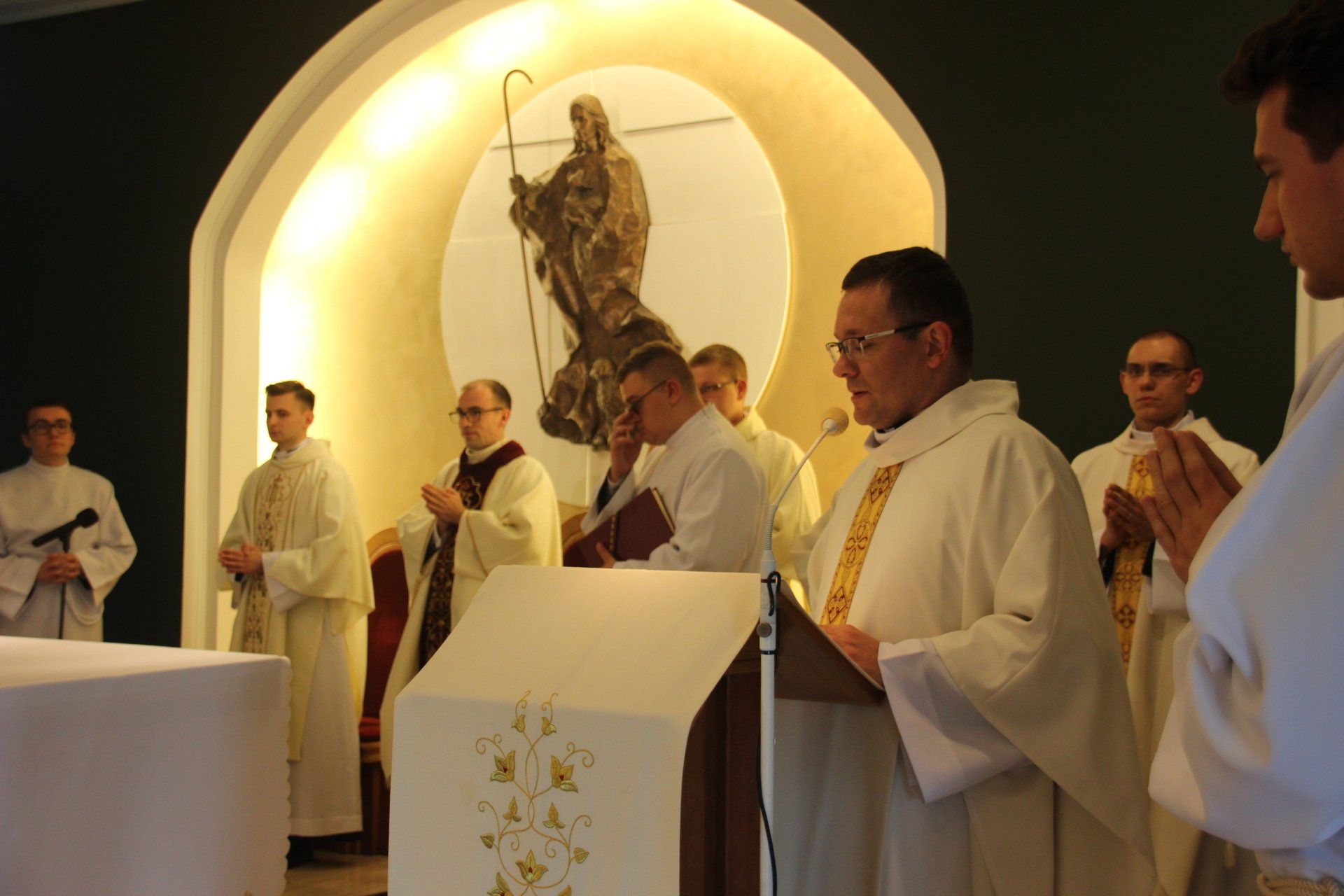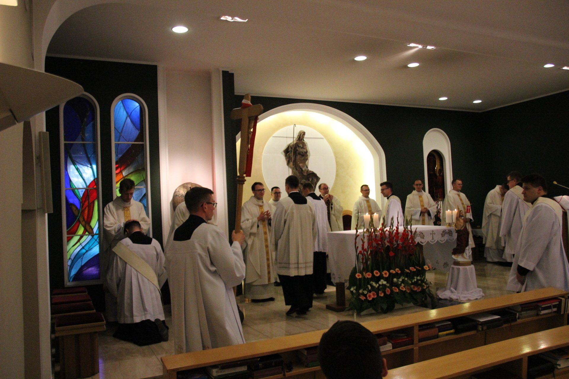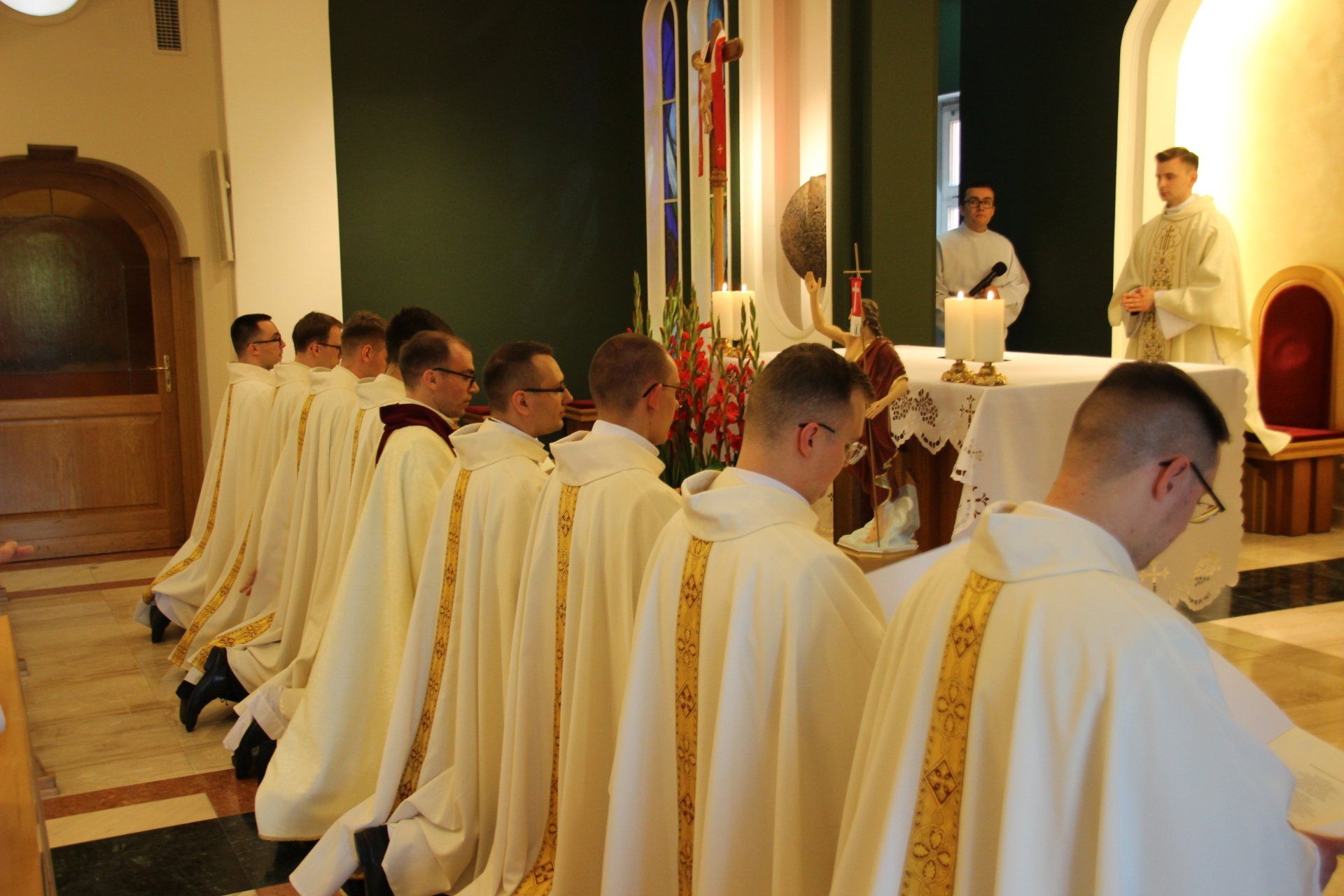 Tego roku dzień po prymicjach w parafiach rodzinnych to czas, gdy neoprezbiterzy przyjeżdżają do wspólnoty seminaryjnej, w której formowali się przez ostatnie sześć lat aby sprawować wspólną Eucharystię. Naszemu zgromadzeniu modlitwy przewodził ks. Łukasz Kozłowski z Archidiecezji Poznańskiej, który był seniorem kursowym nowo wyświęconych kapłanów.