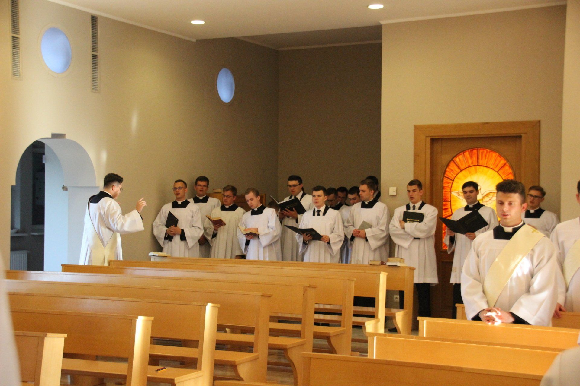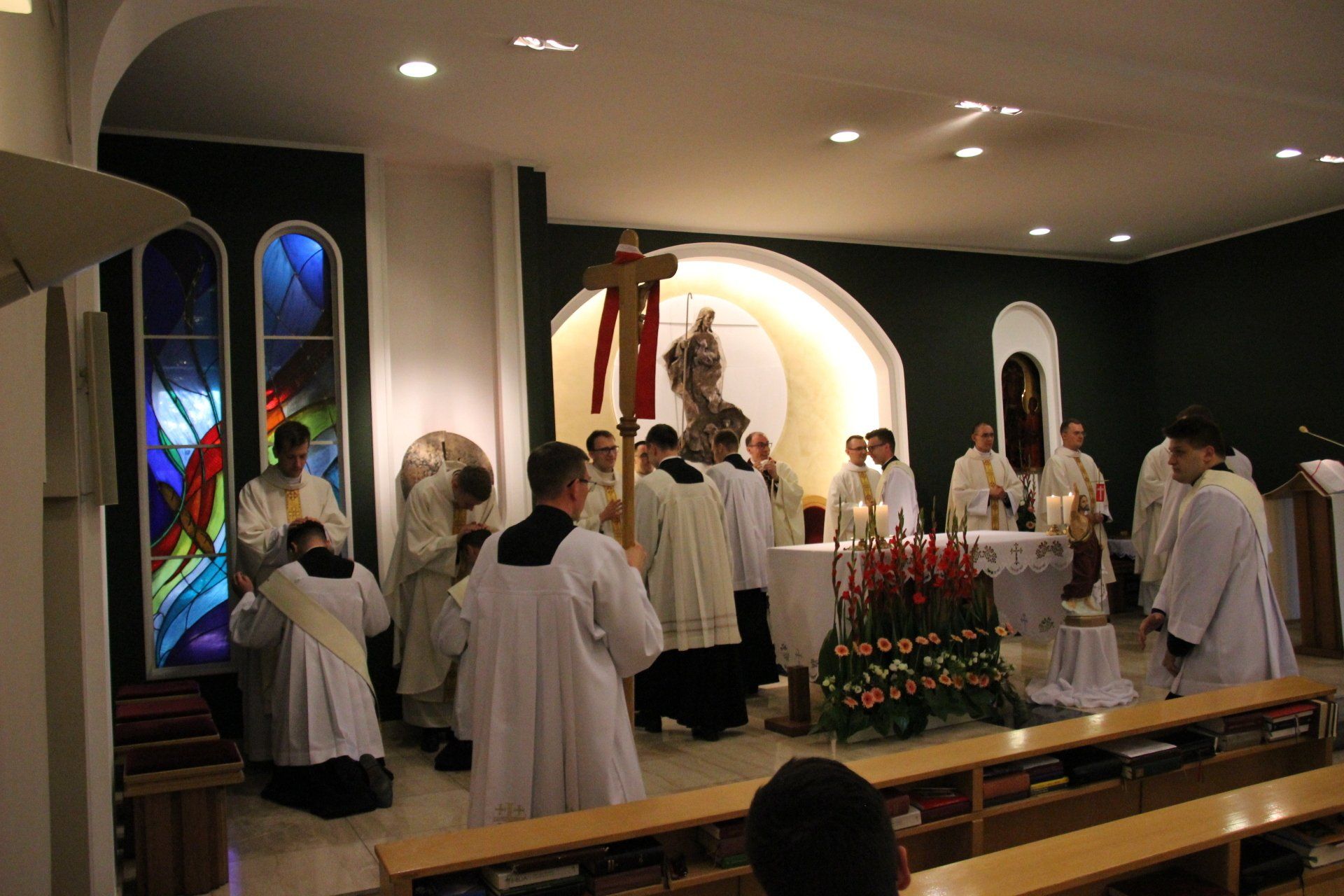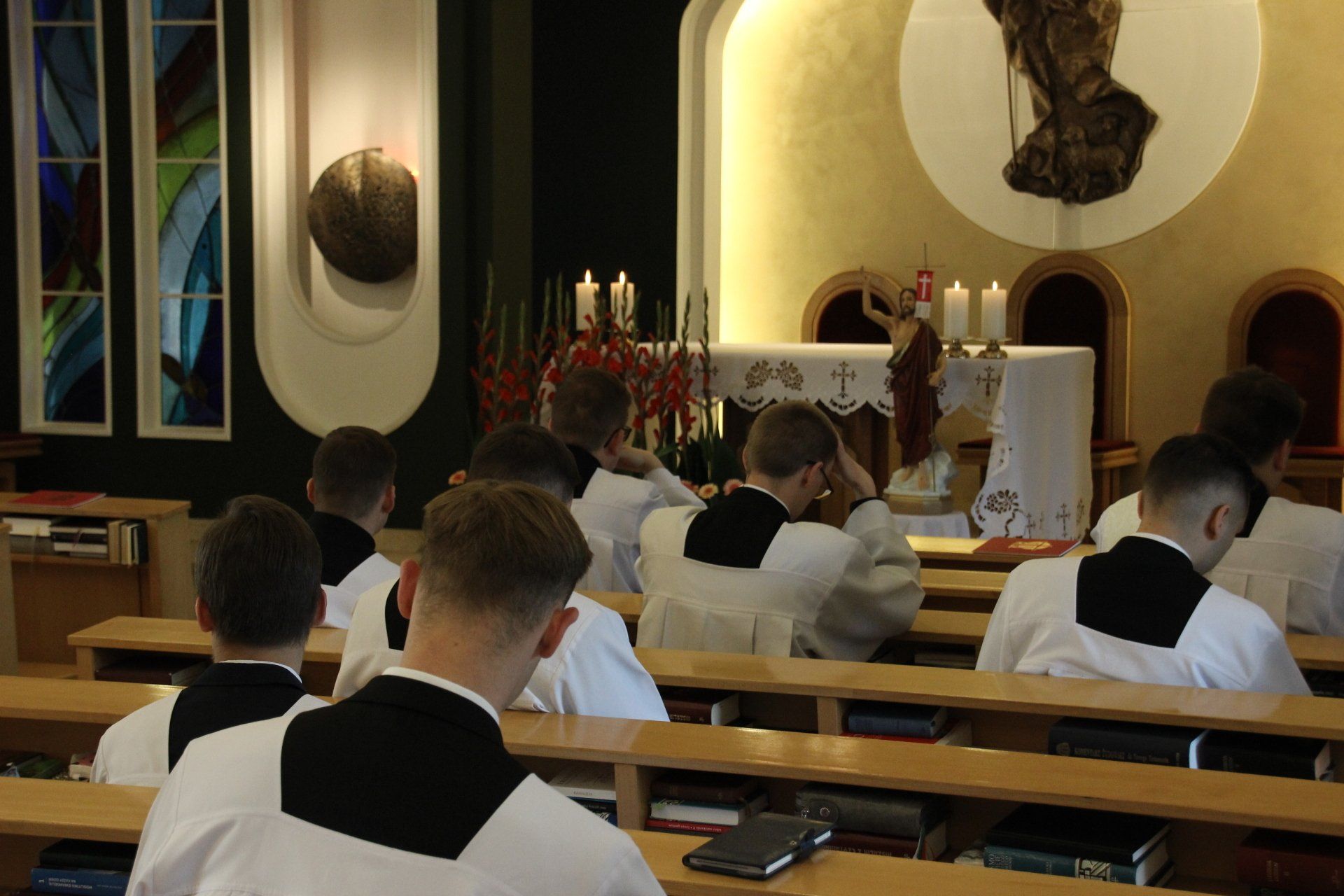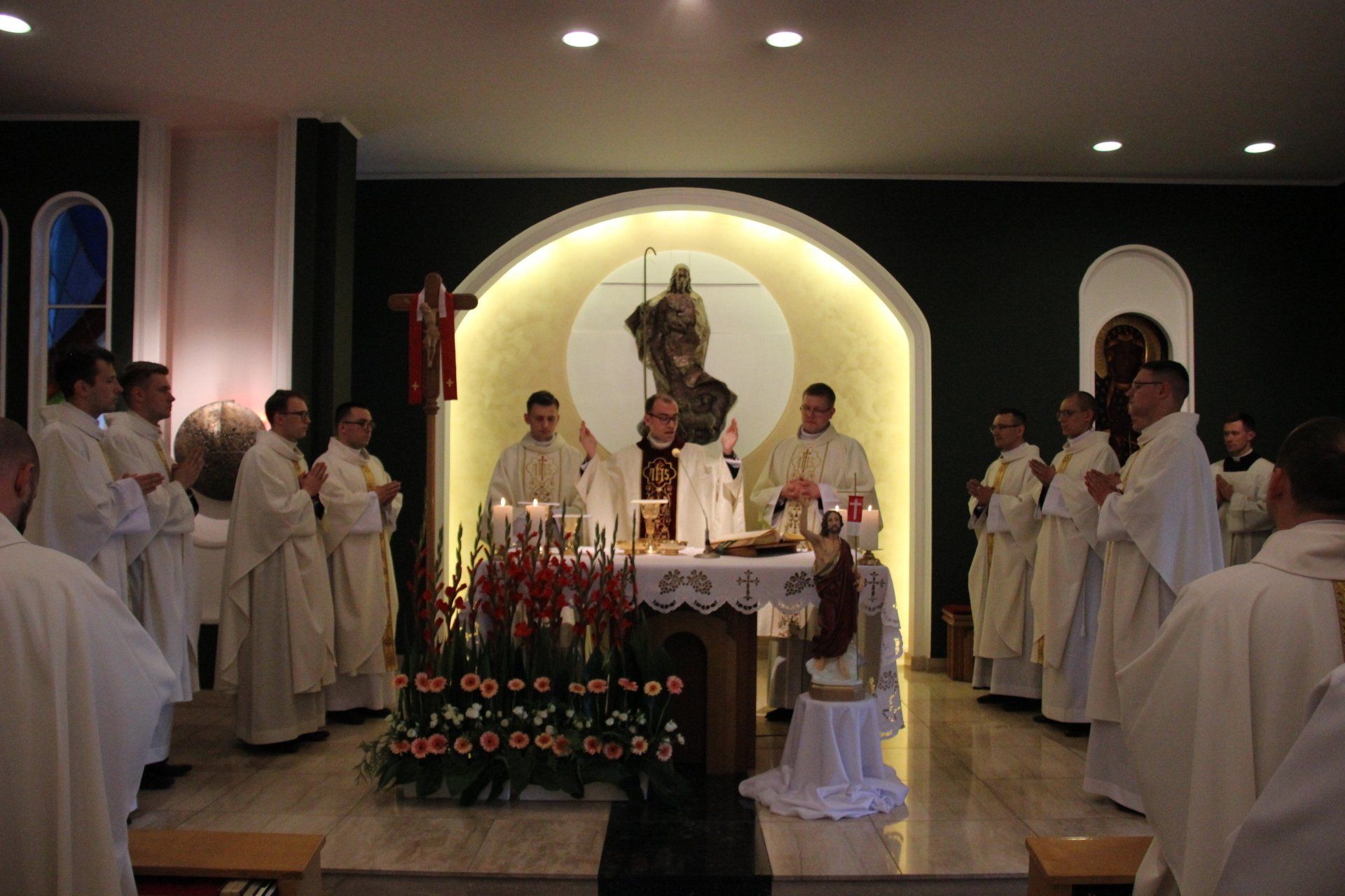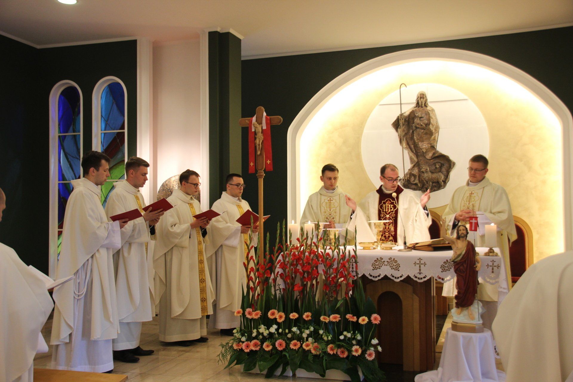 Tego roku dzień po prymicjach w parafiach rodzinnych to czas, gdy neoprezbiterzy przyjeżdżają do wspólnoty seminaryjnej, w której formowali się przez ostatnie sześć lat aby sprawować wspólną Eucharystię. Naszemu zgromadzeniu modlitwy przewodził ks. Łukasz Kozłowski z Archidiecezji Poznańskiej, który był seniorem kursowym nowo wyświęconych kapłanów.