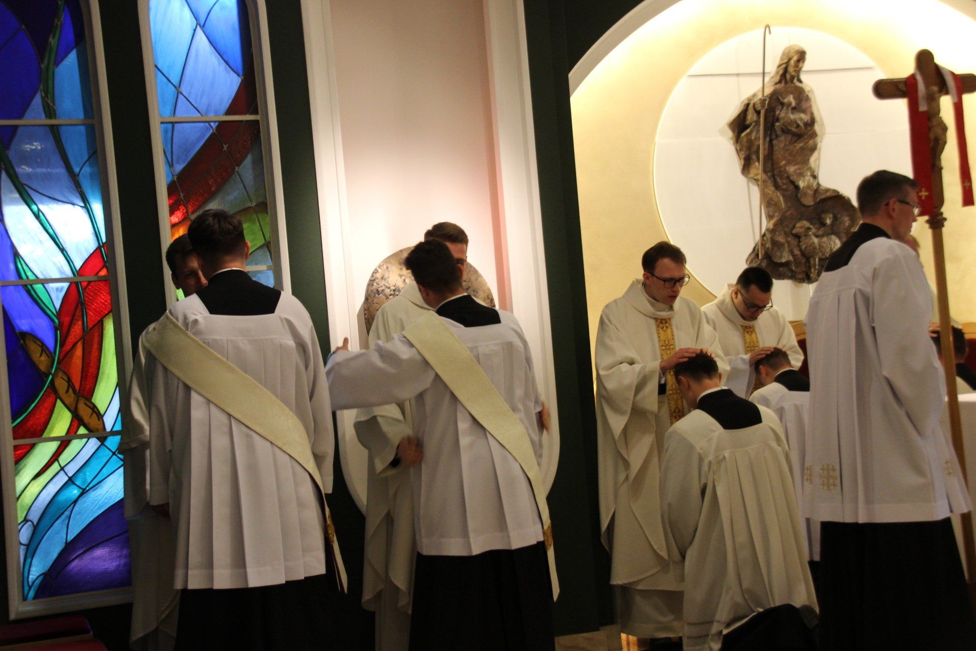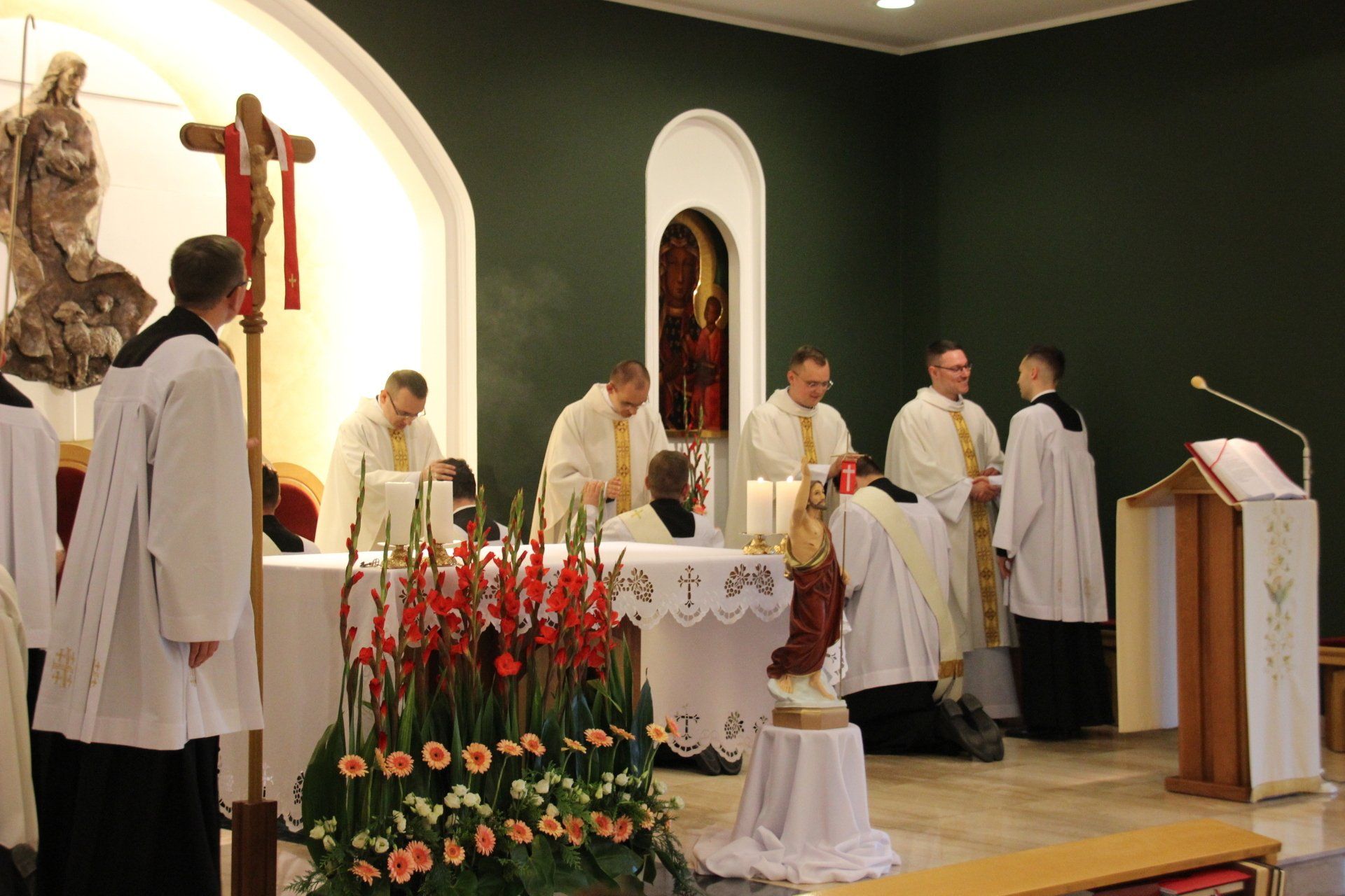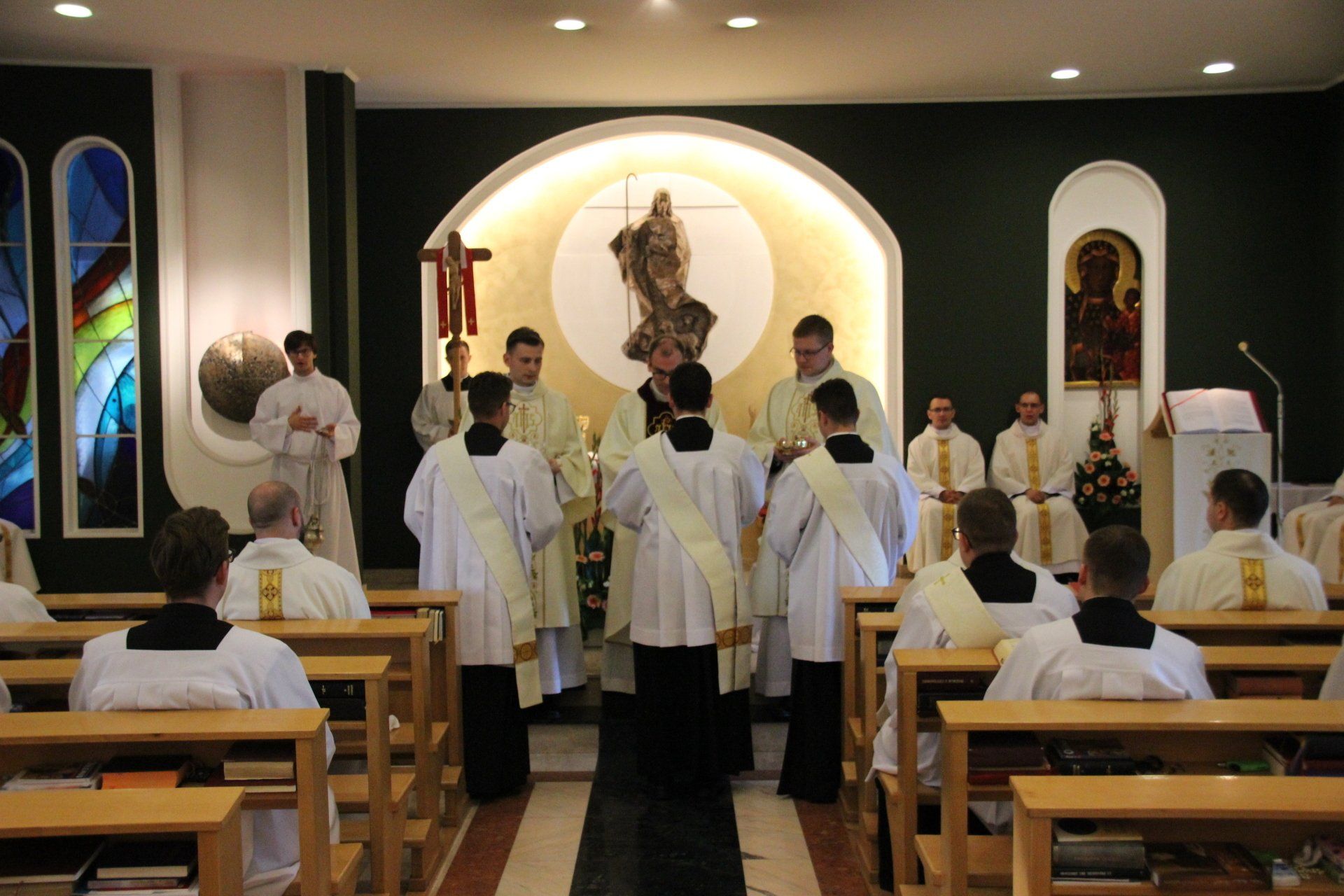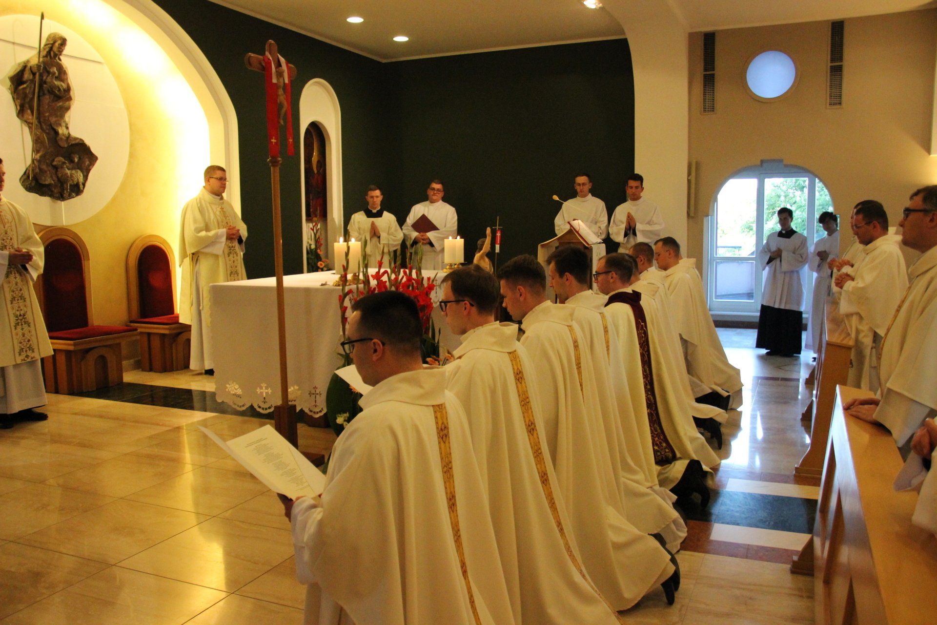 Tego roku dzień po prymicjach w parafiach rodzinnych to czas, gdy neoprezbiterzy przyjeżdżają do wspólnoty seminaryjnej, w której formowali się przez ostatnie sześć lat aby sprawować wspólną Eucharystię. Naszemu zgromadzeniu modlitwy przewodził ks. Łukasz Kozłowski z Archidiecezji Poznańskiej, który był seniorem kursowym nowo wyświęconych kapłanów.