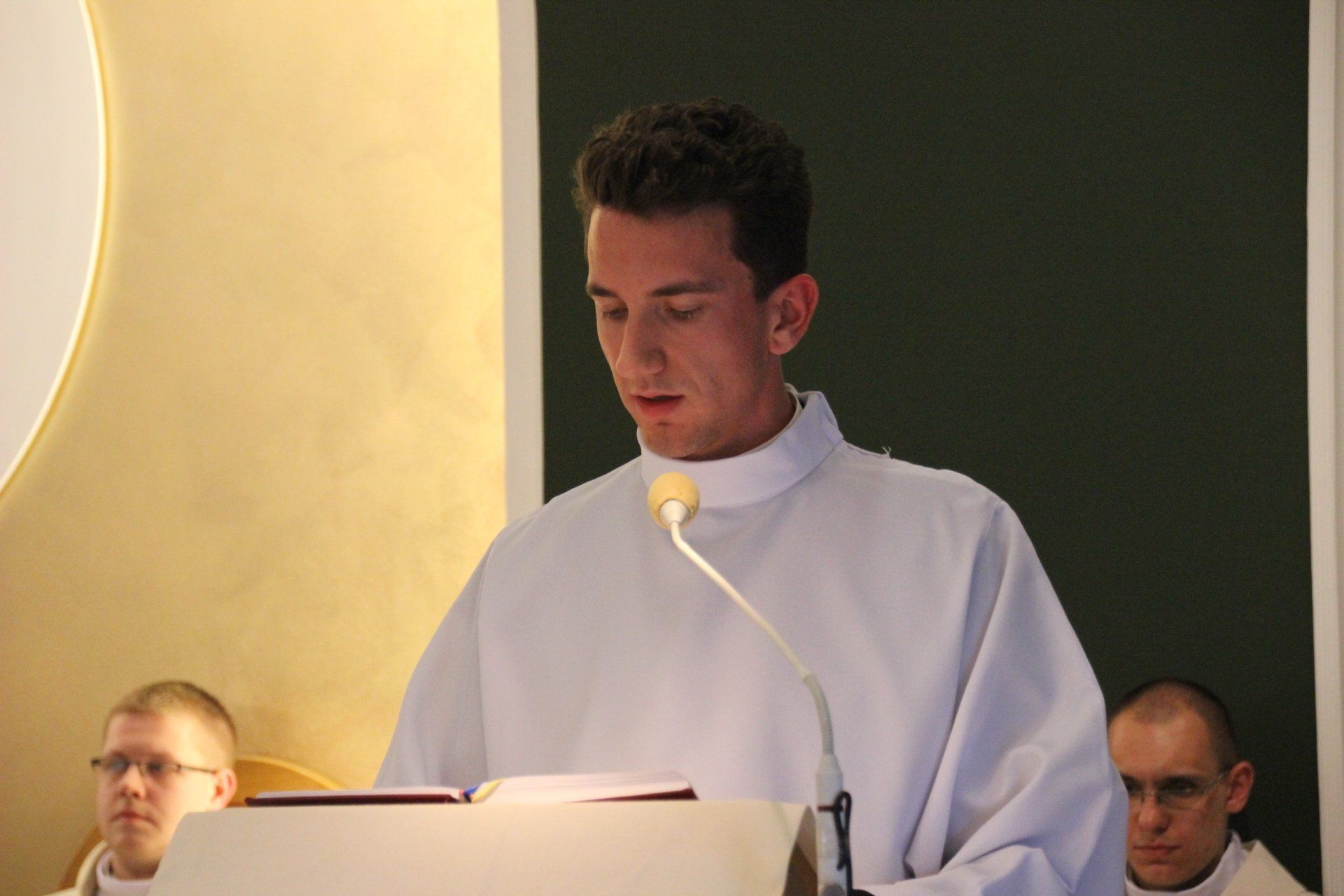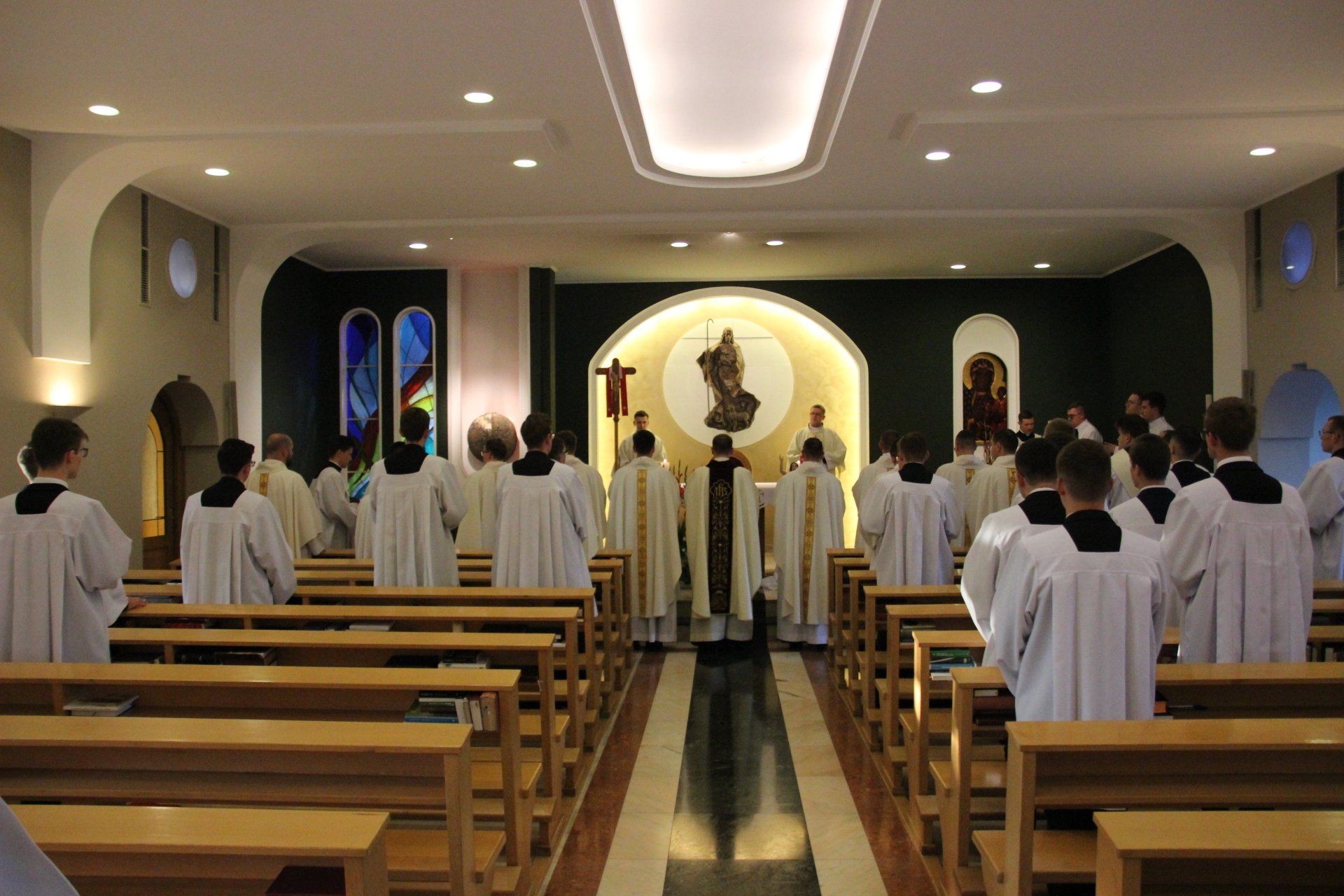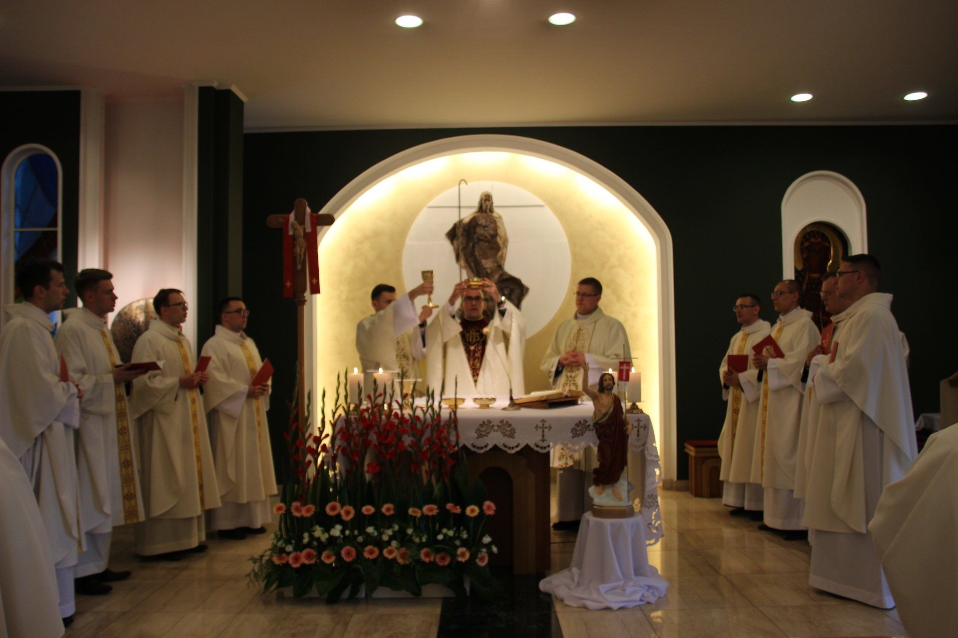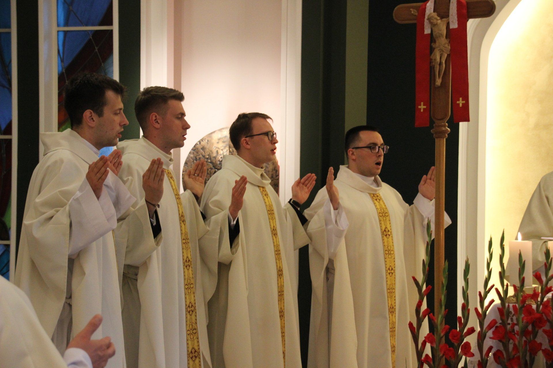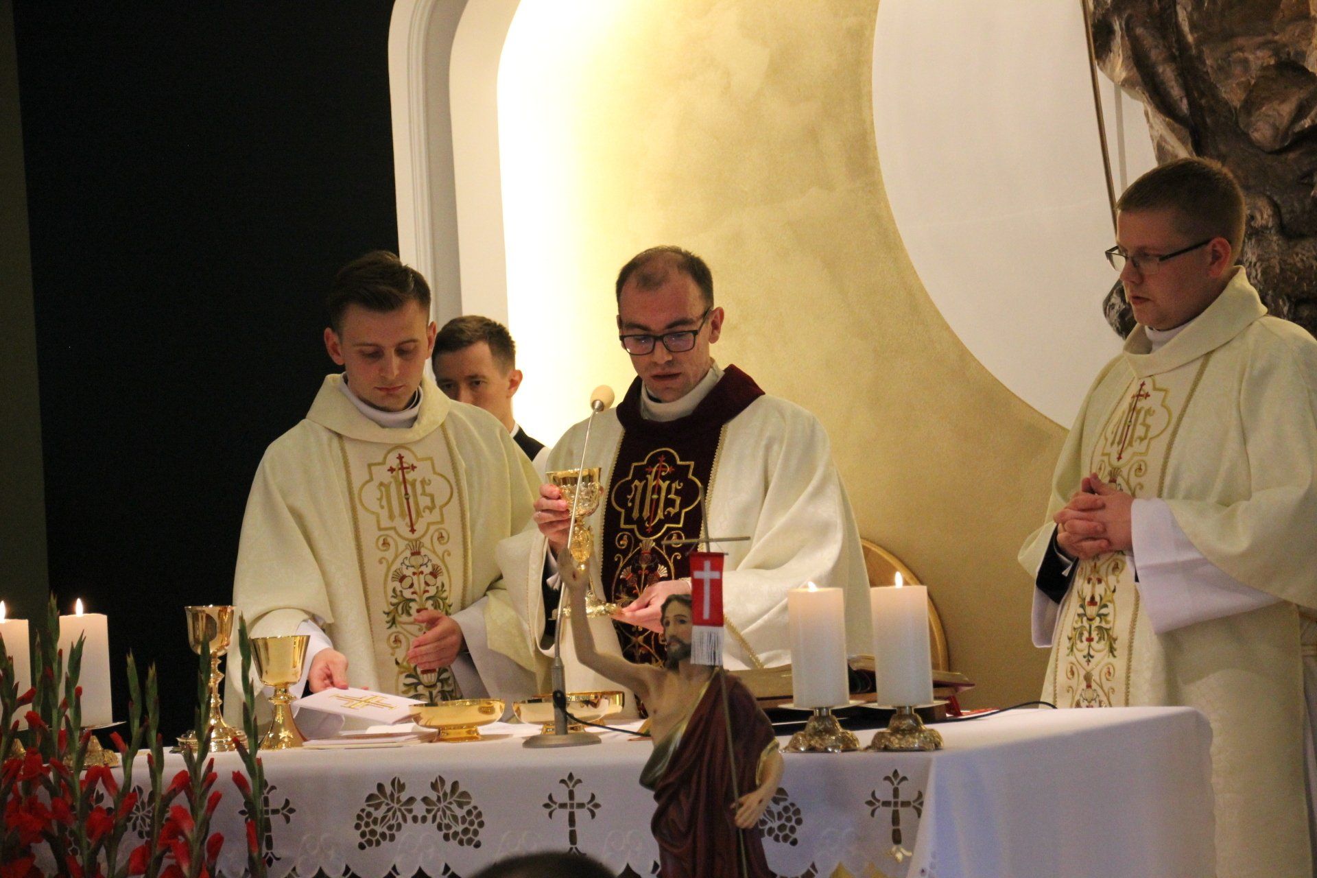Tego roku dzień po prymicjach w parafiach rodzinnych to czas, gdy neoprezbiterzy przyjeżdżają do wspólnoty seminaryjnej, w której formowali się przez ostatnie sześć lat aby sprawować wspólną Eucharystię. Naszemu zgromadzeniu modlitwy przewodził ks. Łukasz Kozłowski z Archidiecezji Poznańskiej, który był seniorem kursowym nowo wyświęconych kapłanów.