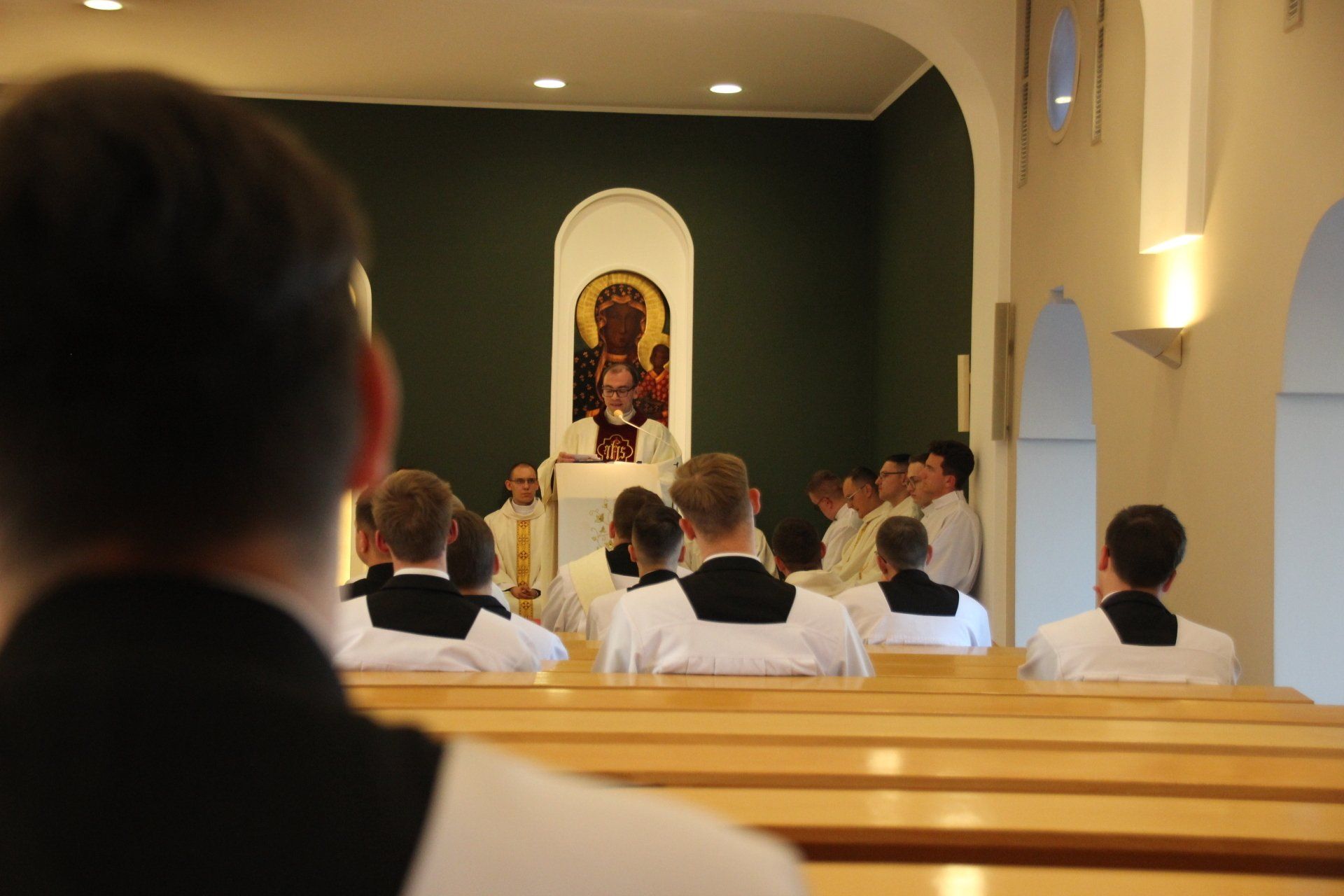W czasie homilii ks. Łukasz podkreślał jak wielkim darem i trudem jest w dzisiejszych czasach kapłaństwo. Odniósł się w sposób szczególny do słów Sacerdos et hostia (Kapłan i ofiara), które zapisane są w naszej mniejszej kaplicy, a przez lata towarzyszyły pokoleniom kapłanów wywodzących się z naszej metropolii w starym budynku seminaryjnym.