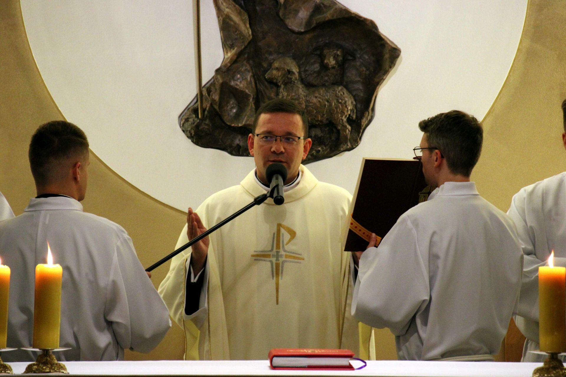 W pierwszą sobotę lipca udaliśmy się na pieszą pielgrzymkę z naszym pasterzem - bp. Damianem Brylem, który zaprosił nas do tego, abyśmy razem z nim udali się do dwóch miejsc jubileuszowych w naszej diecezji - Sanktuarium Maryjnego na Pólku pod Bralinem oraz na Górę Krzyża Jubileuszowego. Na początek zebraliśmy się w Sanktuarium Maryjnym na Pólku pod Bralinem i odbyliśmy nabożeństwo ku czci Matki Bożej, któremu przewodniczył dk. Jakub Wasiela. Następnie mieliśmy czas, aby się posilić, po czym wyruszyliśmy w drogę. Podczas trasy zaśpiewaliśmy godzinki ku czci Matki Bożej, odmówiliśmy różaniec, a także mieliśmy czas, aby porozmawiać z naszym pasterzem o różnych ważnych rzeczach, które dzieją się w naszej diecezji. W okolicach połowy drogi, zatrzymaliśmy się, aby chwilę odetchnąć oraz nabrać sił na dalszą część trasy, która nas czekała. Gdy już dotarliśmy na miejsce docelowe, a więc na Górę Krzyża Jubileuszowego, chwilę odpoczęliśmy po czym wspólnie przeżyliśmy dziękczynną Eucharystię pod przewodnictwem bp. Damiana Bryla. Homilię podczas niej wygłosił do nas ks. Marcin Wiśniewski. Zawarł on podczas niej kilka ważnych myśli: "Wakacje są czasem wprowadzania w życie tego, czego dowiedzieliśmy się w seminarium." - zaznaczył homilista Po modlitwie udaliśmy się na posiłek, po którym ks. Marcin opowiedział nam trochę więcej o pustelni, którą zarządza. O kilka słów poprosiliśmy również siostrę Franciszkę - pierwszą pustelniczkę w naszej diecezji, która kilka tygodni temu złożyła śluby wieczyste, a następnie zakończyliśmy naszą pielgrzymkę i każdy z nas wrócił do swoich wakacyjnych zajęć i praktyk. Dziękujemy bp. Damianowi za zaproszenie nas na tą wspólną przygodę oraz s. Franciszce i ks. Marcinowi za ugoszczenie oraz wygłoszoną homilię. Pamiętajmy o nich również w naszych modlitwach.