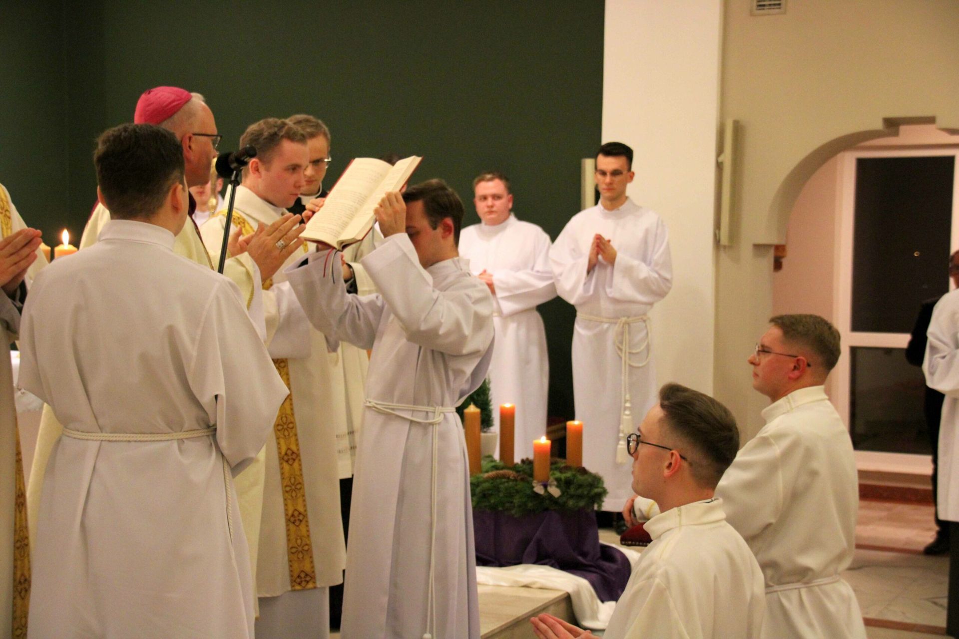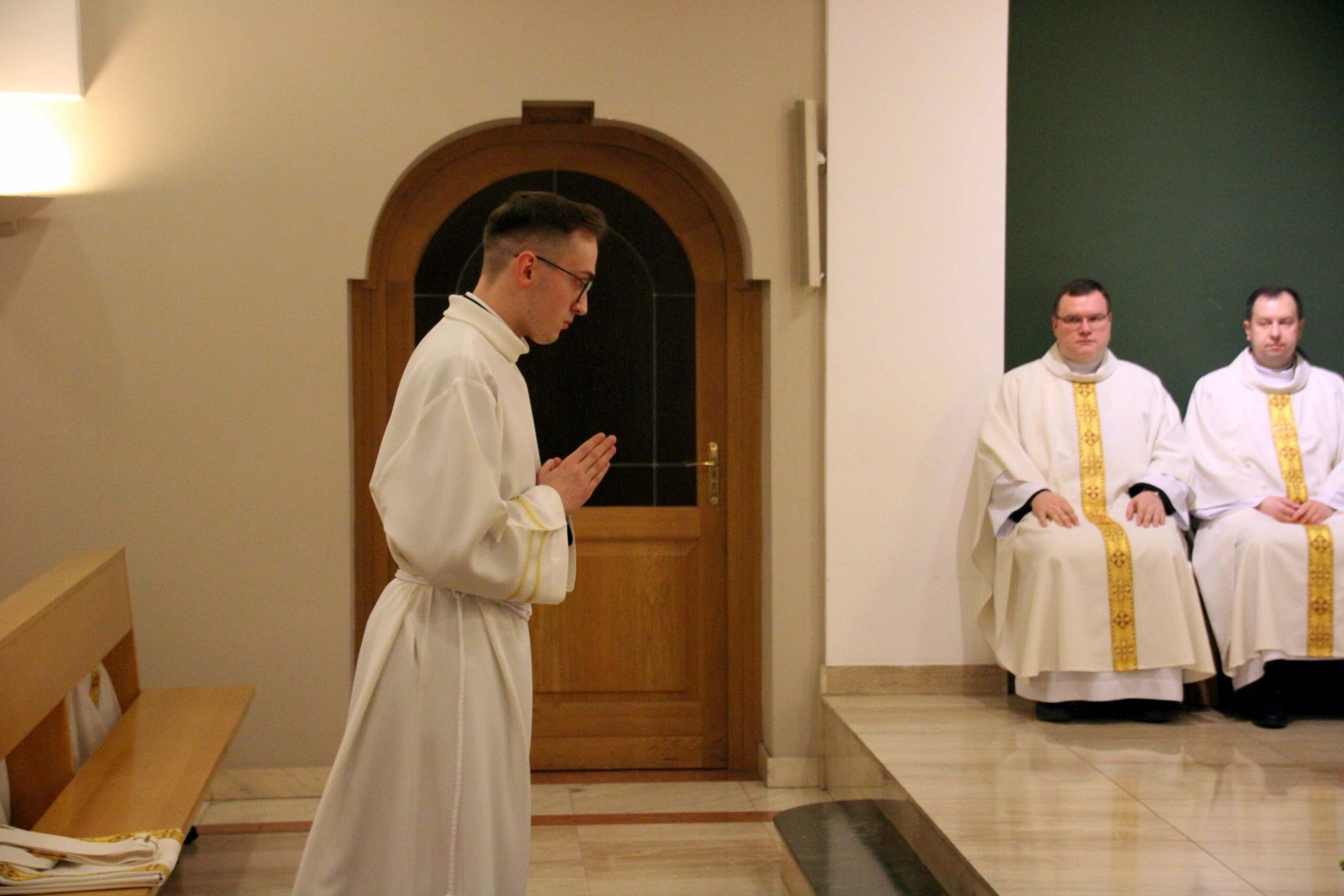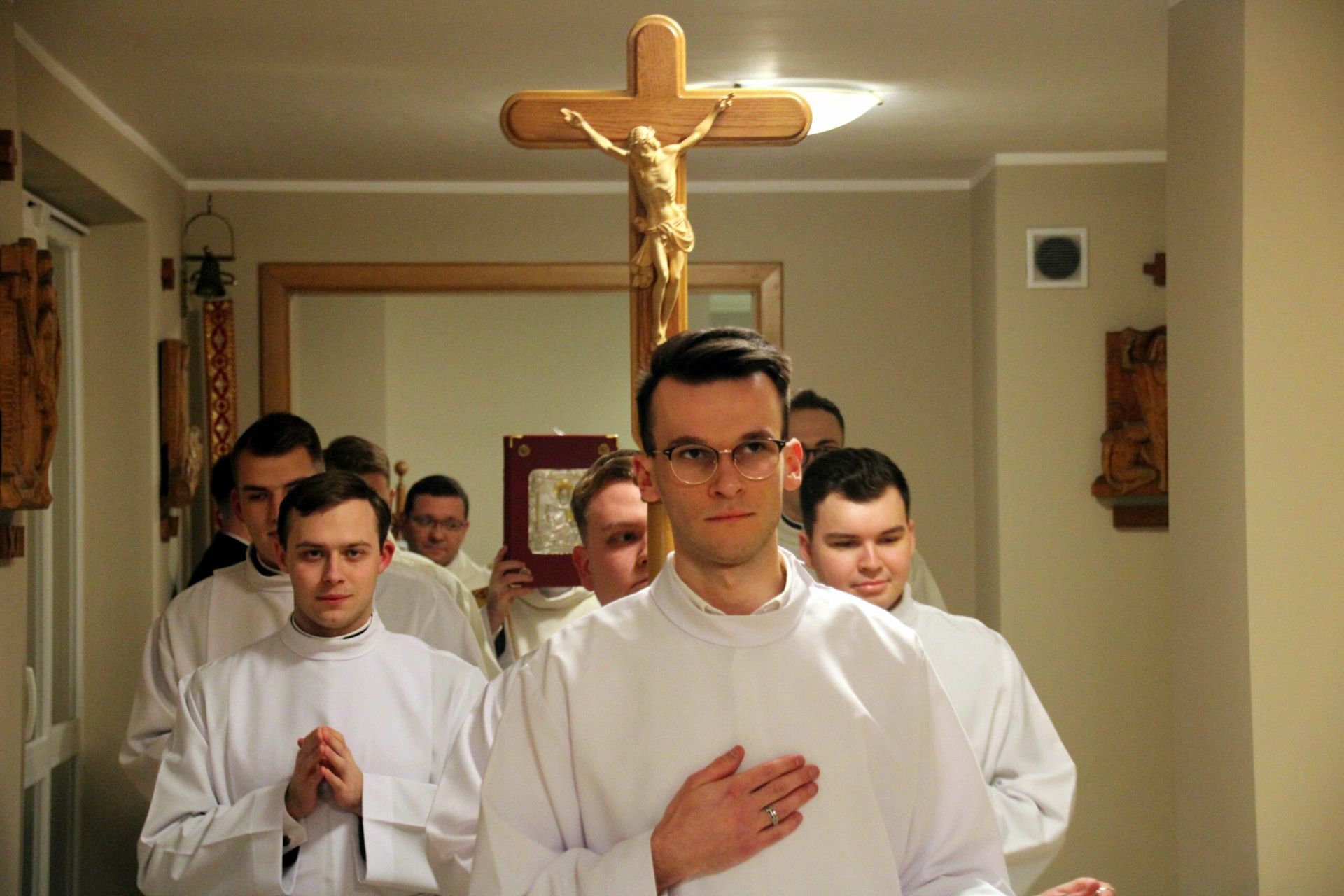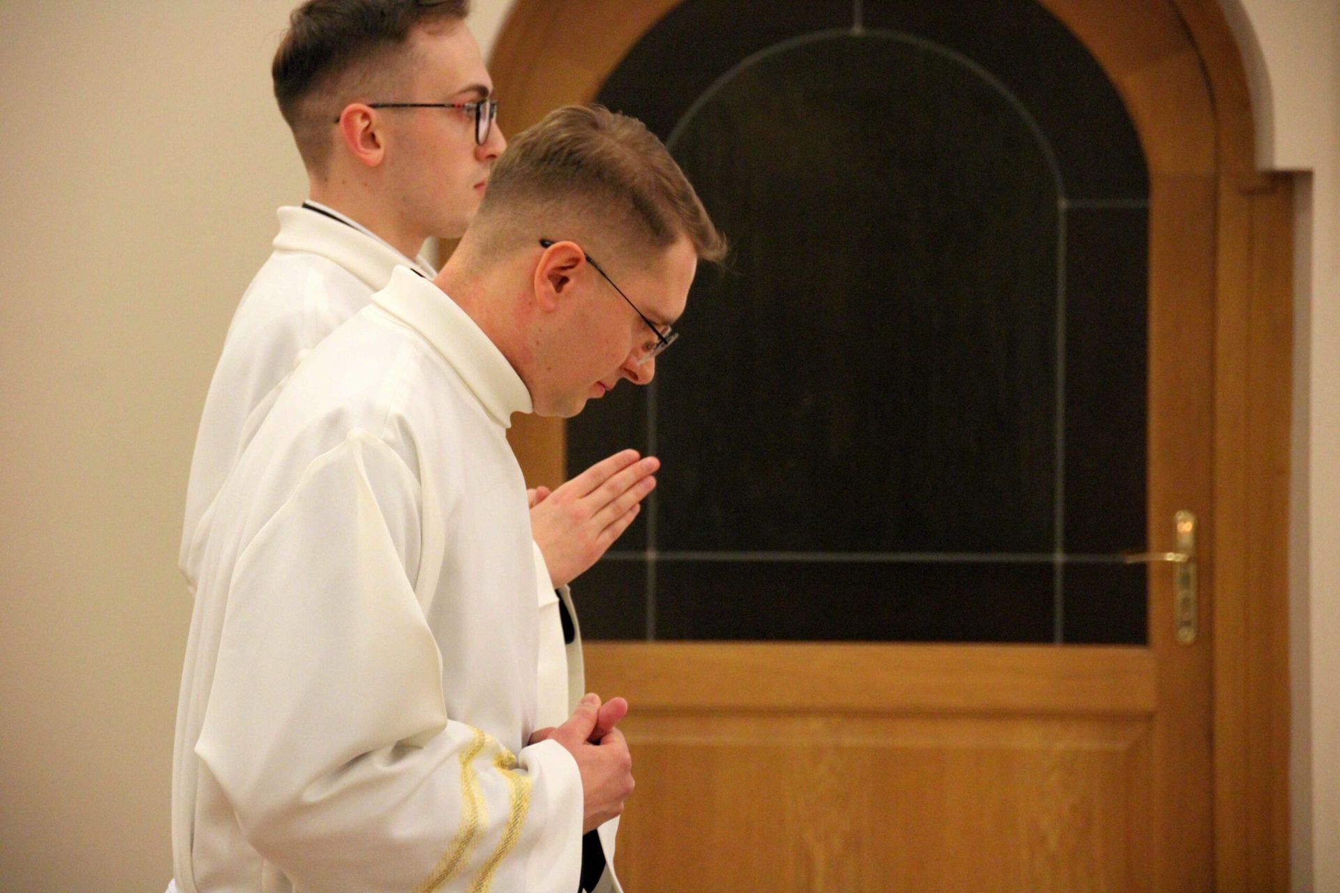 Uroczystość tą poprzedziły nasze rekolekcje adwentowe, o których pisaliśmy w poprzednim artykule oraz poranna jutrznia w poniedziałkowy poranek, której przewodniczył ks. rektor Jan Frąckowiak. Podczas jutrzni diakoni przy obecności całej wspólnoty seminaryjnej podpisali odpowiednie dokumenty, w których złożyli przyrzeczenia wynikające z prawa kanonicznego.