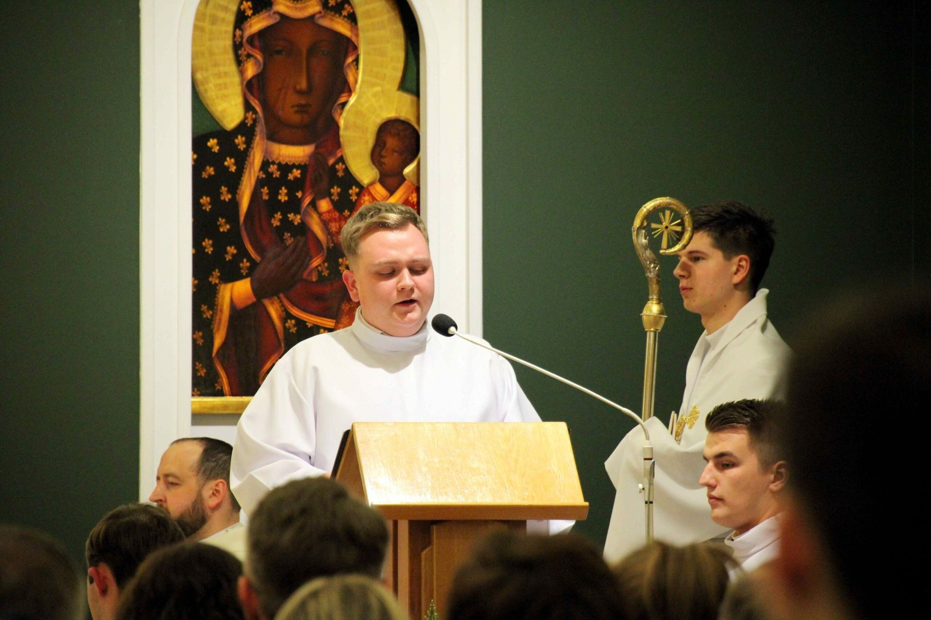 Podczas homilii, ksiądz biskup podzielił się z nami rozważaniami na temat posługi pierwszych diakonów w Dziejach Apostolskich (Dz 6, 1-7) oraz zwrócił uwagę na potrzebę ascezy w naszym życiu, abyśmy potrafili zgodzić się na stratę, poświęcenie czegoś na rzecz służby w Kościele.