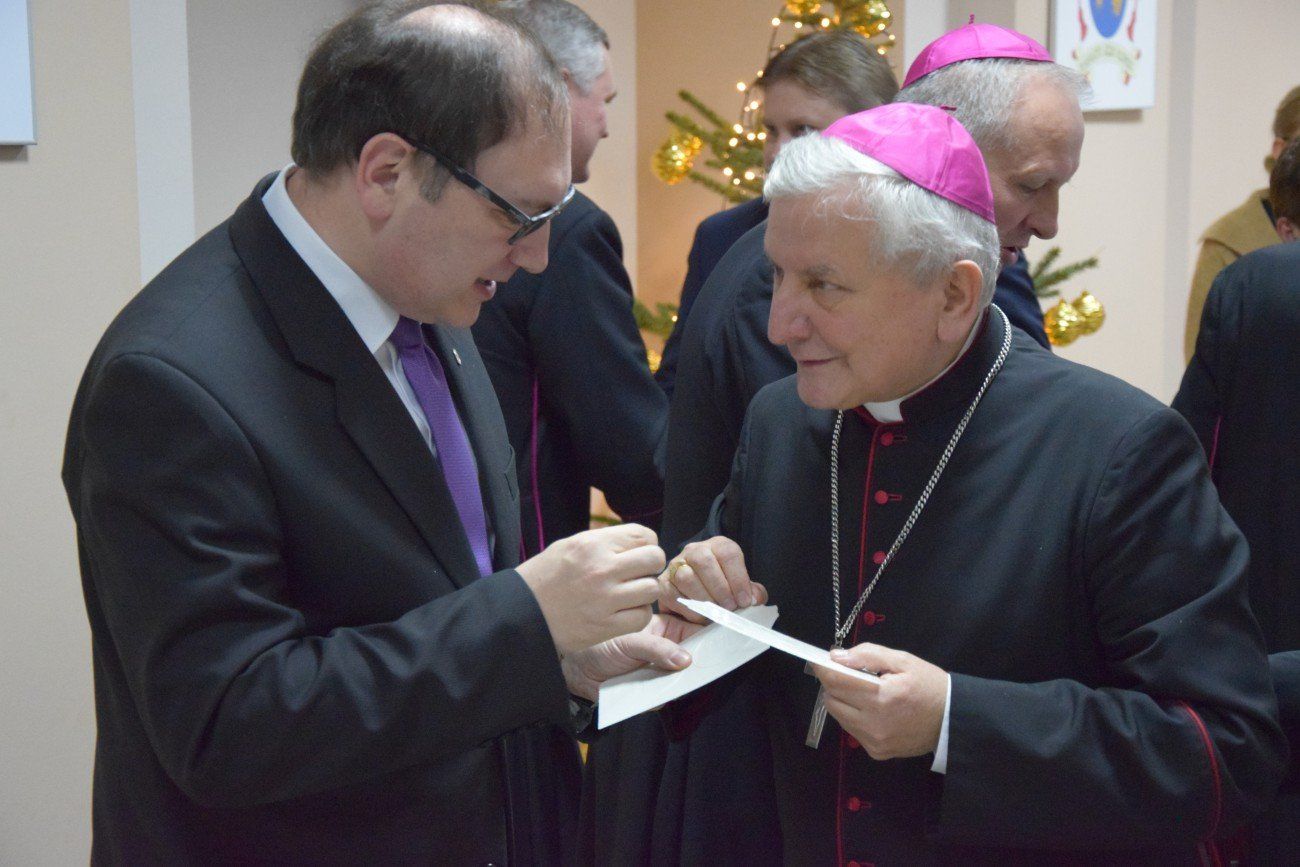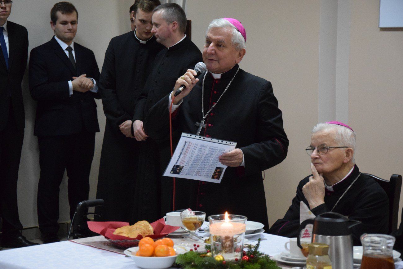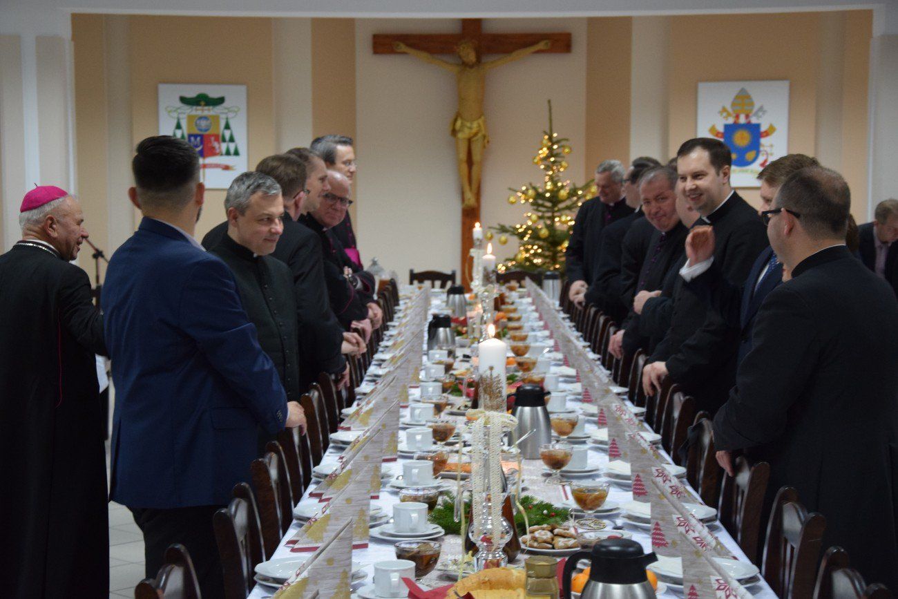Przed łamaniem się opłatkiem słowo do zgromadzonych skierował biskup kaliski Edward Janiak. – Wszystkim moim współpracownikom dziękuję za trud i gorliwą służbę Kościołowi kaliskiemu. Bardzo ważną rolę dzisiaj w Kościele spełniają media, którym dziękuję za pracę – zaznaczył hierarcha.