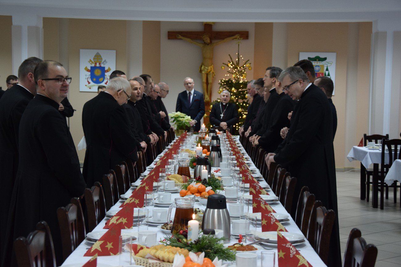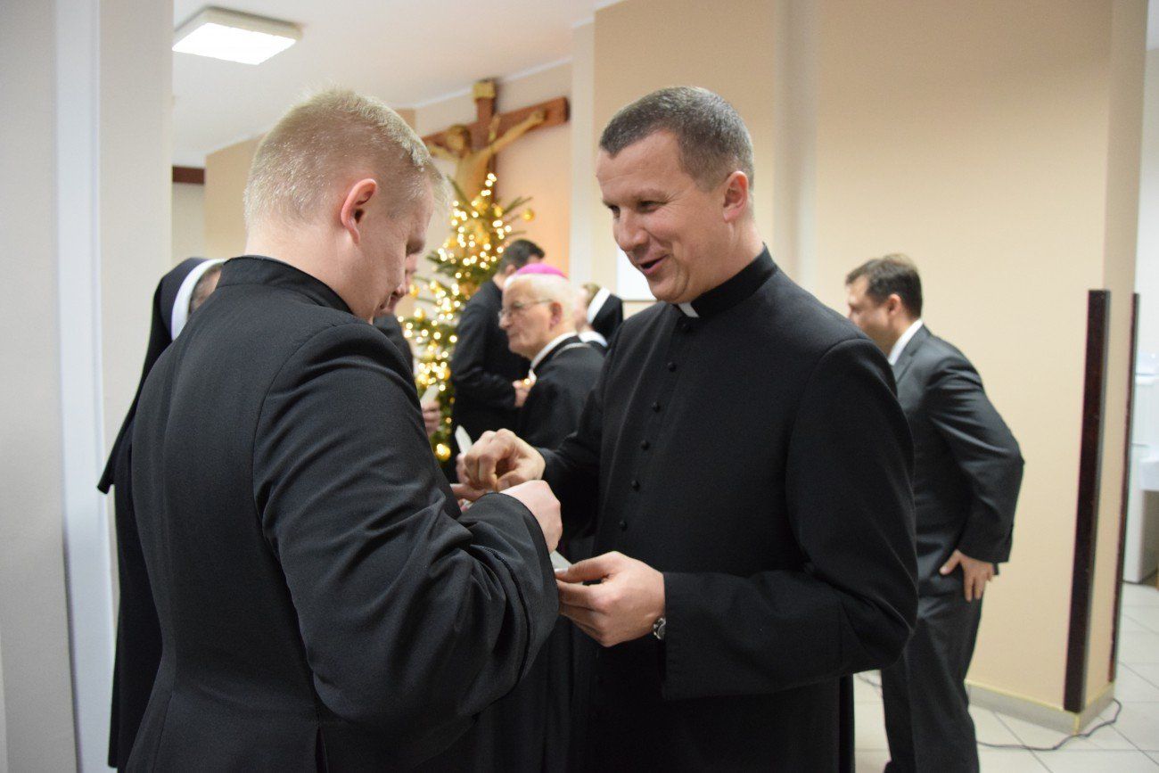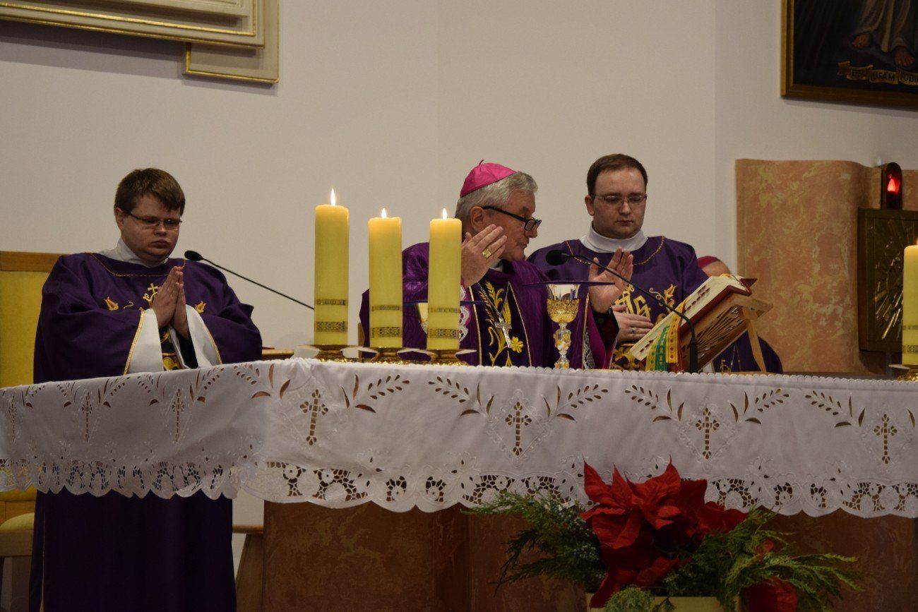Eucharystii, która rozpoczęła się w kaplicy świętego Józefa o godzinie 17:00 przewodniczył ksiądz biskup Edward Janiak. Homilię wygłosił ksiądz doktor Waldemar Graczyk, który zachęcał do dziękowania Panu Bogu za wszystkie dary, jakie od Niego otrzymujemy. Po Eucharystii wszyscy zgromadzili się w refektarzu, gdzie zaśpiewano kolędy, złożono życzenia świąteczne i połamano się opłatkiem.