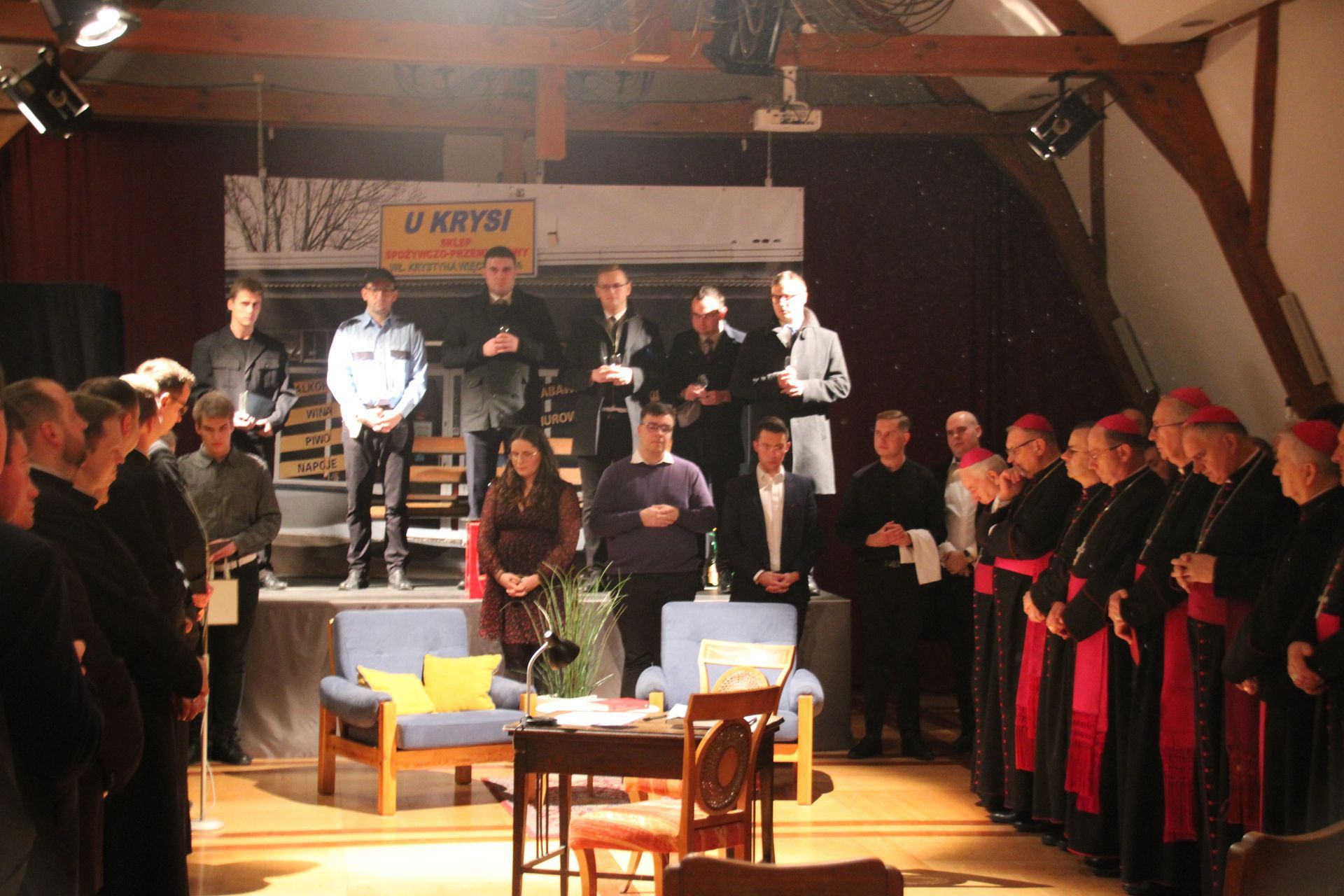 Po spektaklu miały miejsce podziękowania, a także słowo abpa Stanisława Gądeckiego. Następnie udaliśmy się wszyscy do refektarza, gdzie wspólnie spożyliśmy wieczerzę wigilijną. Podczas wspólnego spotkania swoim słowem także podzielili się abp Wojciech Polak, bp Damian Bryl oraz bp Krzysztof Włodarczyk.
