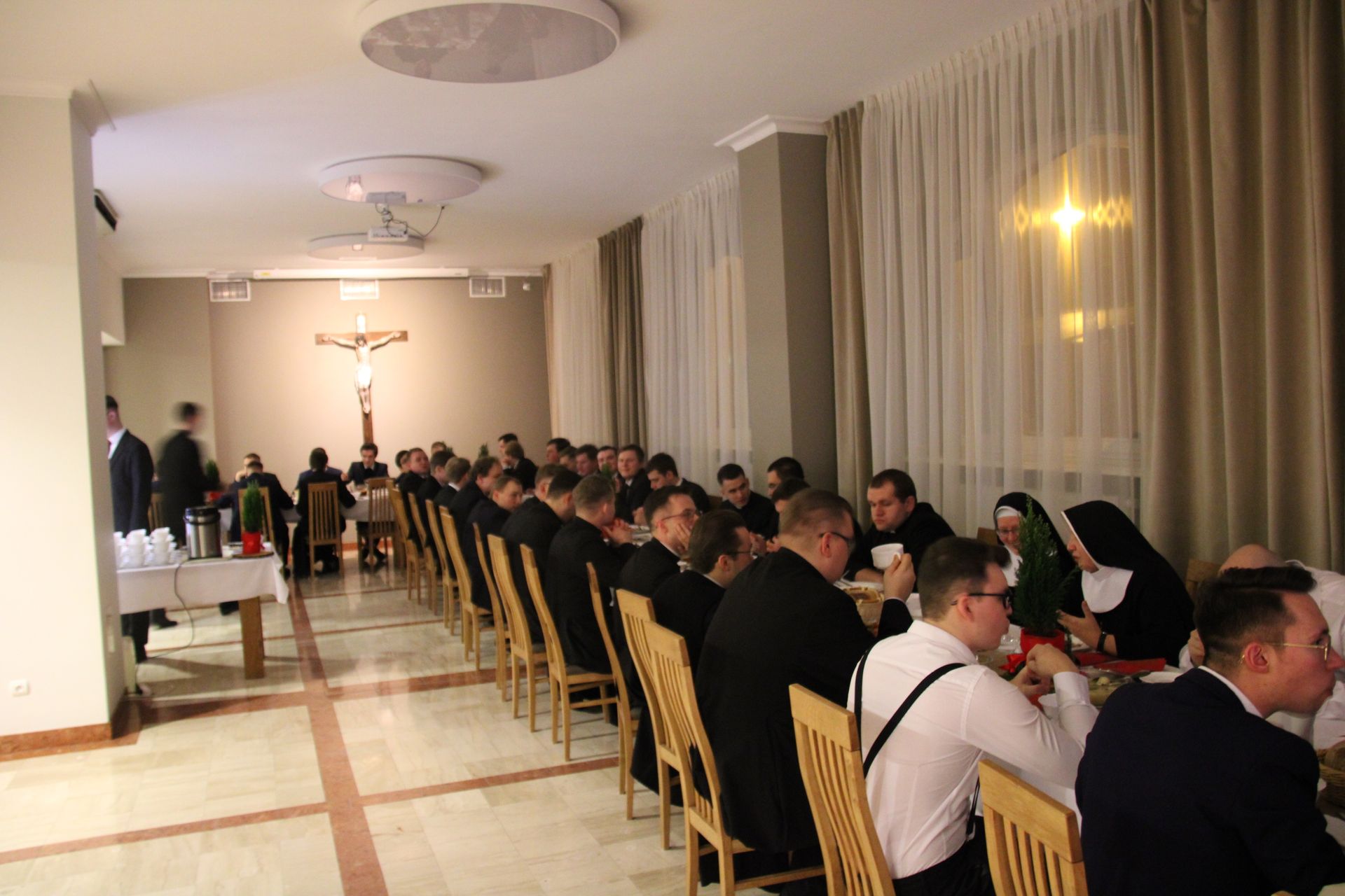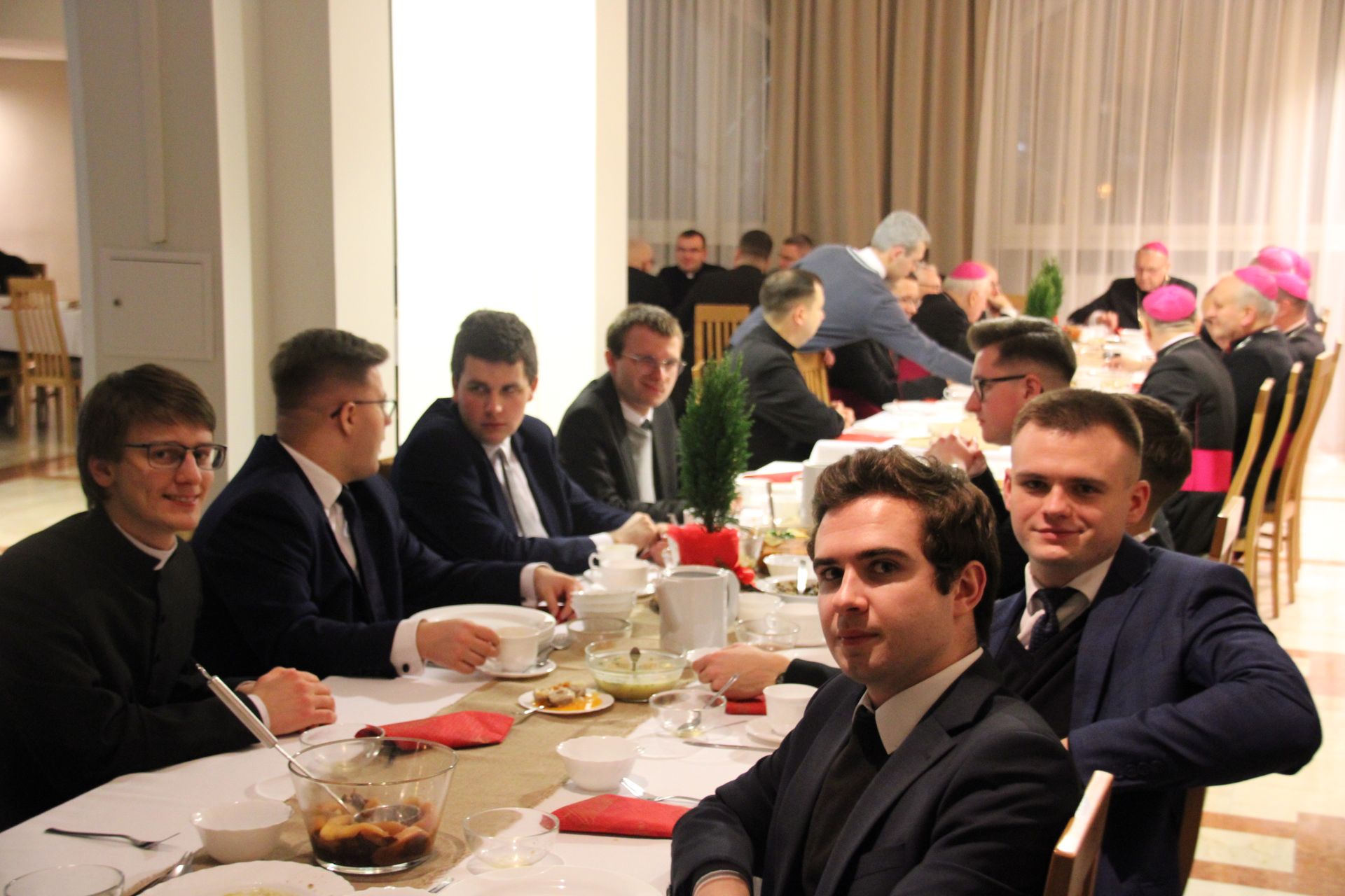 W naszej wigilii uczestniczyli biskupi diecezjalni oraz pomocniczy wszystkich czterech diecezji (Kaliskiej, Poznańskiej, Gnieźnieńskiej i Bydgoskiej), przełożeni, klerycy, pracownicy oraz osoby bezpośrednio zaangażowane w naszą formację.