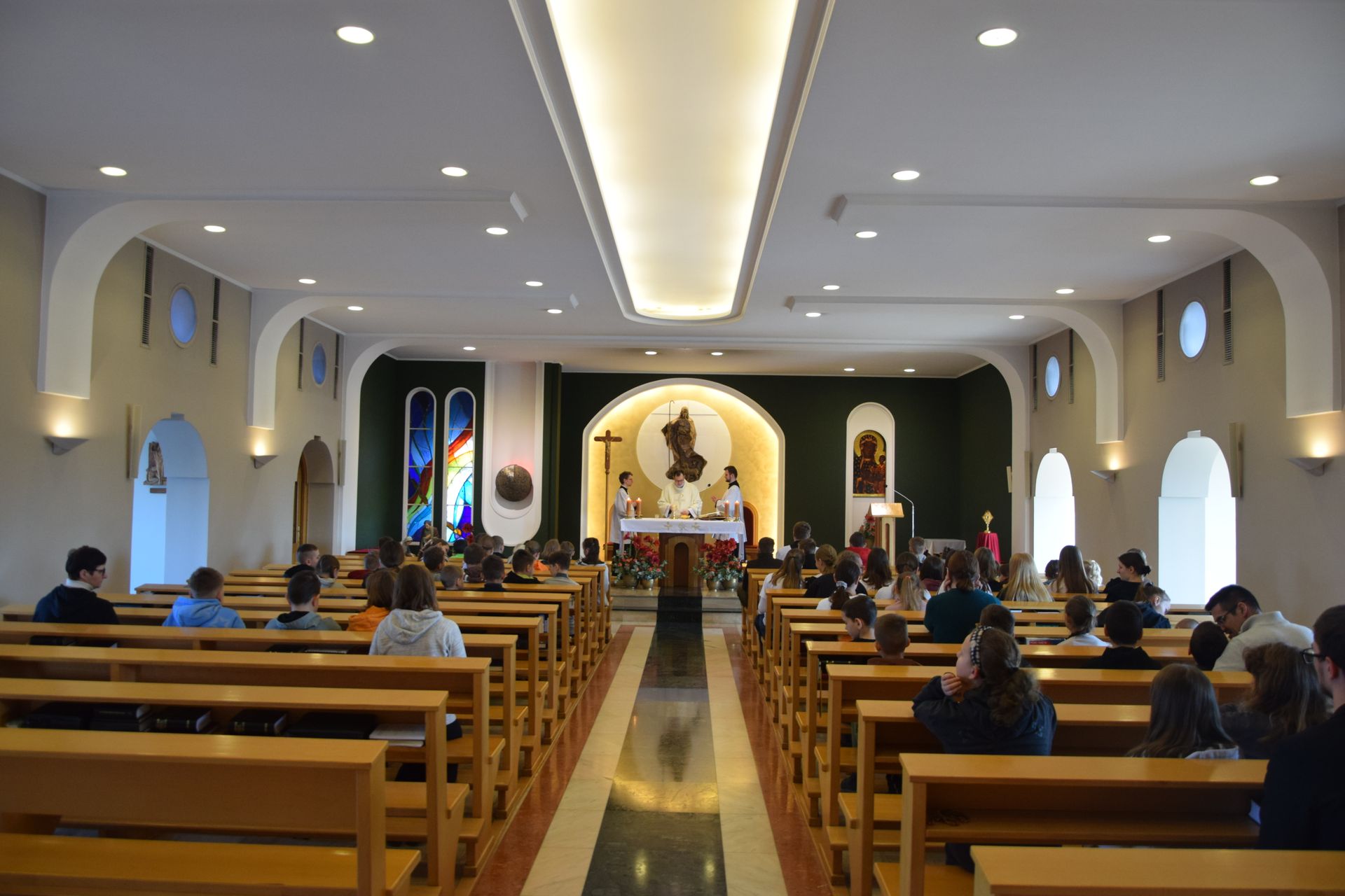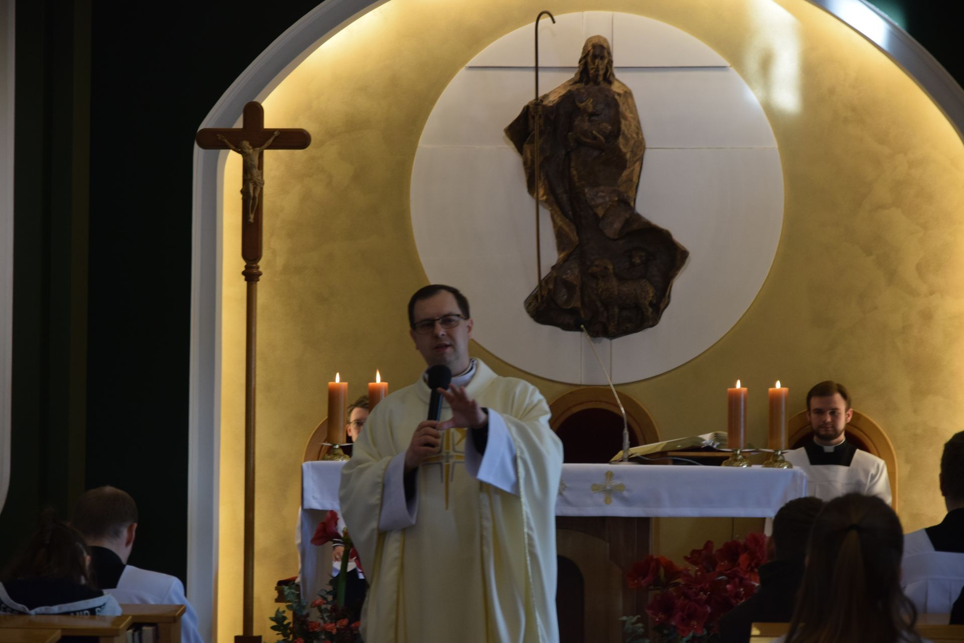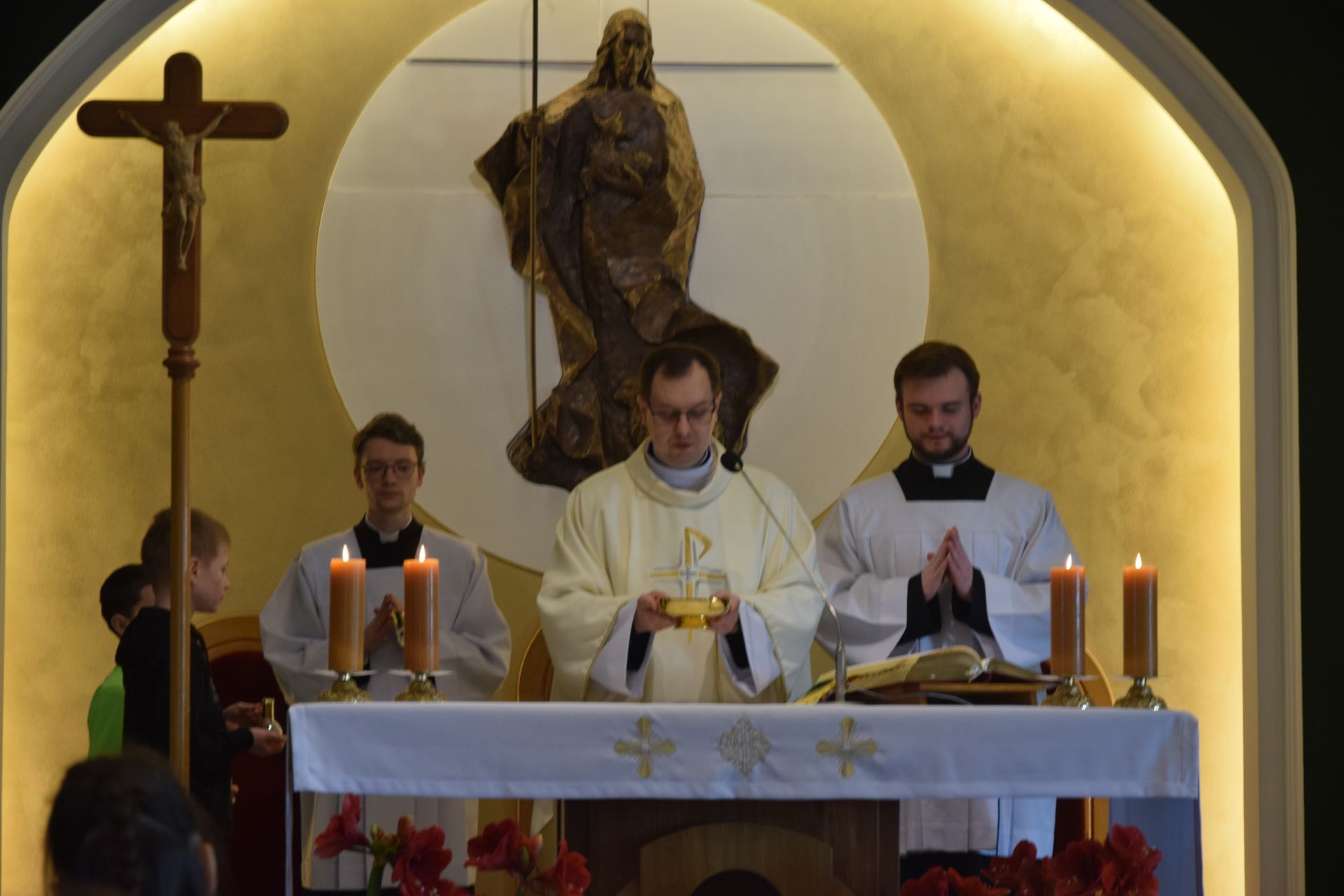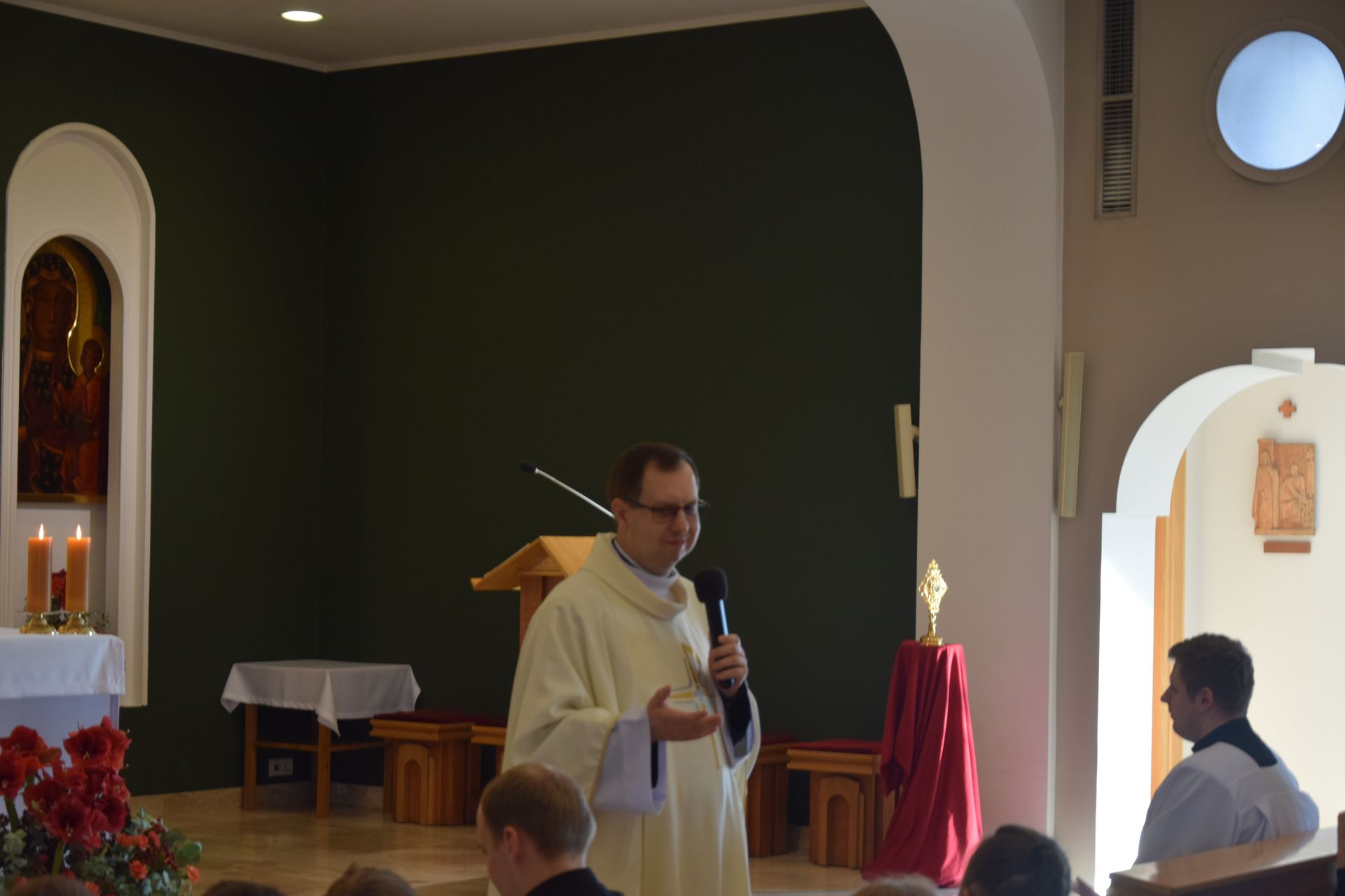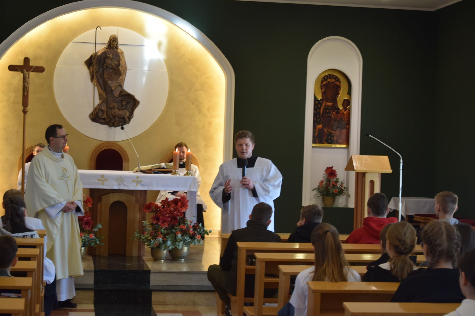 Nasze spotkanie rozpoczęliśmy od wspólnej Eucharystii w górnej kaplicy, której przewodniczył ks. wicerektor Waldemar Graczyk. Wygłosił on także do nas homilię, podczas której mogliśmy również usłyszeć kilka słów o dzisiejszym patronie - św. Janie Bosko, o którym opowiedział nam kl. Piotr.